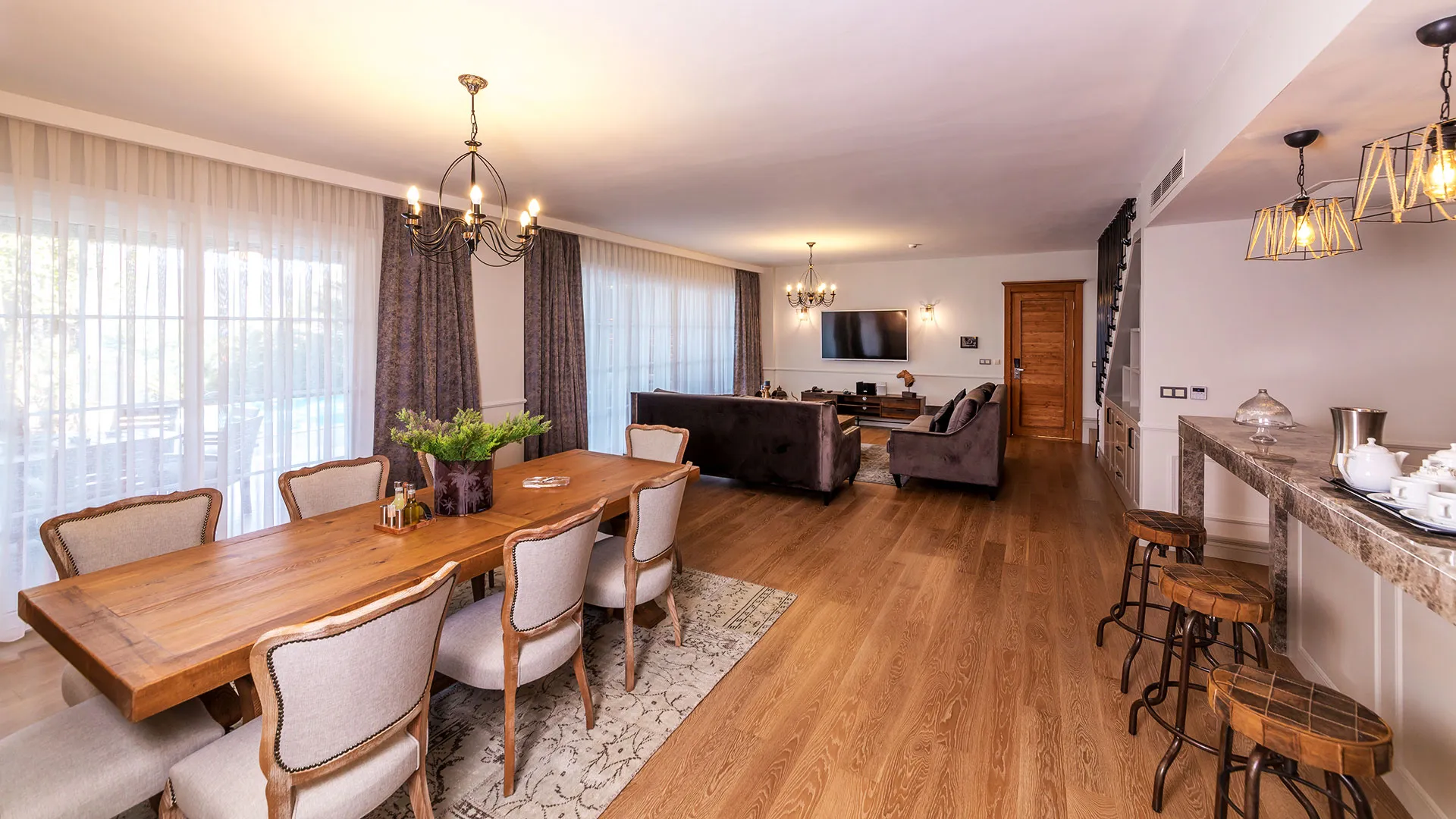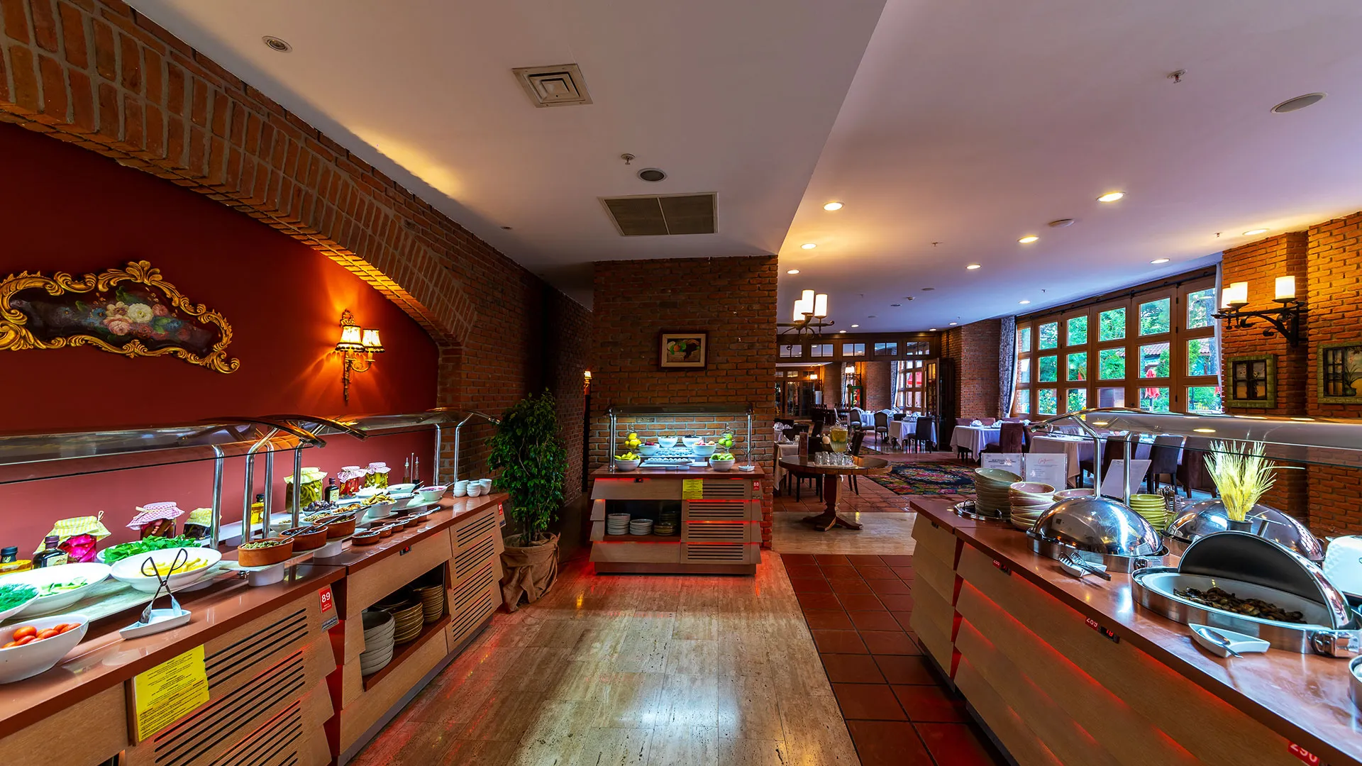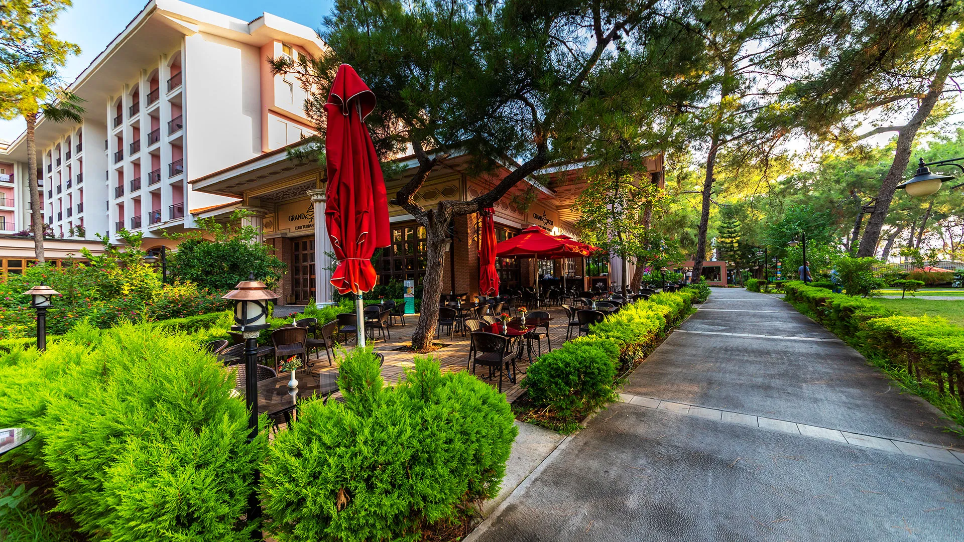 Ресторантите на хотела предлагат разнообразни кухни, включително турска, италианска и морска храна. Храната се сервира на шведска маса в основния ресторант, а гостите могат да се насладят на ястията си в открития ресторант с изглед към морето. Хотелът разполага с още четири бара и кафенета, където гостите могат да се насладят на различни напитки.