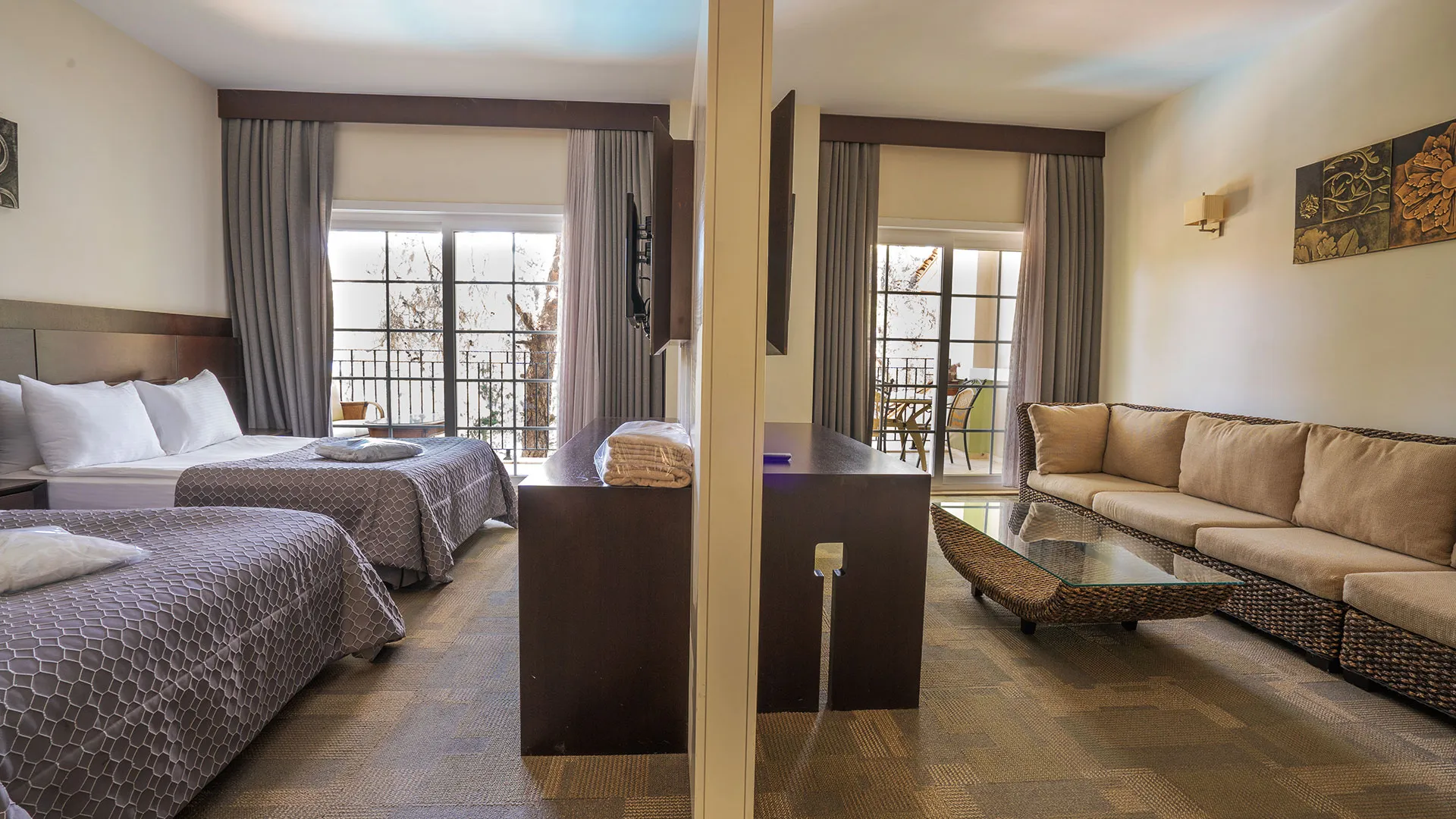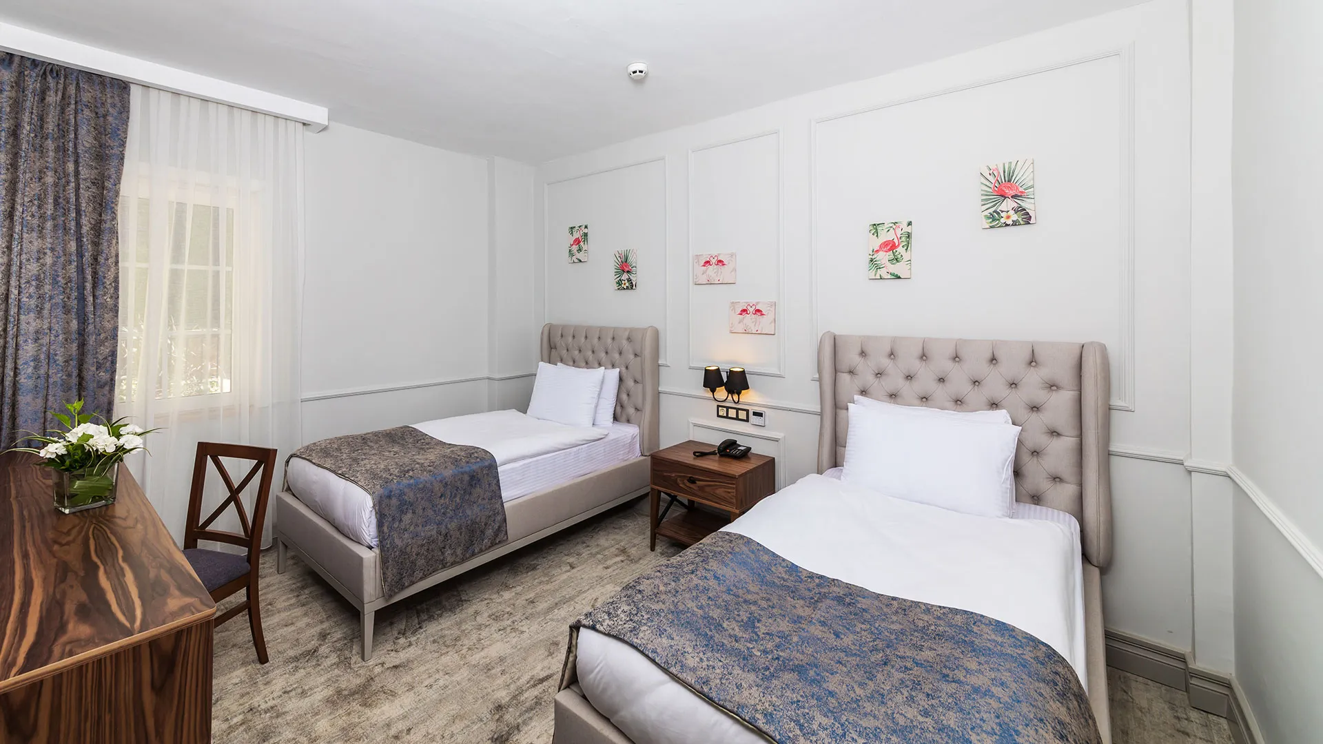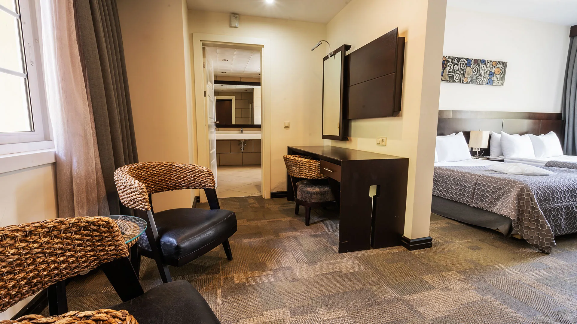 Хотелът предлага светли стаи с балкон и изглед към градината. Всички стаи са оборудвани с климатик, LCD телевизор и минибар.