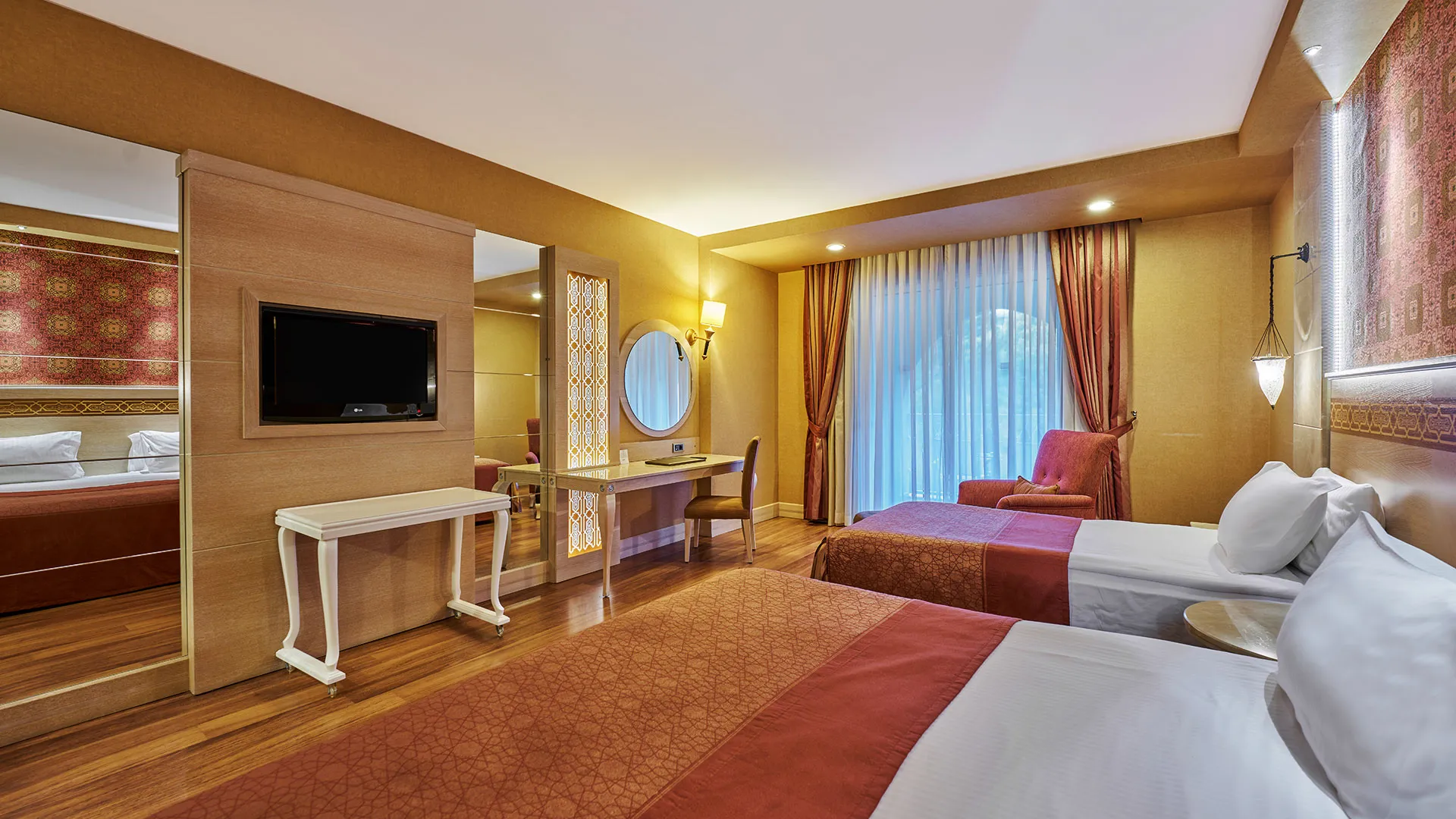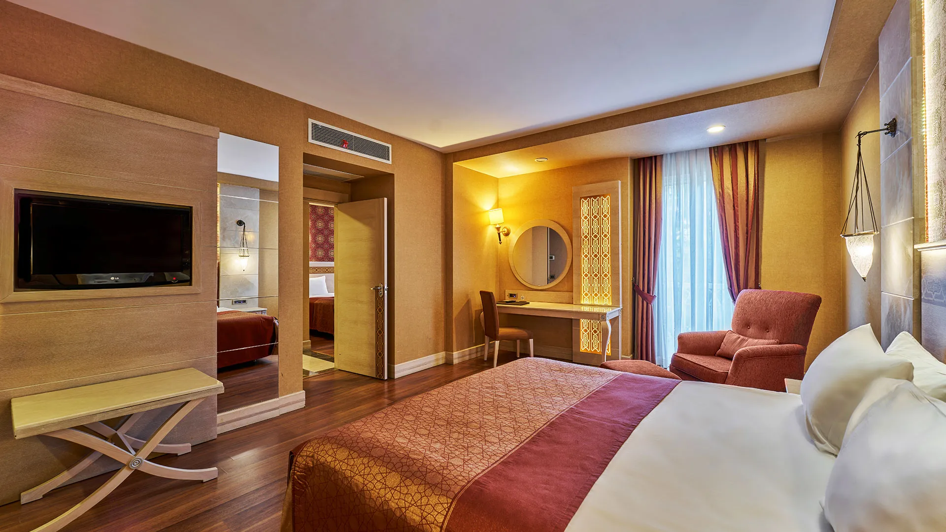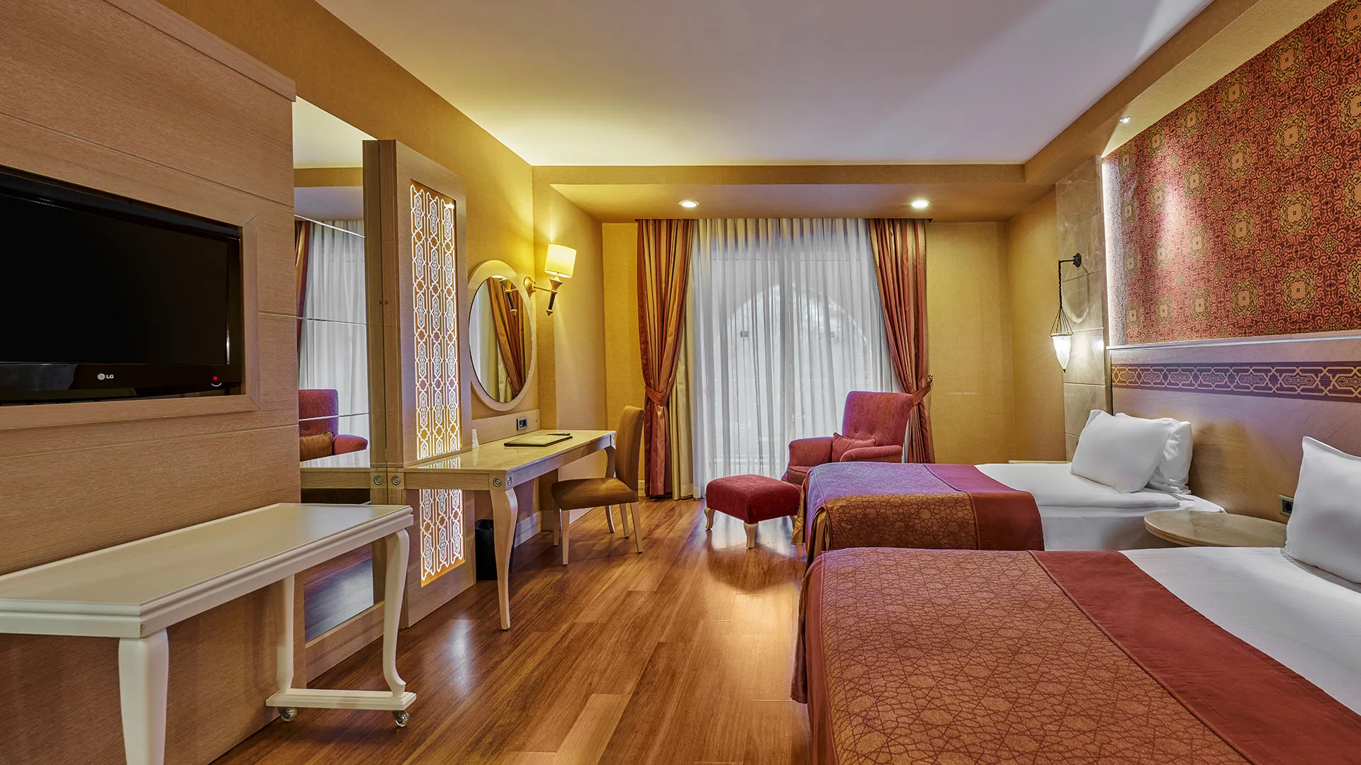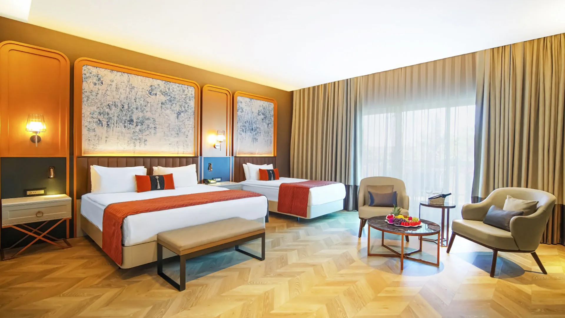 Интериорът на всички стаи в Gural Premier е в изтънчени нюанси на златисто и кафяво, като се отличава с дървени подове и изящни ориенталски детайли. Всяка стая разполага с уютен балкон и луксозна хидромасажна вана в банята.
