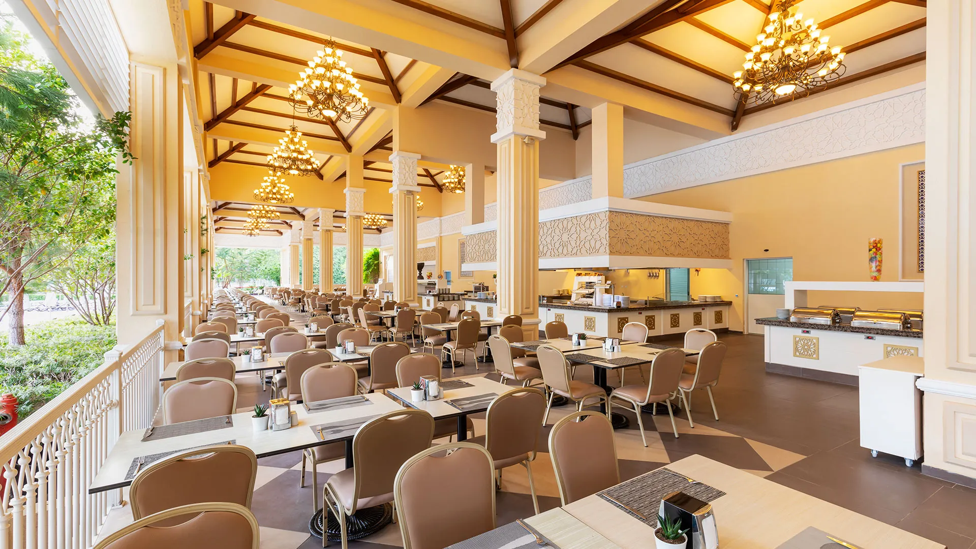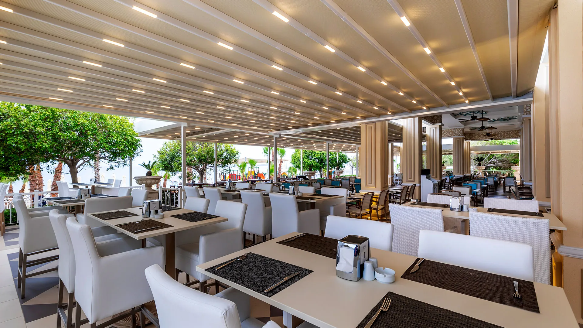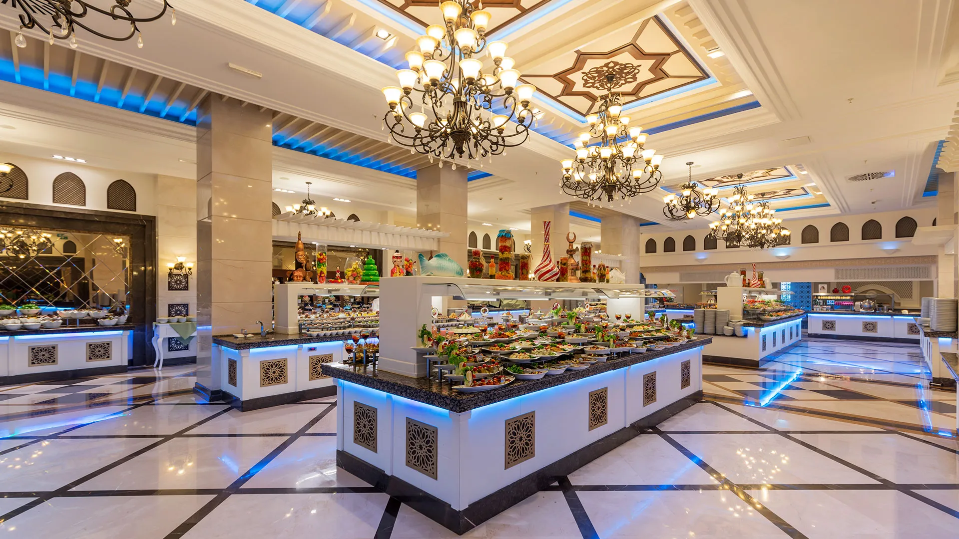 Сред 10-те ресторанта в хотела ще откриете разнообразие от турска и международна кухня. Изборът между 8-те бара включва ирландски пъб и бар край басейна, където може да се насладите на атмосферата и различни напитки. Във витаминния бар и бара във фитнеса можете да се насладите на свежи и здравословни напитки.