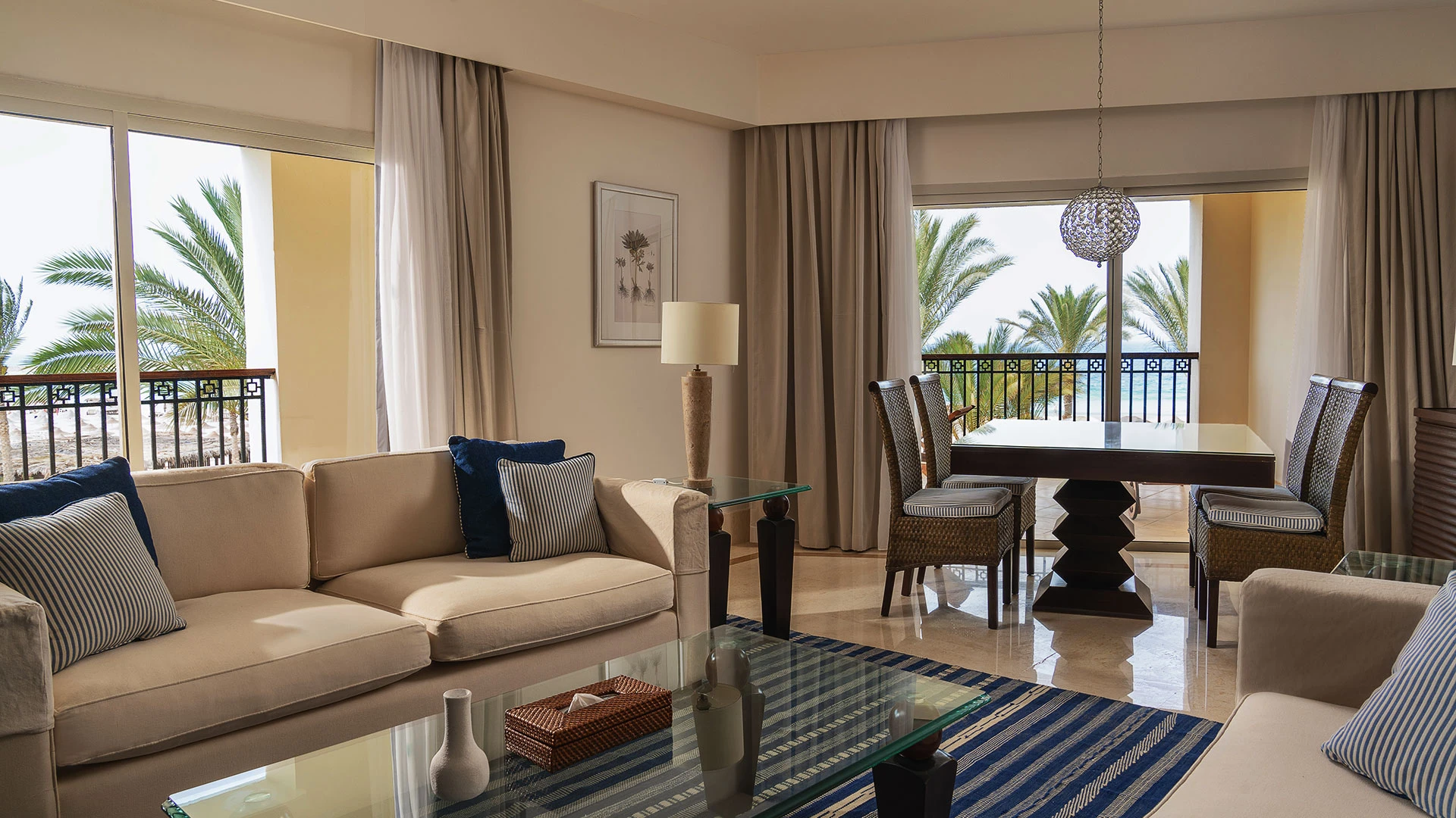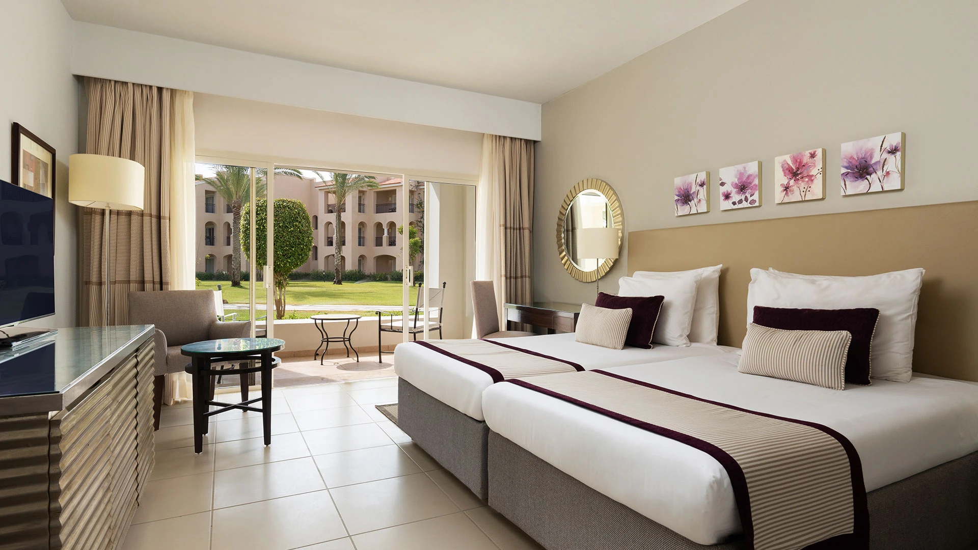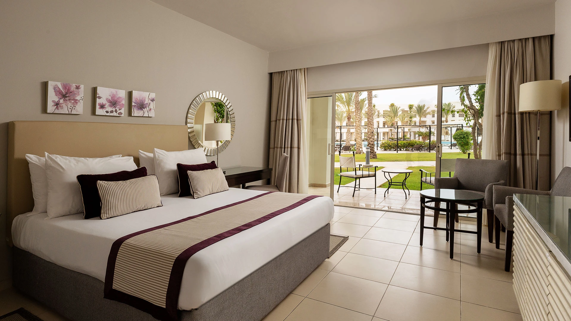 Хотелът разполага с 263 стаи, включително 78 свързани стаи и 174 семейни стаи, които осигуряват удобство за различни предпочитания. Стаите са просторни и елегантно обзаведени, с площ от 40 м² за стандартните стаи и 50 м² за семейните стаи. Всяка стая е оборудвана с климатик, минибар, телевизор с плосък екран, сейф, телефон, апарат за кафе/чай и балкон или тераса с изглед към морето или градините.