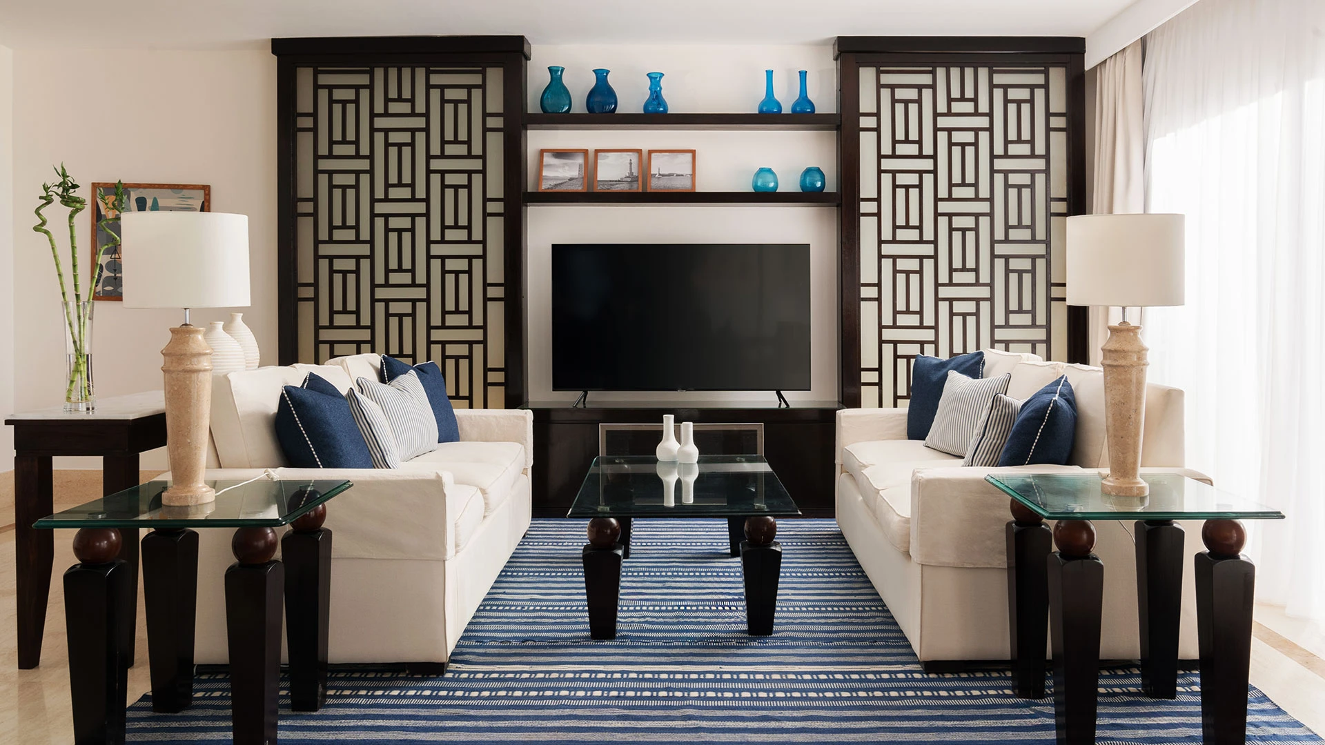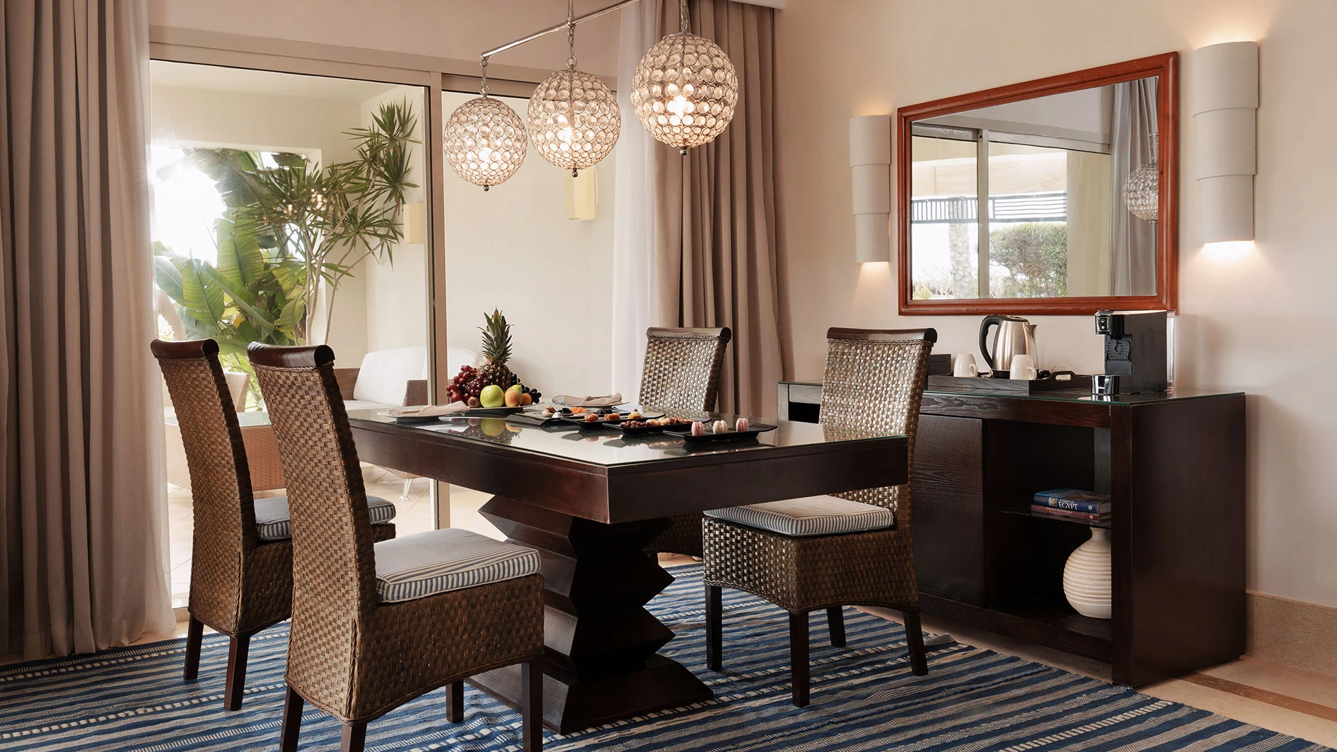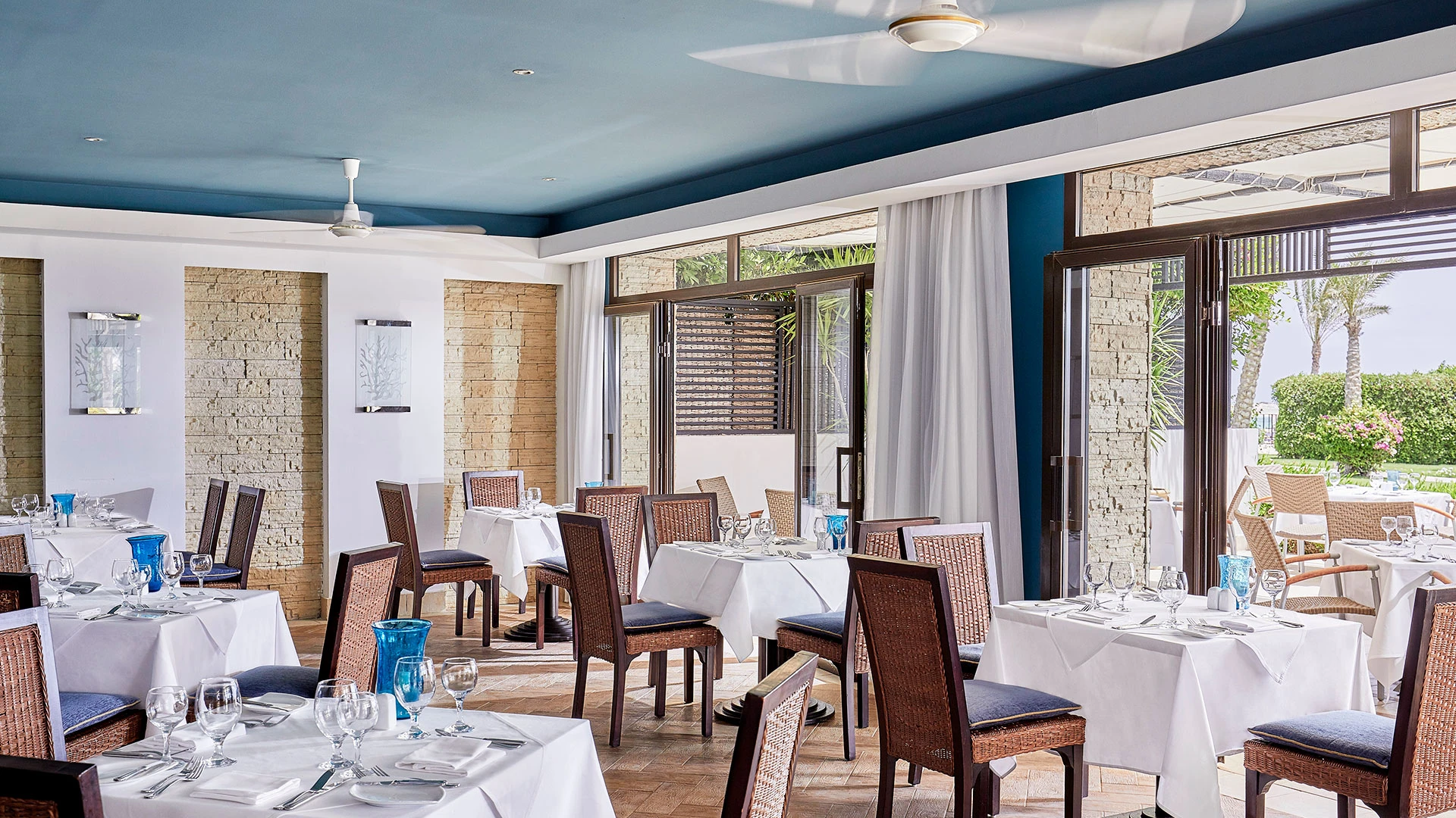 Хотелът разполага с 263 стаи, включително 78 свързани стаи и 174 семейни стаи, които осигуряват удобство за различни предпочитания. Стаите са просторни и елегантно обзаведени, с площ от 40 м² за стандартните стаи и 50 м² за семейните стаи. Всяка стая е оборудвана с климатик, минибар, телевизор с плосък екран, сейф, телефон, апарат за кафе/чай и балкон или тераса с изглед към морето или градините.