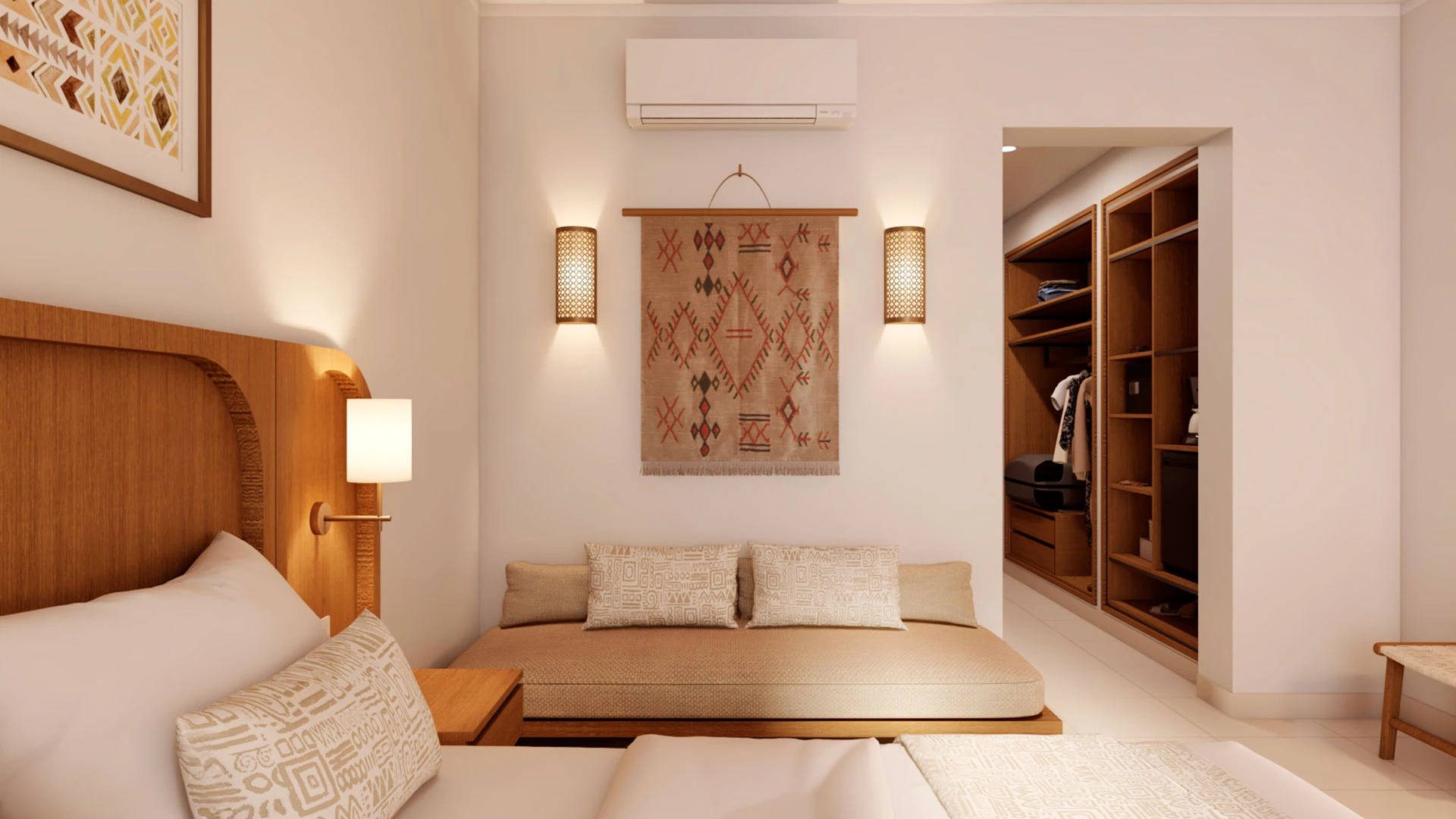 Хотелът разполага с 96 стаи, от които 30 са свързани, предоставяйки удобство за семейства и приятели, които желаят да бъдат близо един до друг, но и да запазят личното си пространство. Стаите са стилно обзаведени и оборудвани с климатик, минибар, телевизор с плосък екран, сейф и балкон с изглед към морето или градините