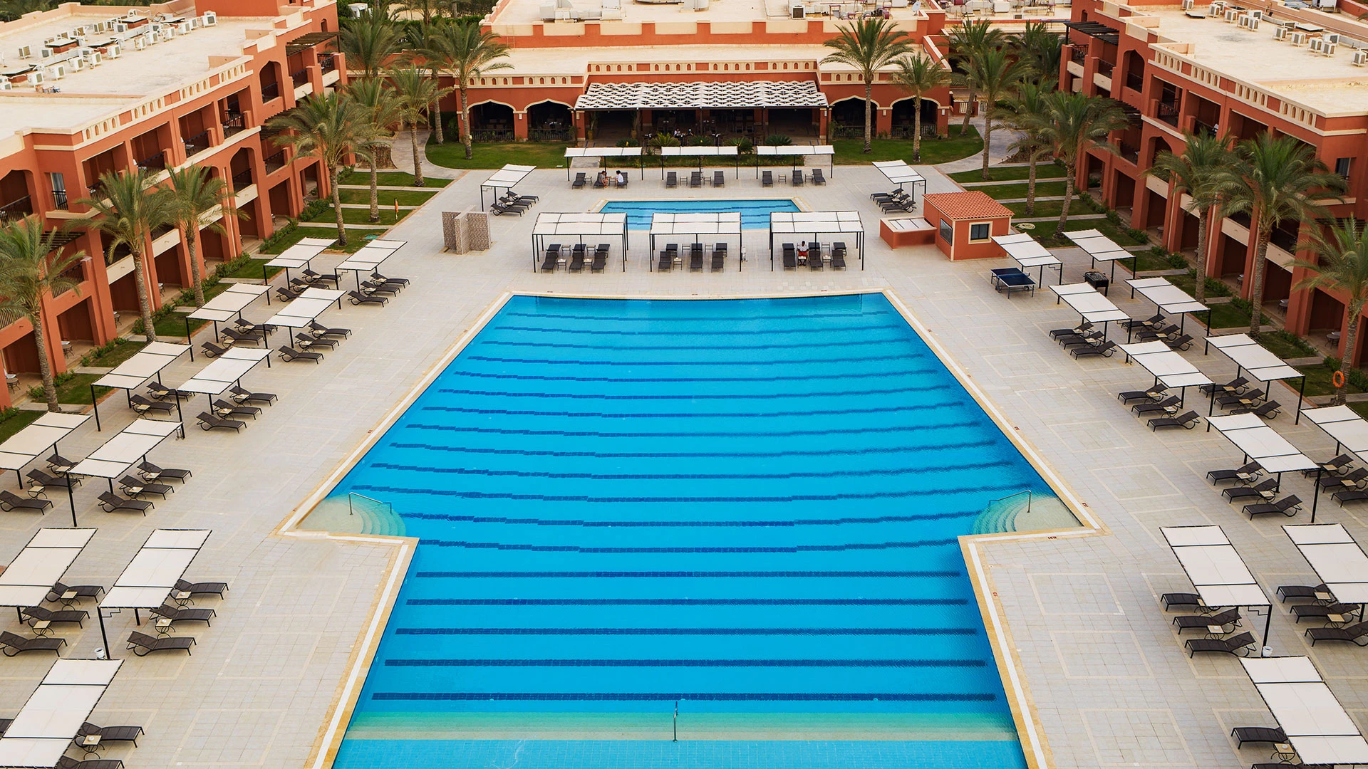 Локация: Разположен в красивото Almaza Bay, само на 45 км от летище Мерса Матрух, с директен достъп до частния плаж и чистото море.