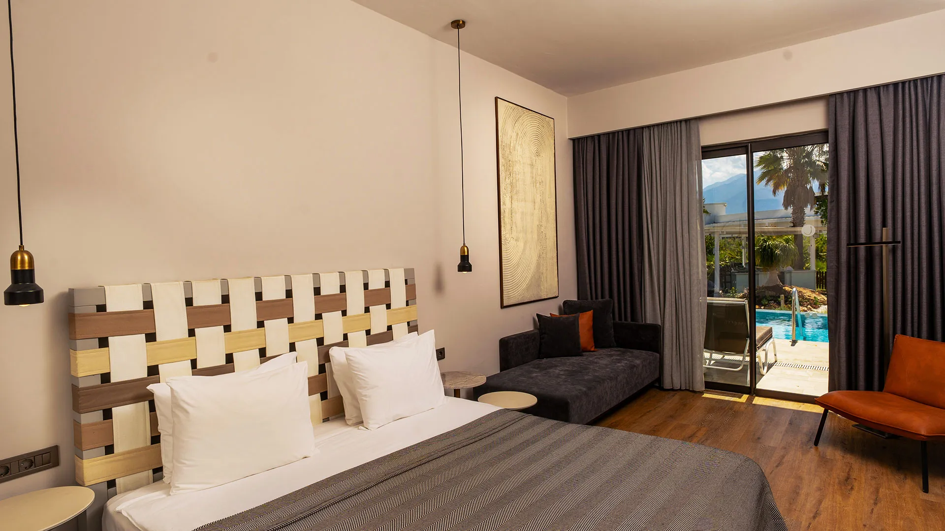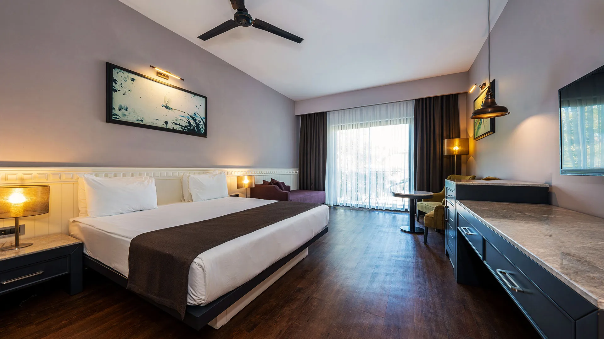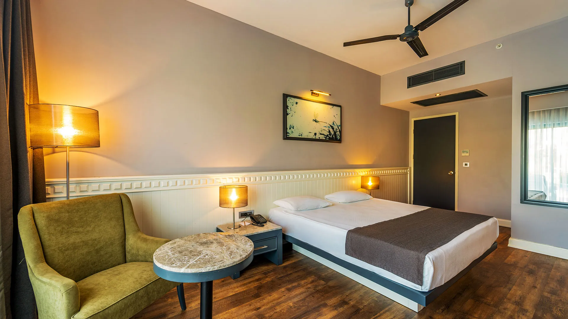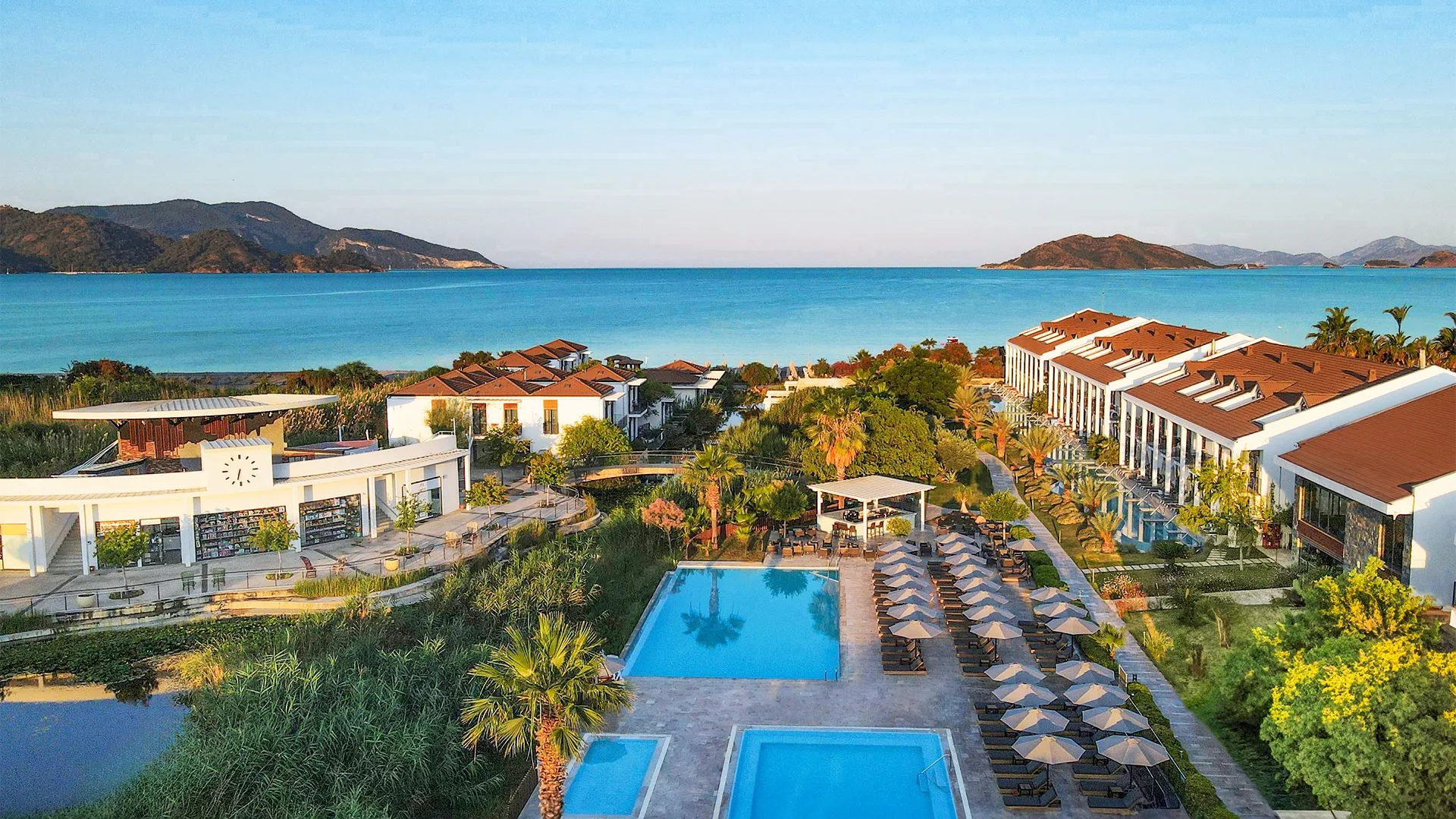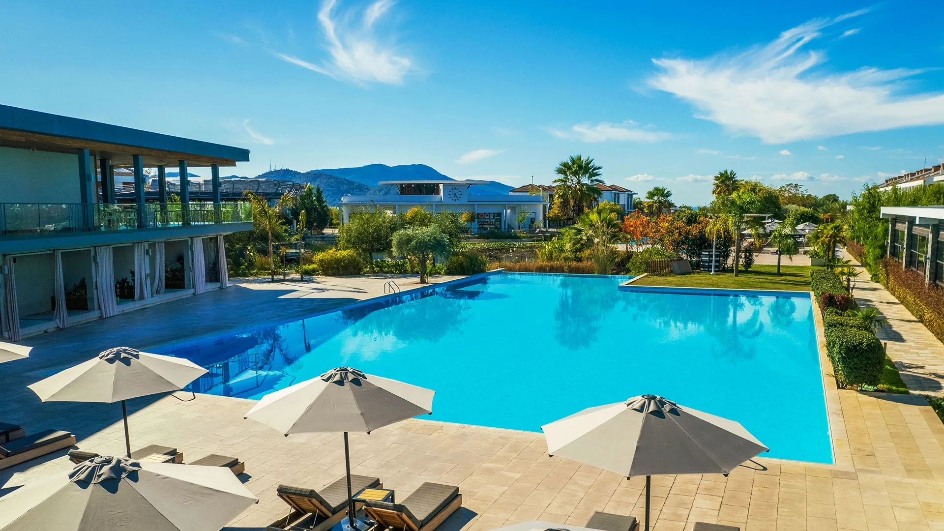 Хотелът предлага удобства като фитнес център, детски клуб, аквапарк и частен плаж, който е идеален за релакс. Осигурен е също така и трансфер до летище Даламан, което се намира на около 28 км. Jiva Beach Resort е известен със своето високо качество на обслужване, чистота и богат избор от развлечения, което го прави подходящ както за семейства, така и за двойки