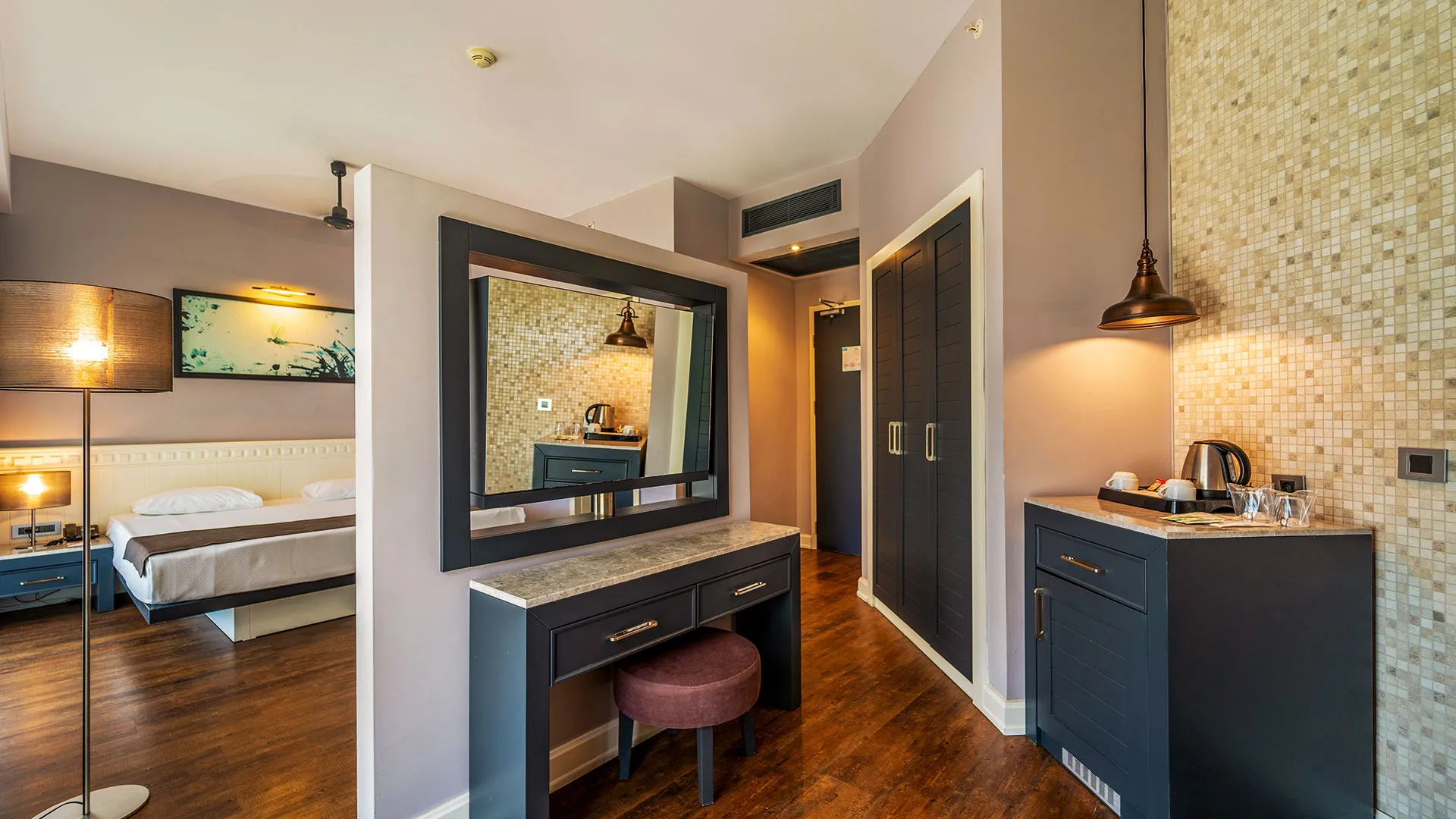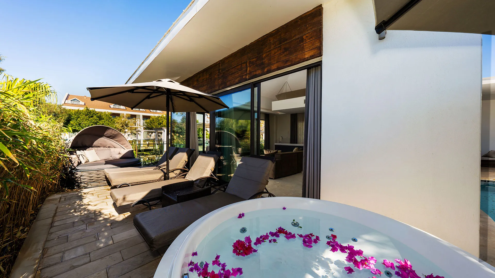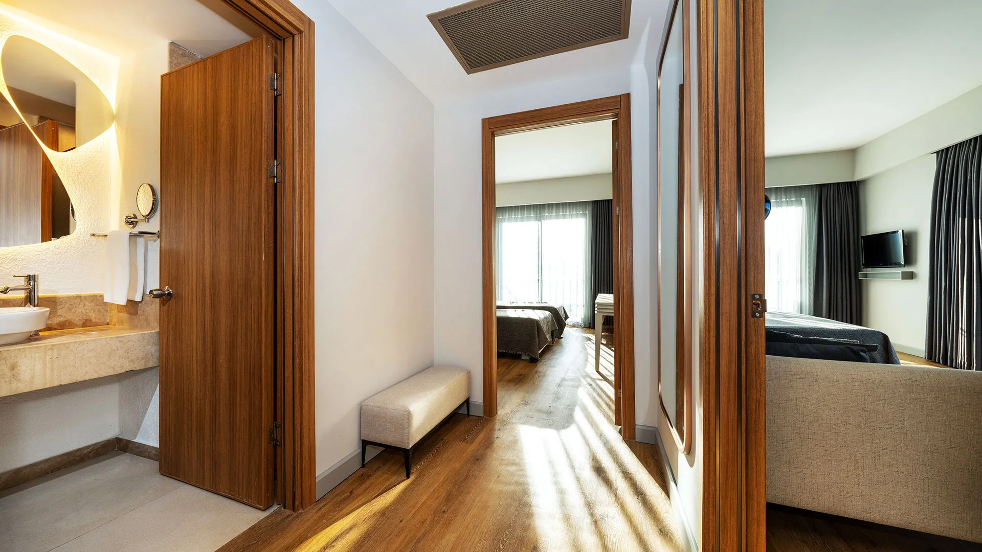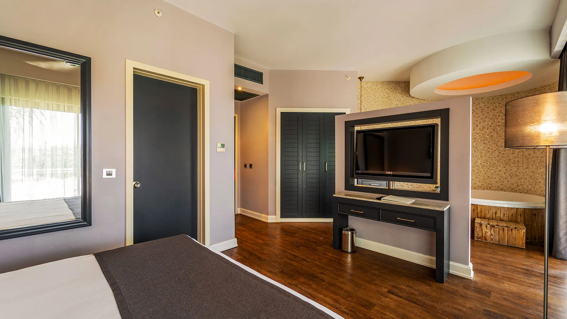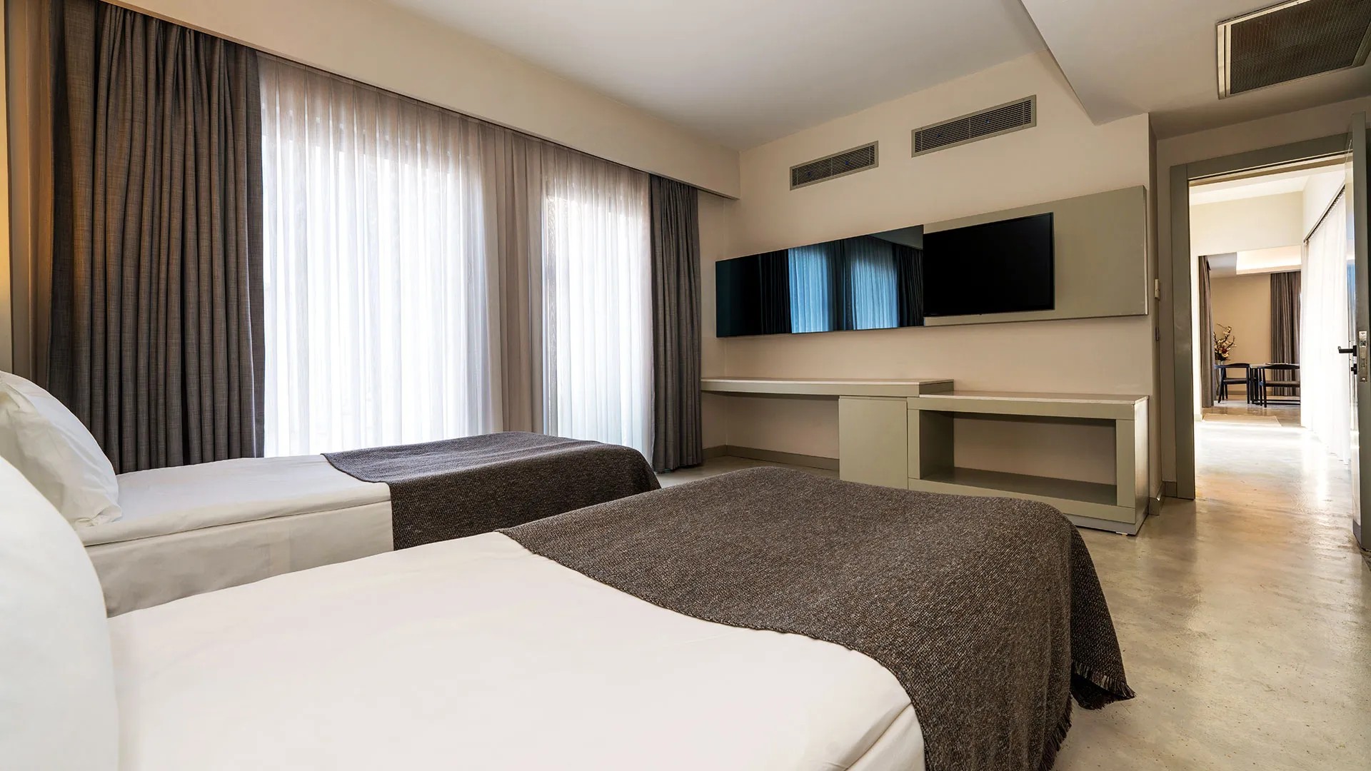 Хотелът предлага удобства като фитнес център, детски клуб, аквапарк и частен плаж, който е идеален за релакс. Осигурен е също така и трансфер до летище Даламан, което се намира на около 28 км. Jiva Beach Resort е известен със своето високо качество на обслужване, чистота и богат избор от развлечения, което го прави подходящ както за семейства, така и за двойки