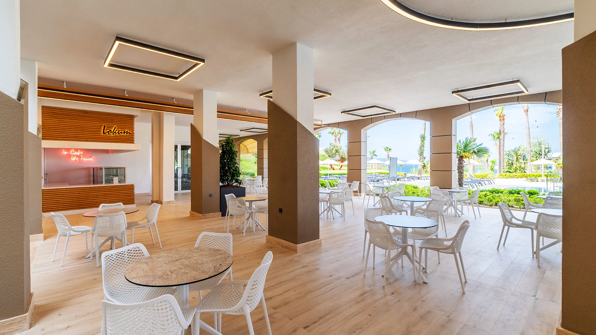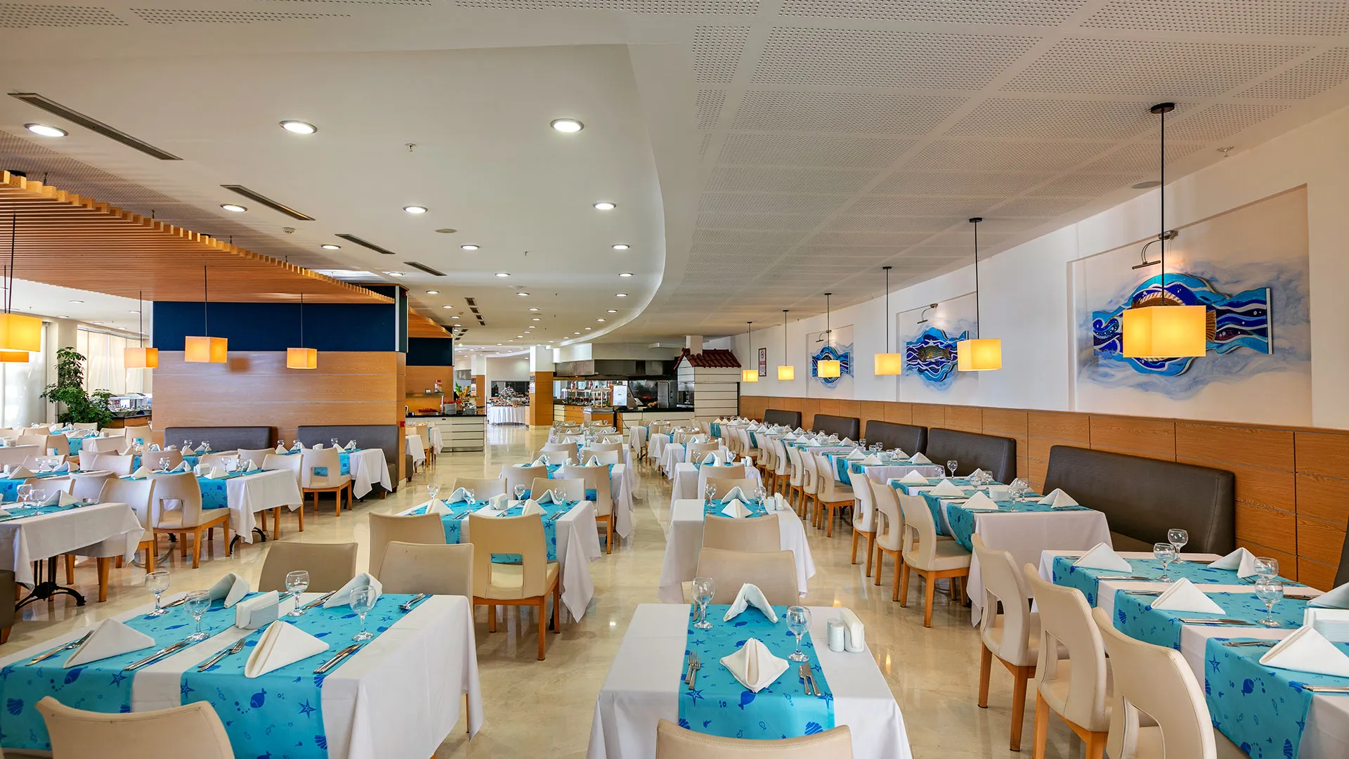 Хотелът разполага с пет ресторанта, които предлагат разнообразна кухня, включително турска, италианска, мексиканска и китайска кухня, както и специализирани рибни ястия. Гостите могат да се насладят на ястията в основния ресторант на шведска маса или в а-ла-карт ресторантите.