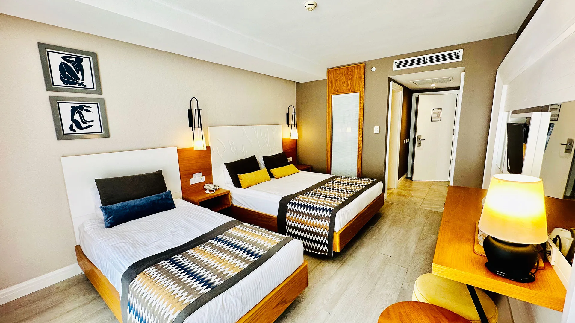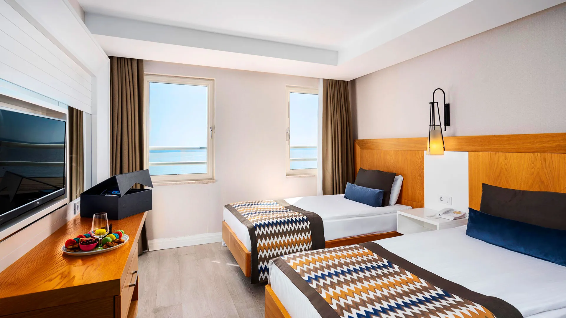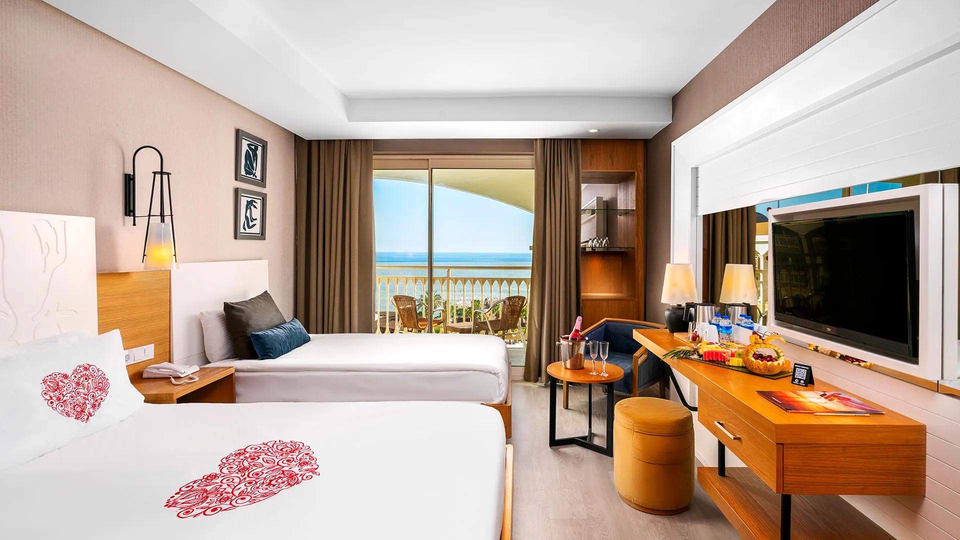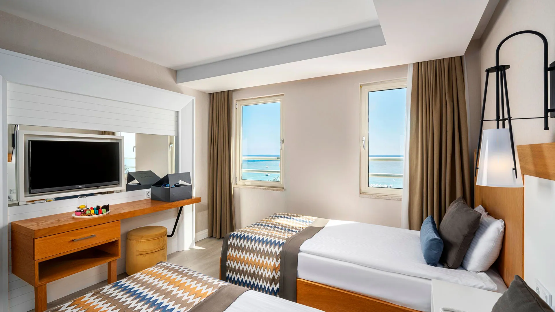 Kirman Sidera Luxury & Spa разполага с елегантни и просторни стаи, които са проектирани с мисъл за вашия комфорт и удобство. Всяка стая е обзаведена с модерни удобства и стилен интериор, съчетаващ луксозни детайли и уют. Балконите и терасите на стаите предлагат великолепни гледки към Средиземно море или към зелените градини на хотела, създавайки идеалната атмосфера за релаксация.