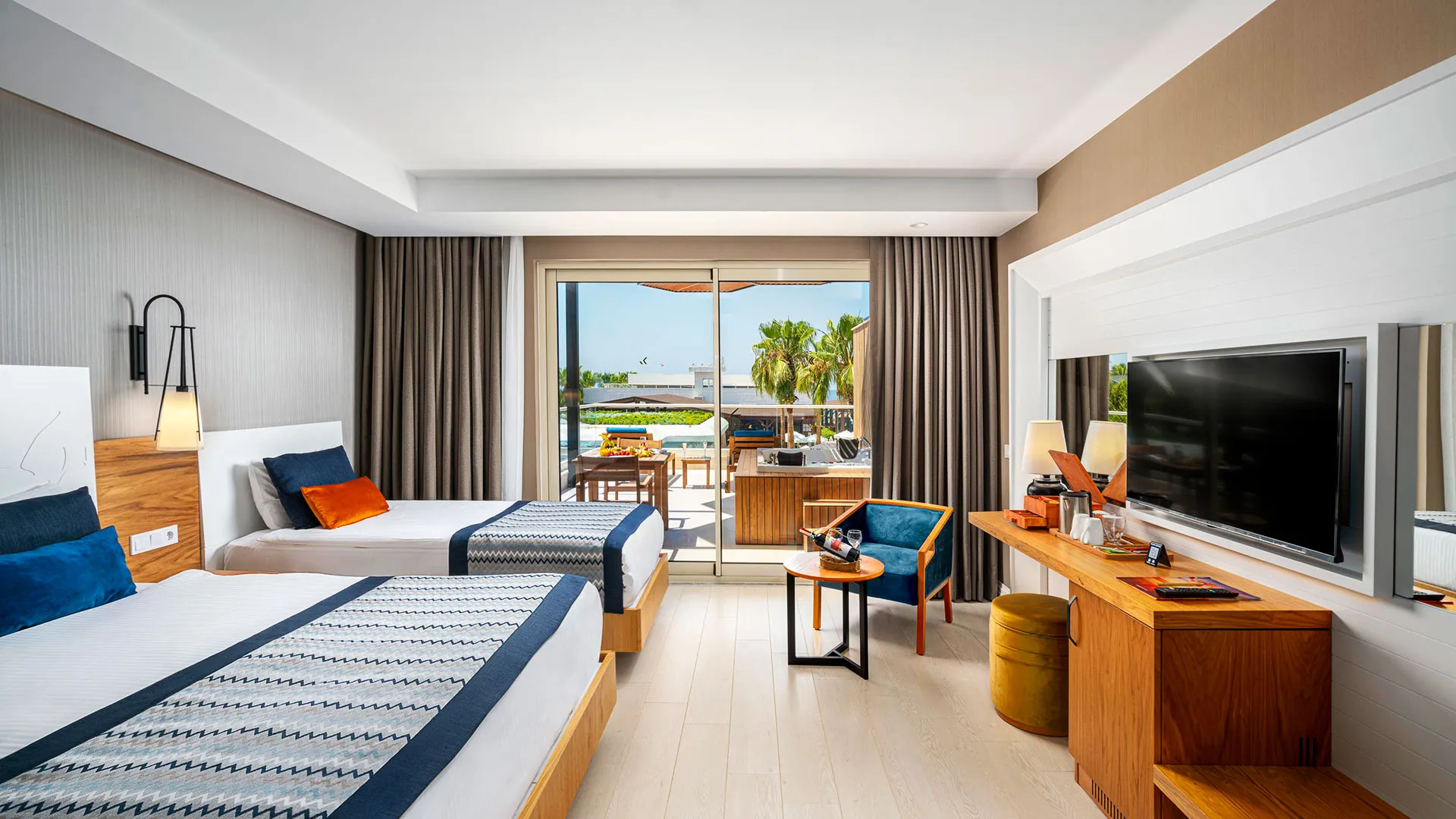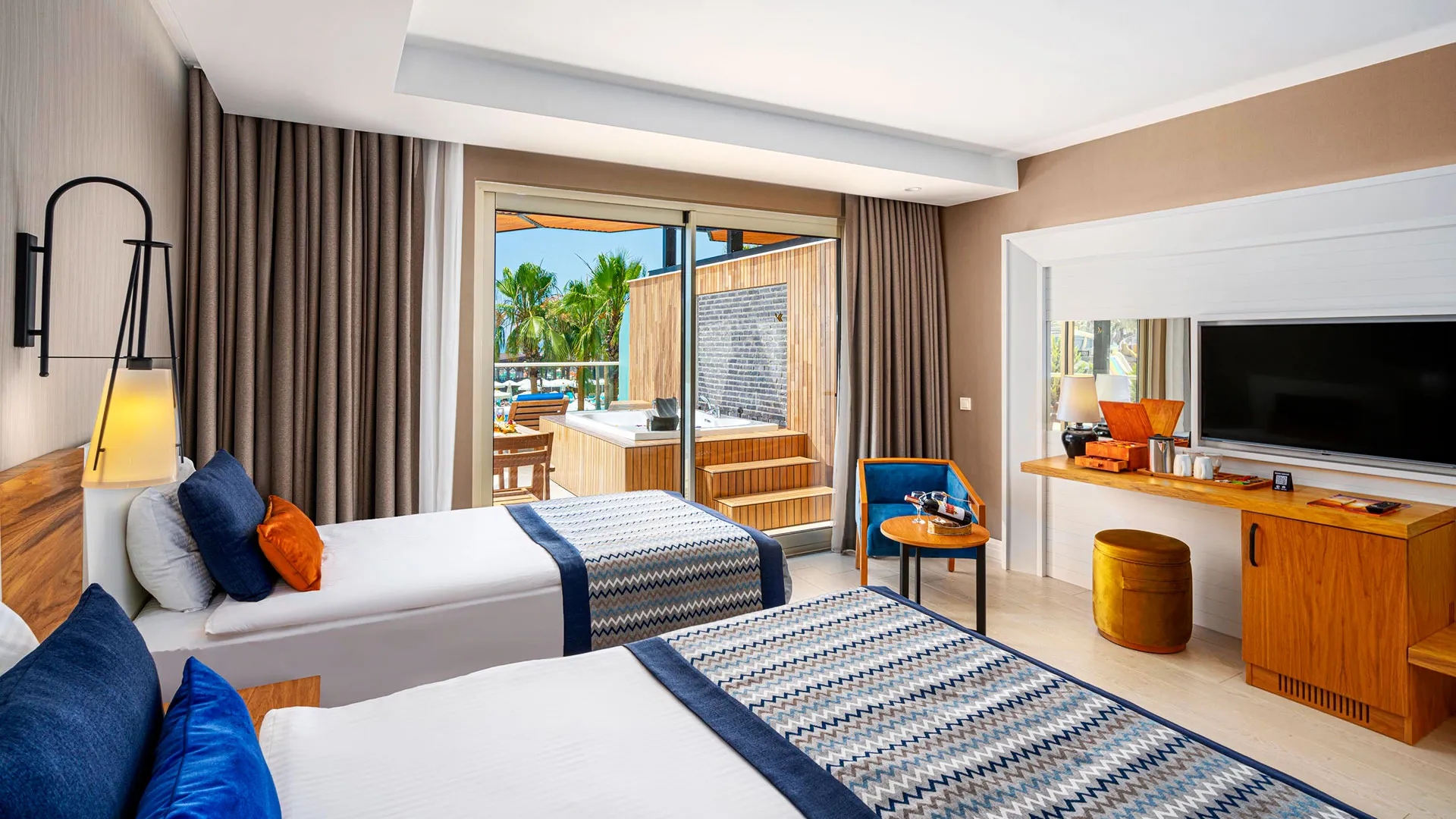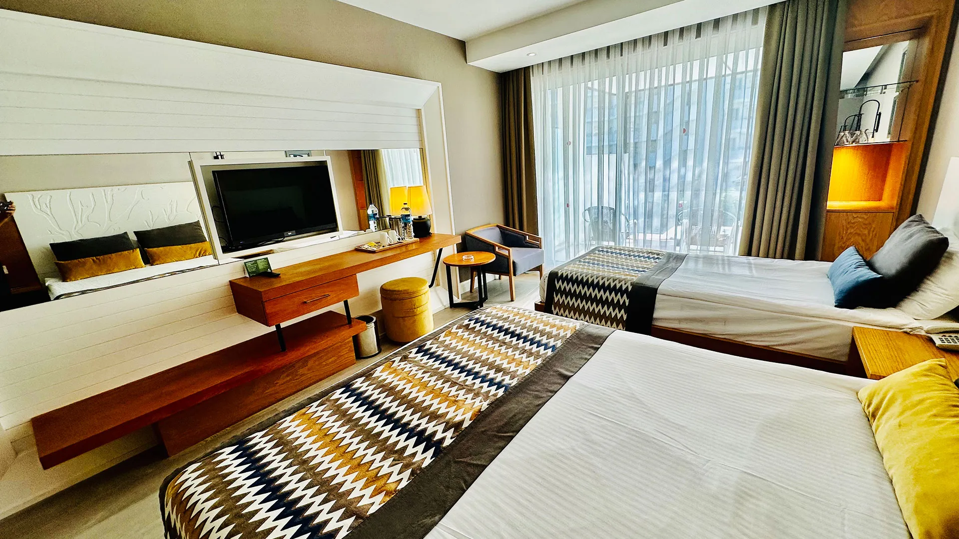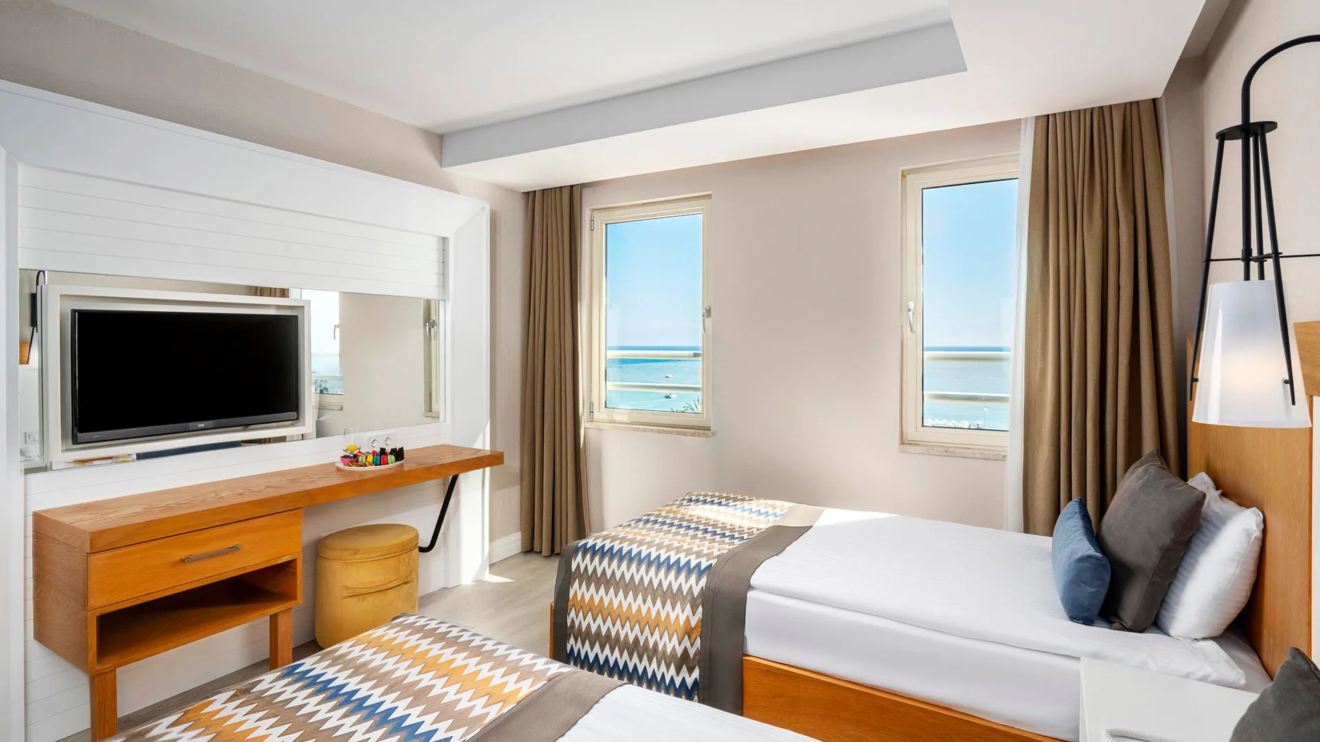 Kirman Sidera Luxury & Spa разполага с елегантни и просторни стаи, които са проектирани с мисъл за вашия комфорт и удобство. Всяка стая е обзаведена с модерни удобства и стилен интериор, съчетаващ луксозни детайли и уют. Балконите и терасите на стаите предлагат великолепни гледки към Средиземно море или към зелените градини на хотела, създавайки идеалната атмосфера за релаксация.
