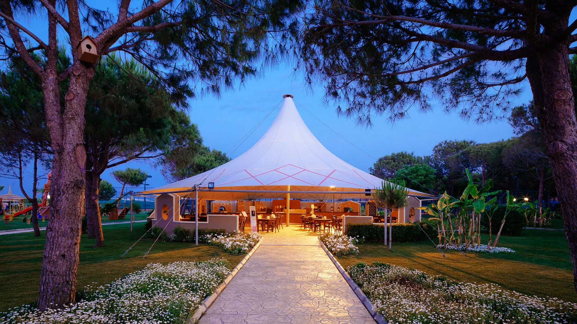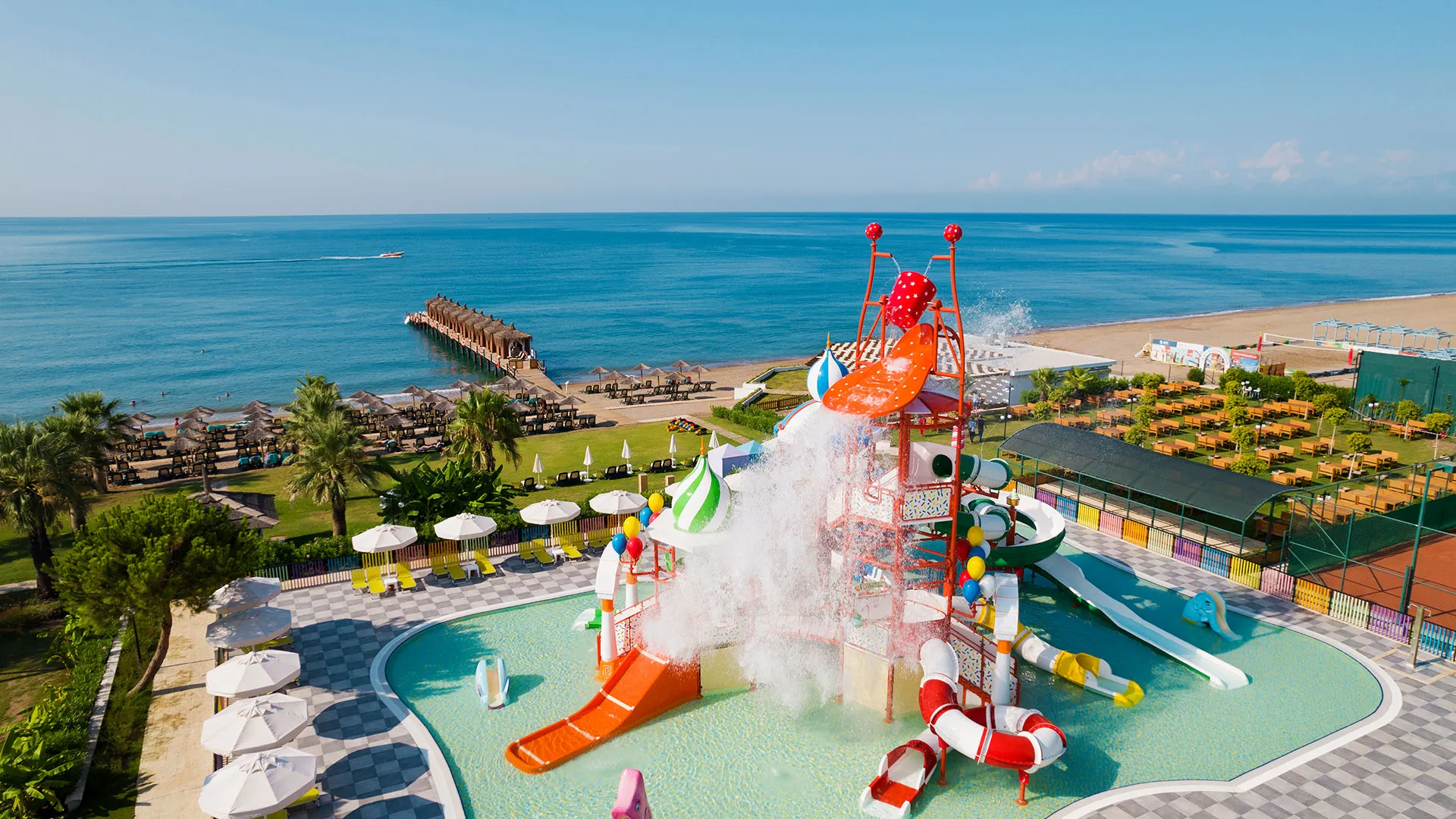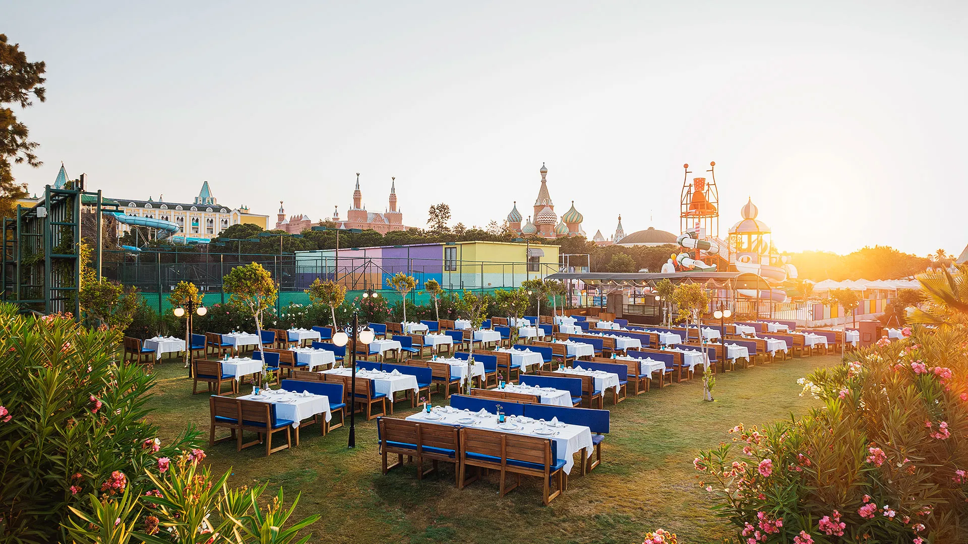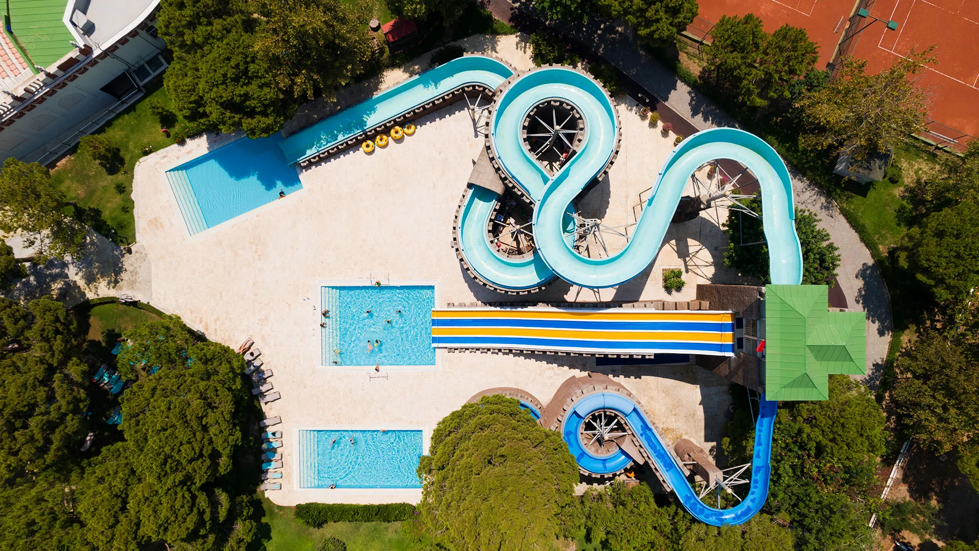 С площ от 75 000 квадратни метра, комплексът включва аквапарк с 3 пързалки за деца и 6 пързалки за възрастни. Гостите могат да участват в курсове по танци, да се занимават със стрелба с лък или да посетят близките пещери.