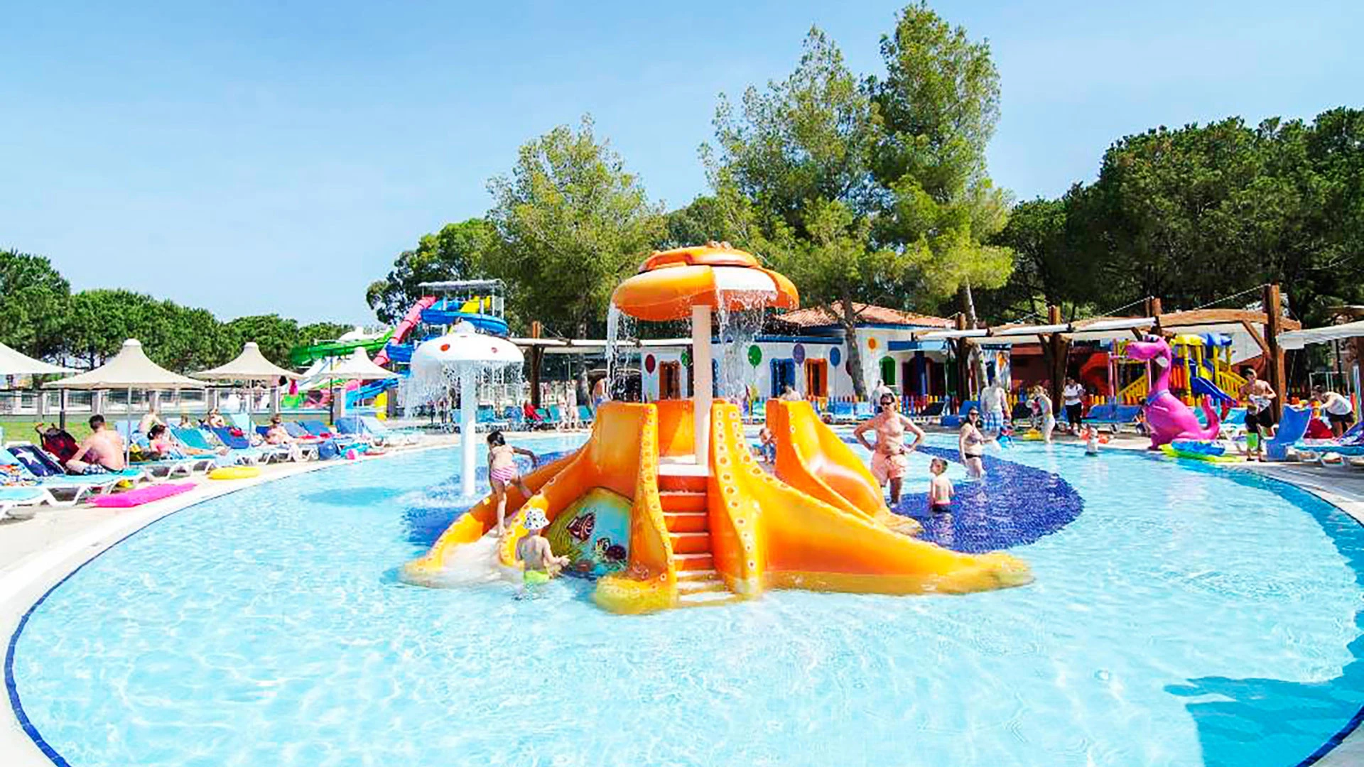 Комплексът разполага с няколко басейна, включително голям открит басейн, басейн с водни пързалки и детски басейн. Частният пясъчен плаж е оборудван с шезлонги и чадъри, като предлага и възможности за водни спортове като джетове и уиндсърфинг.