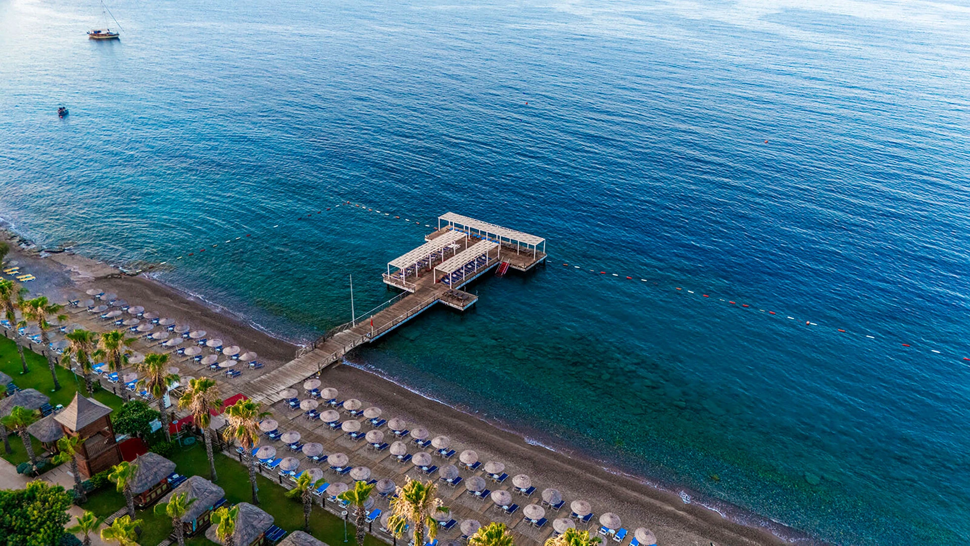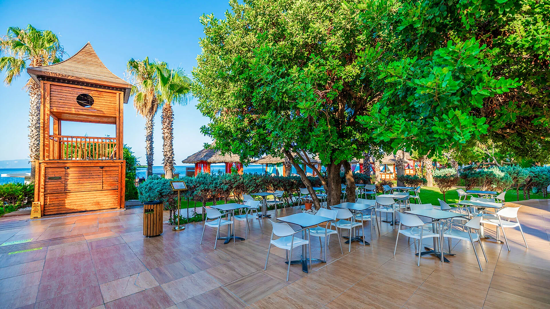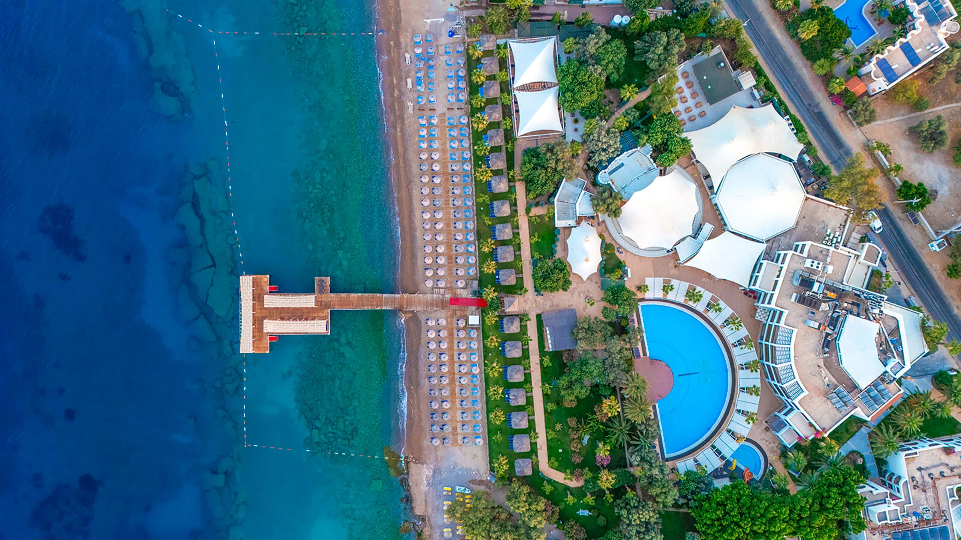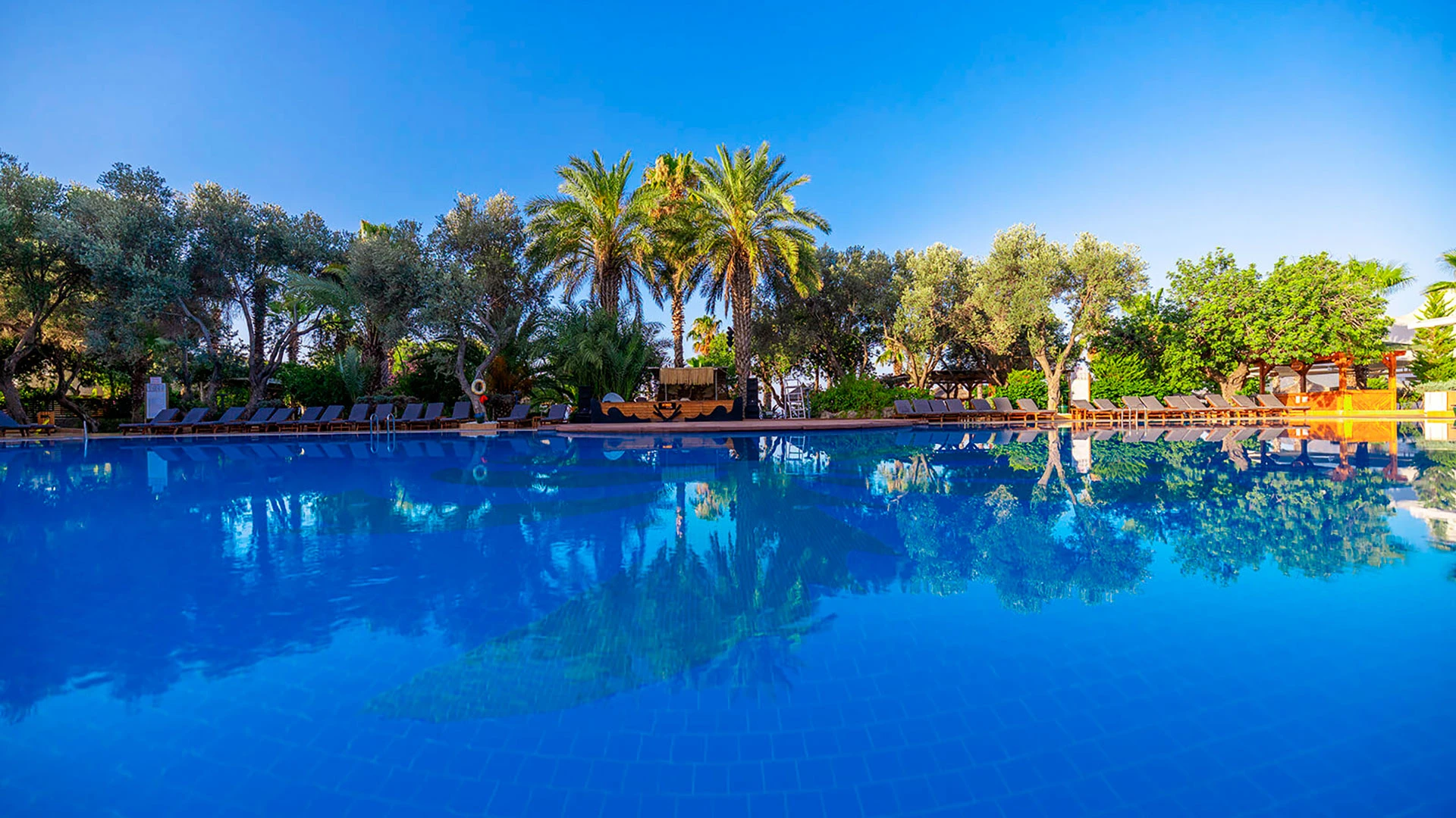 Комплексът разполага с няколко басейна, включително голям открит басейн, детски басейн и водни пързалки. Частният пясъчен плаж предлага шезлонги и чадъри за максимален комфорт. Гостите могат да се насладят на разнообразни водни спортове като каяк и водни ски.