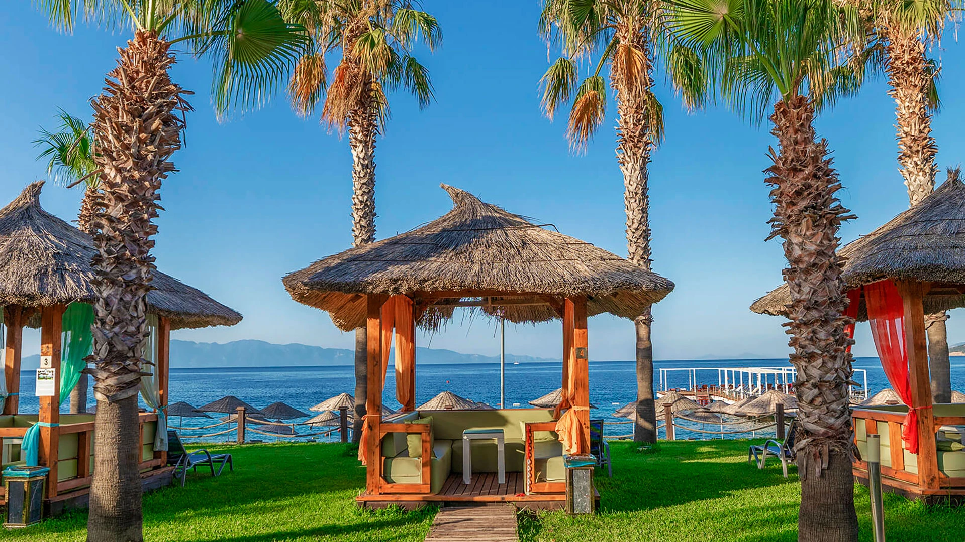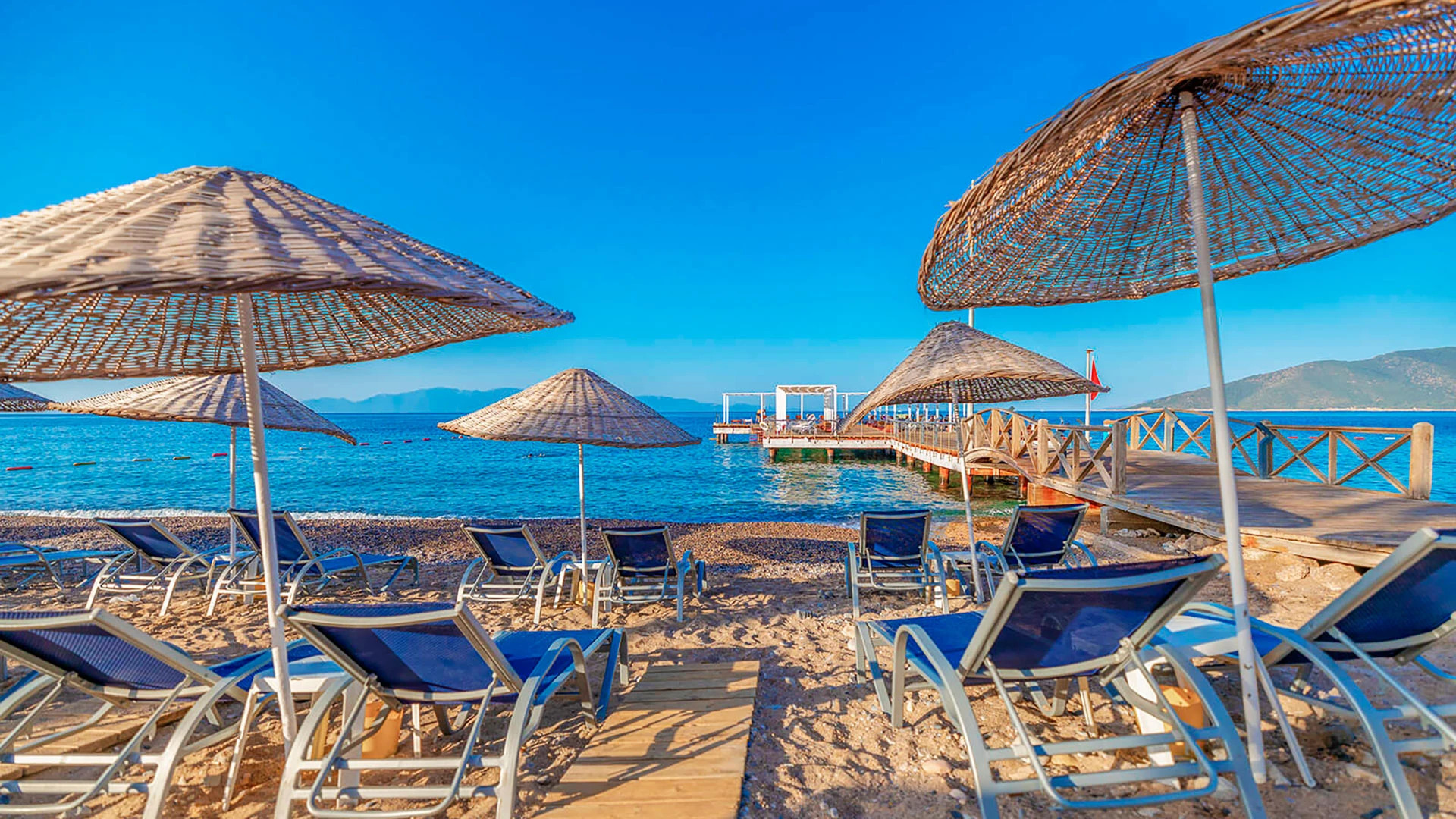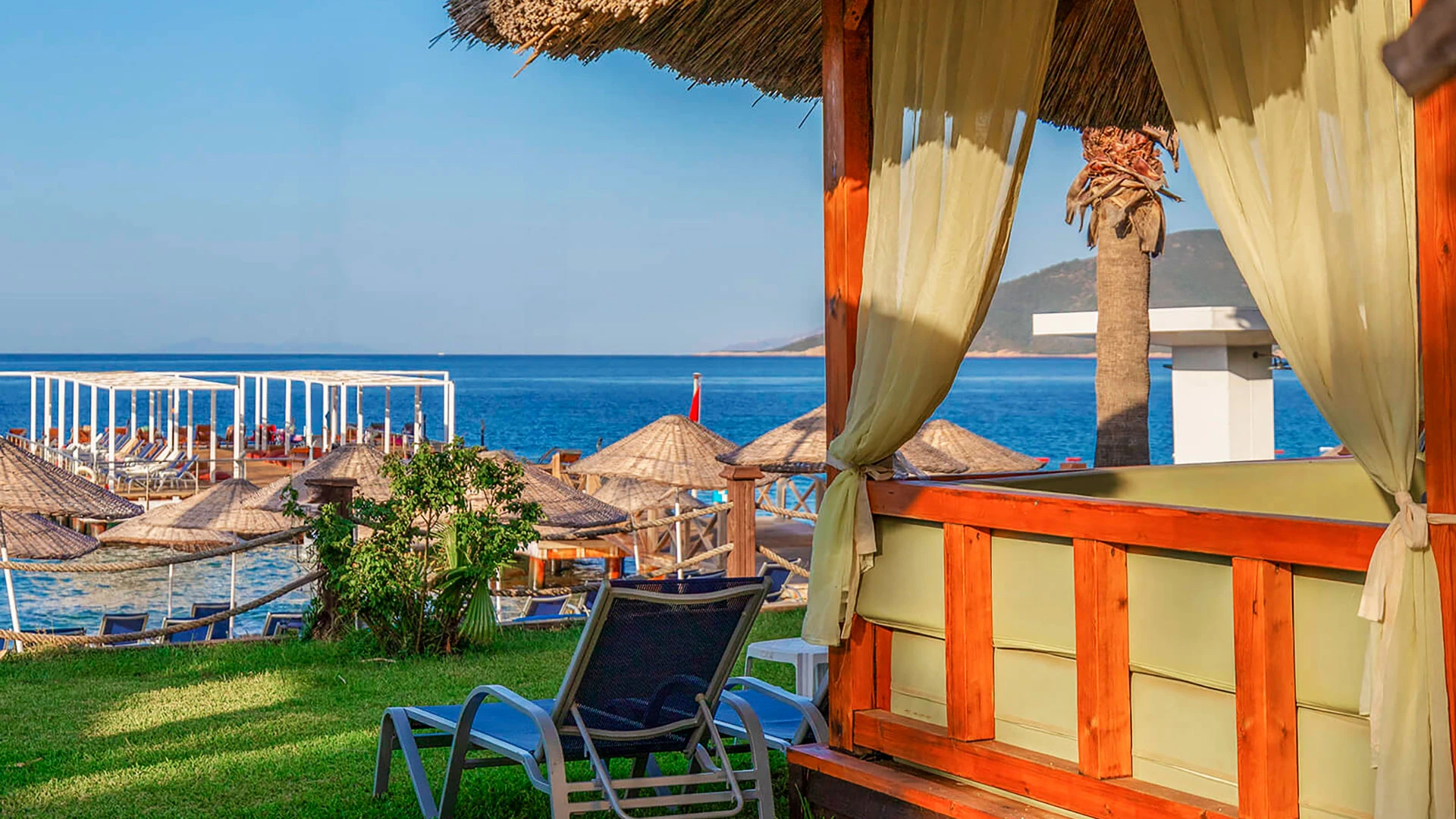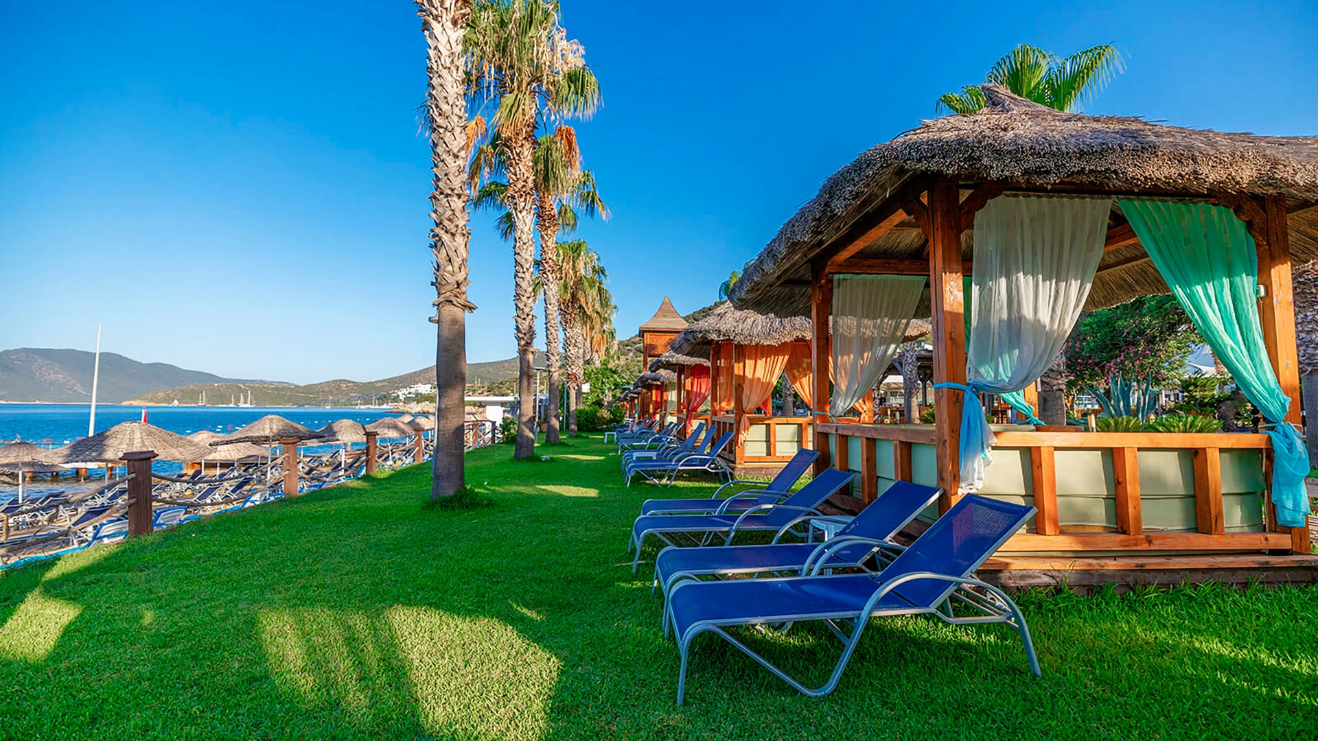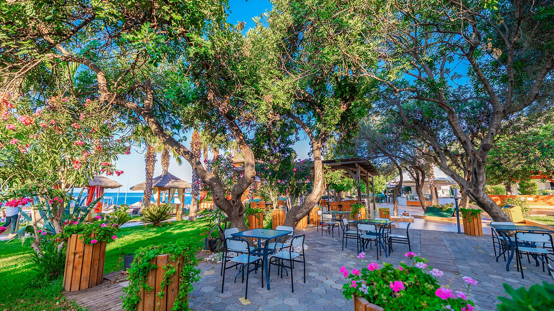 Комплексът разполага с няколко басейна, включително голям открит басейн, детски басейн и водни пързалки. Частният пясъчен плаж предлага шезлонги и чадъри за максимален комфорт. Гостите могат да се насладят на разнообразни водни спортове като каяк и водни ски.