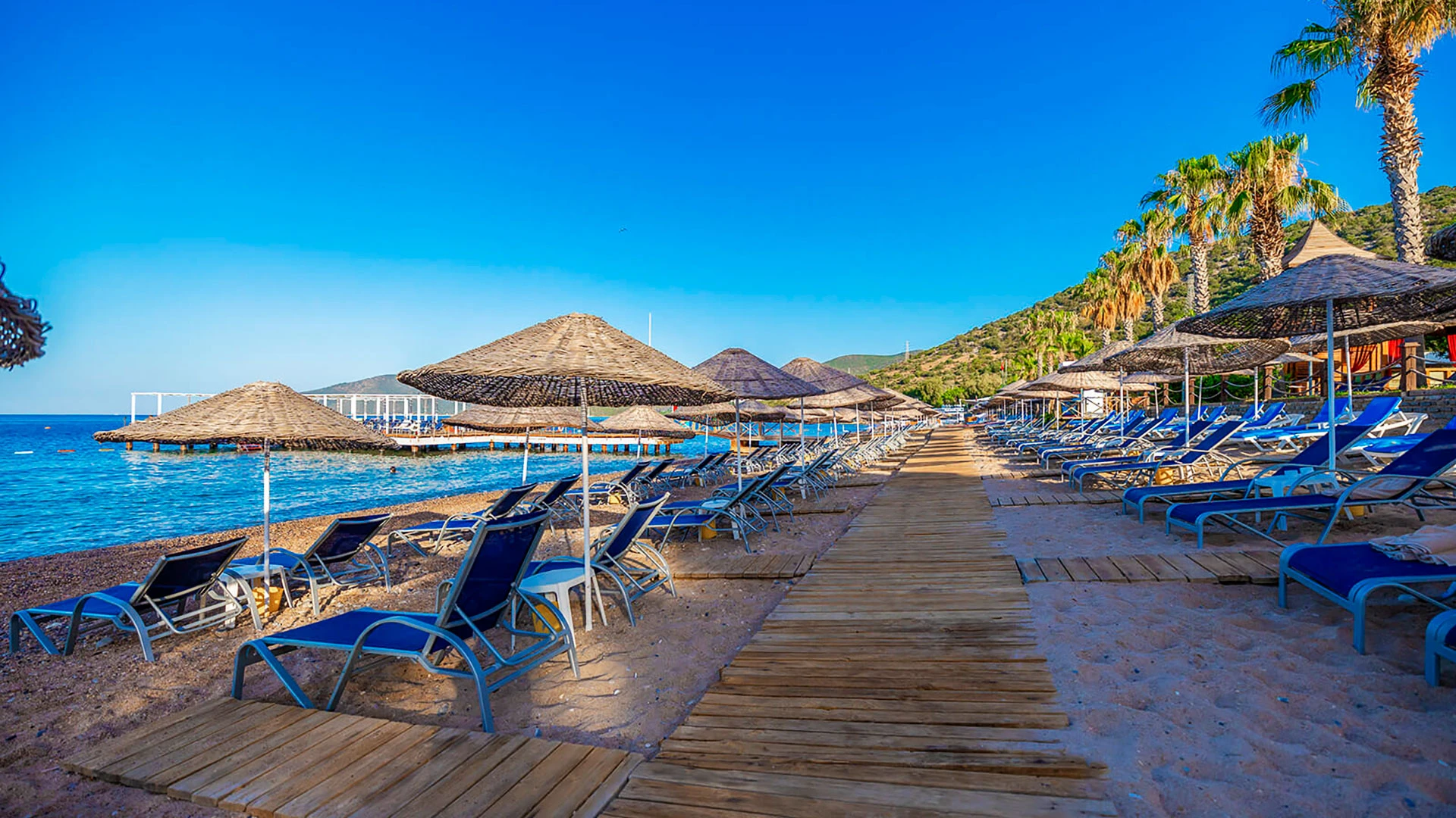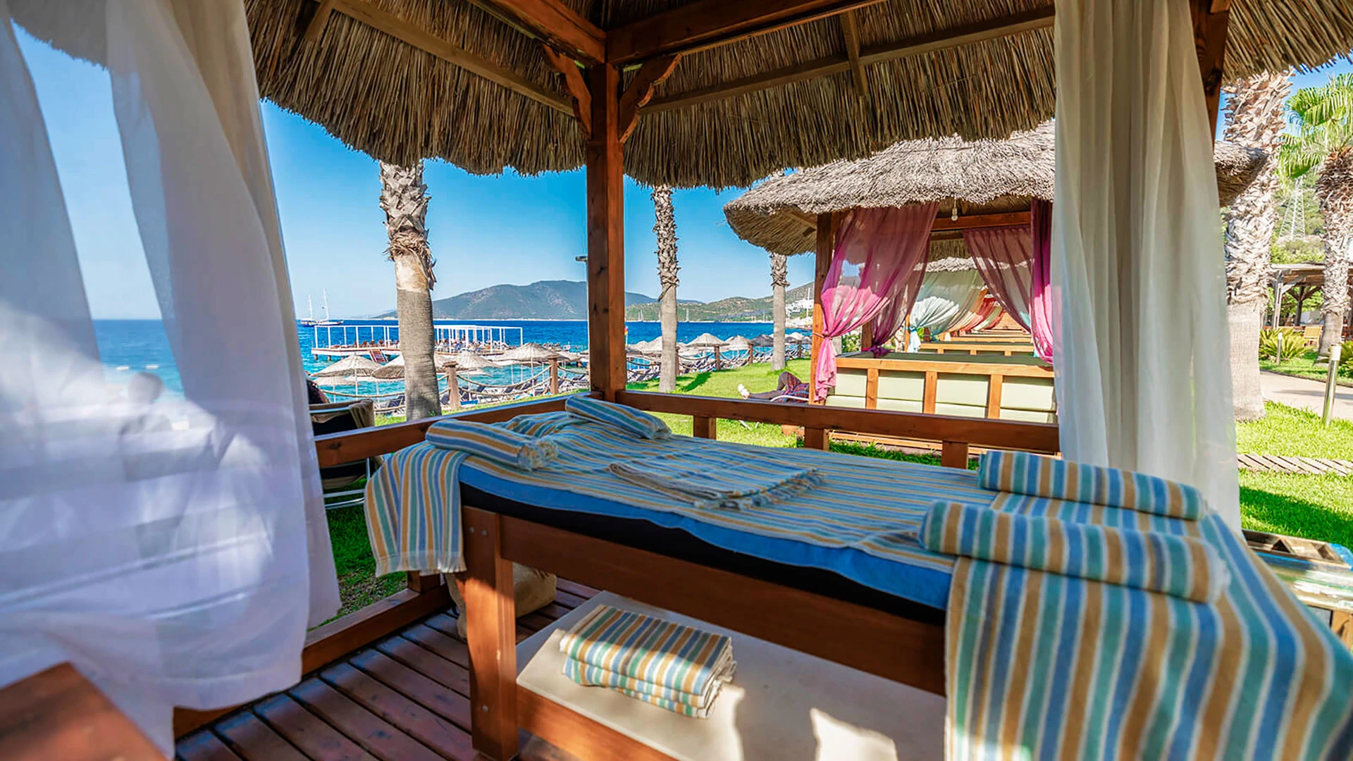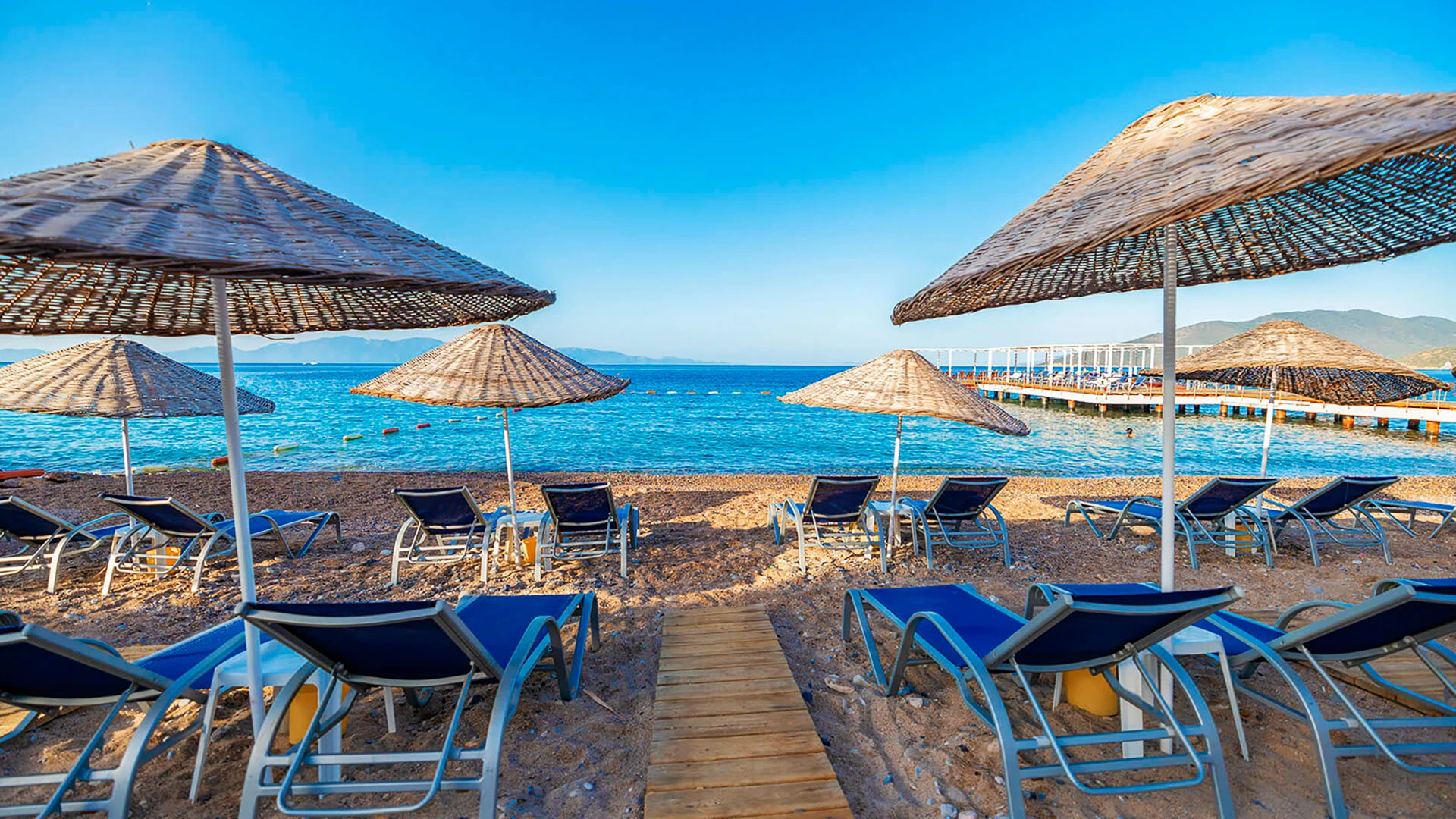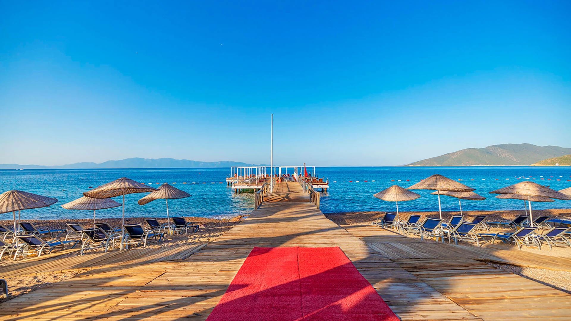 Комплексът разполага с няколко басейна, включително голям открит басейн, детски басейн и водни пързалки. Частният пясъчен плаж предлага шезлонги и чадъри за максимален комфорт. Гостите могат да се насладят на разнообразни водни спортове като каяк и водни ски.