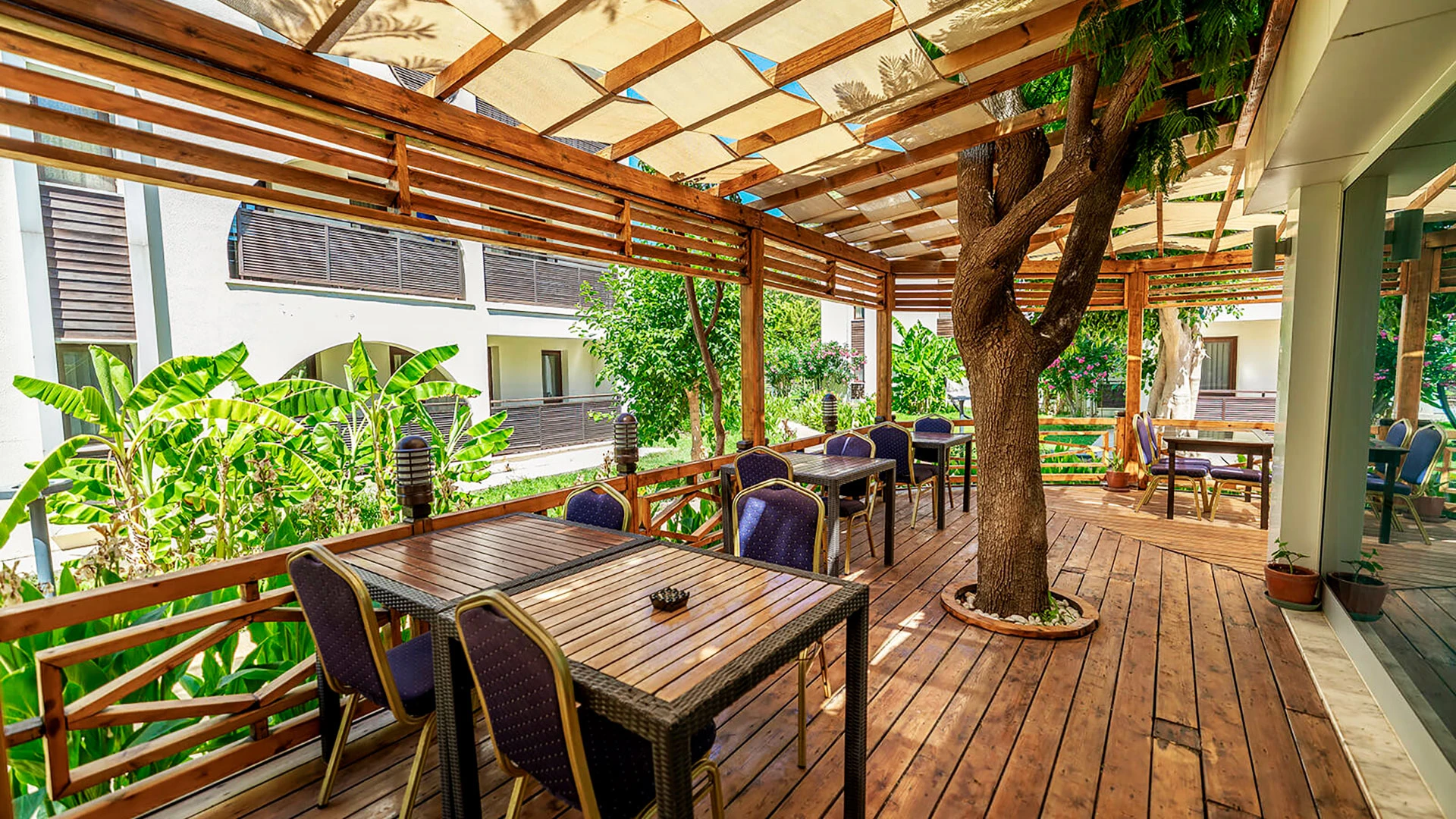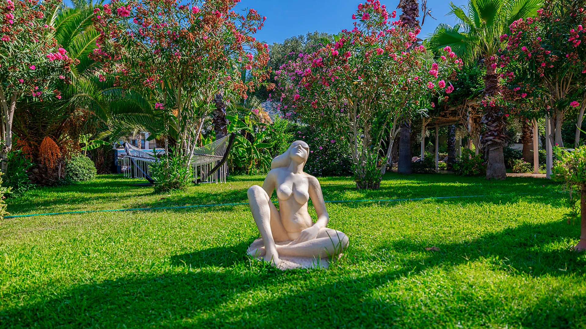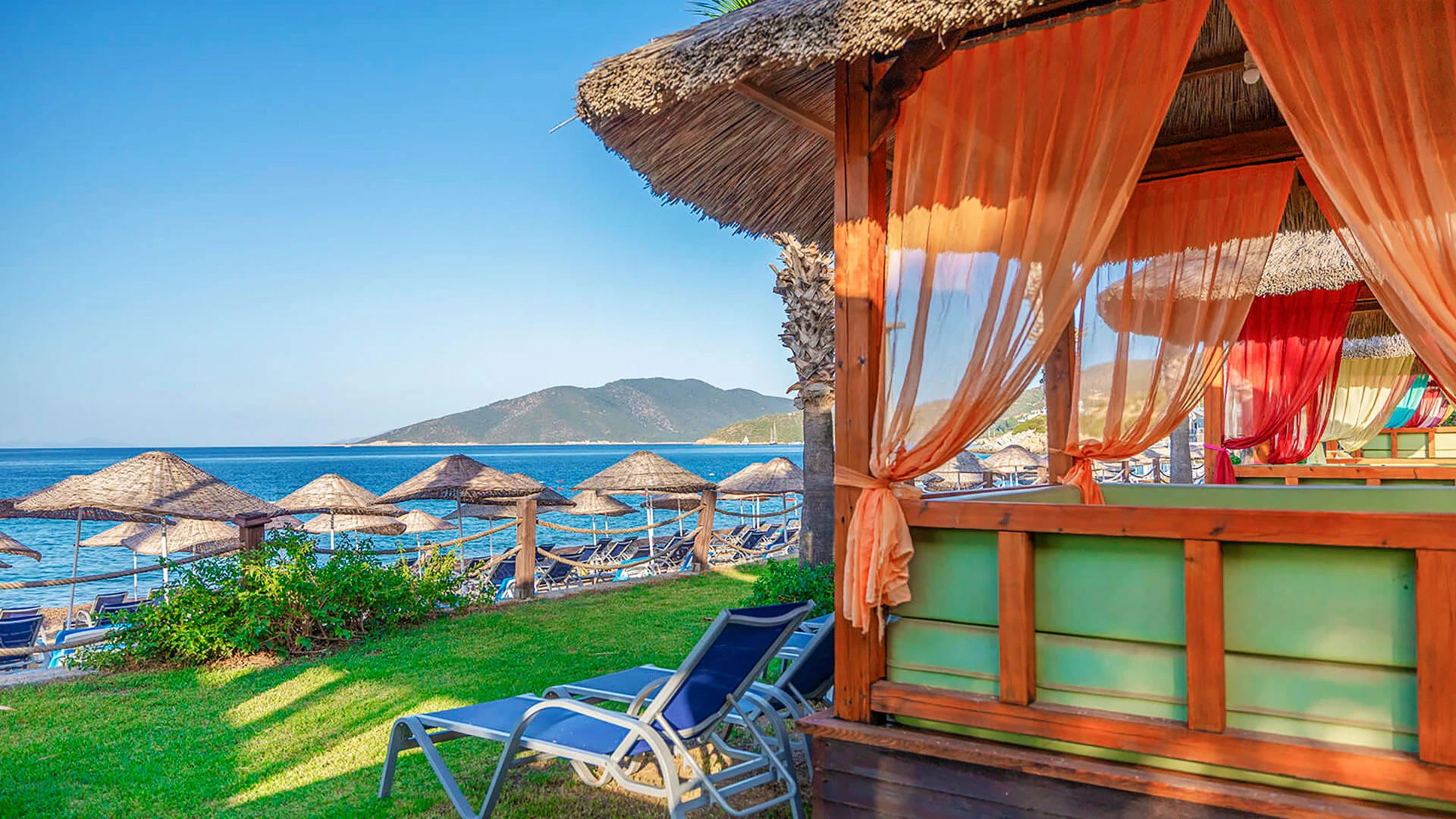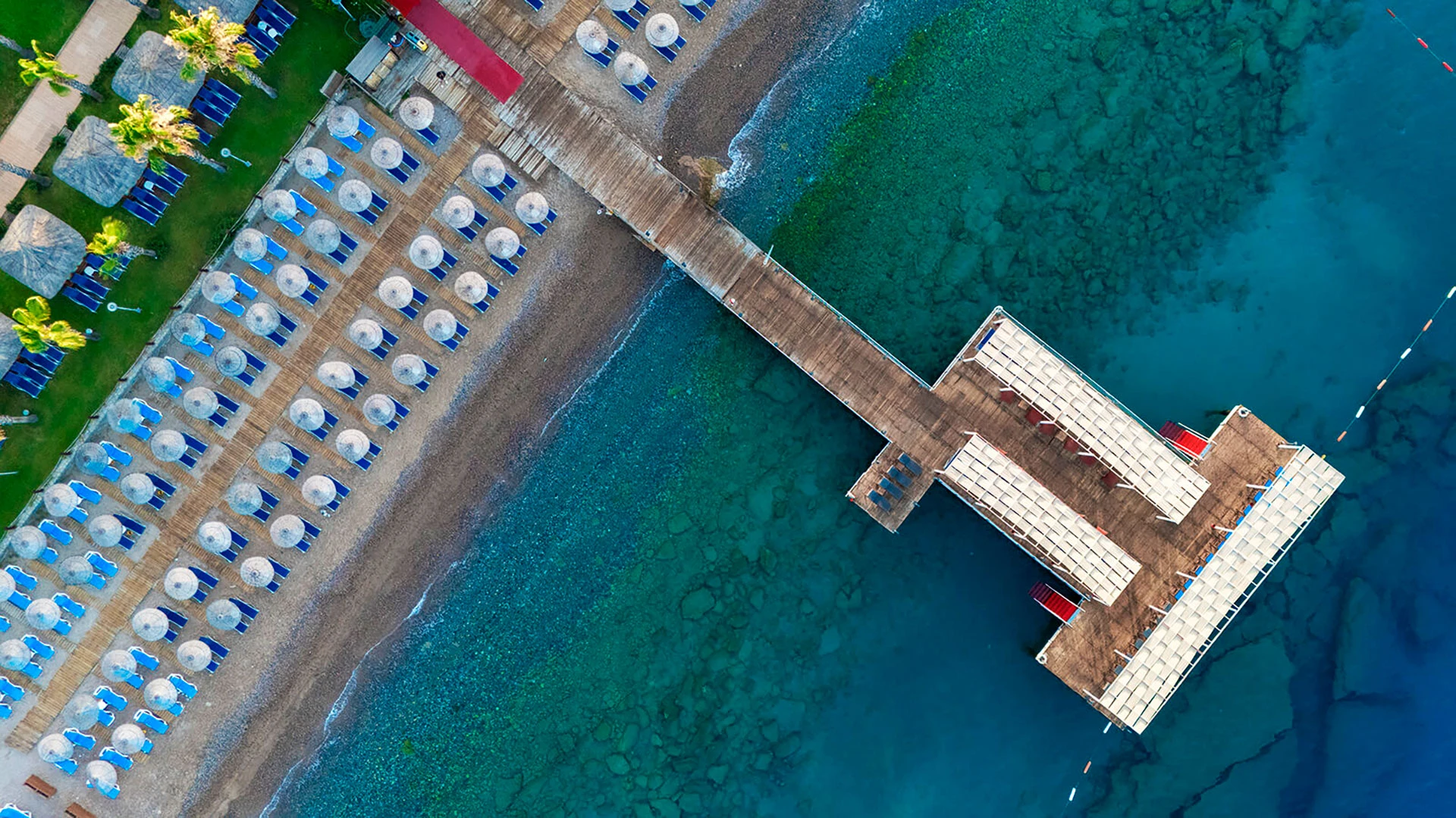 Комплексът разполага с няколко басейна, включително голям открит басейн, детски басейн и водни пързалки. Частният пясъчен плаж предлага шезлонги и чадъри за максимален комфорт. Гостите могат да се насладят на разнообразни водни спортове като каяк и водни ски.
