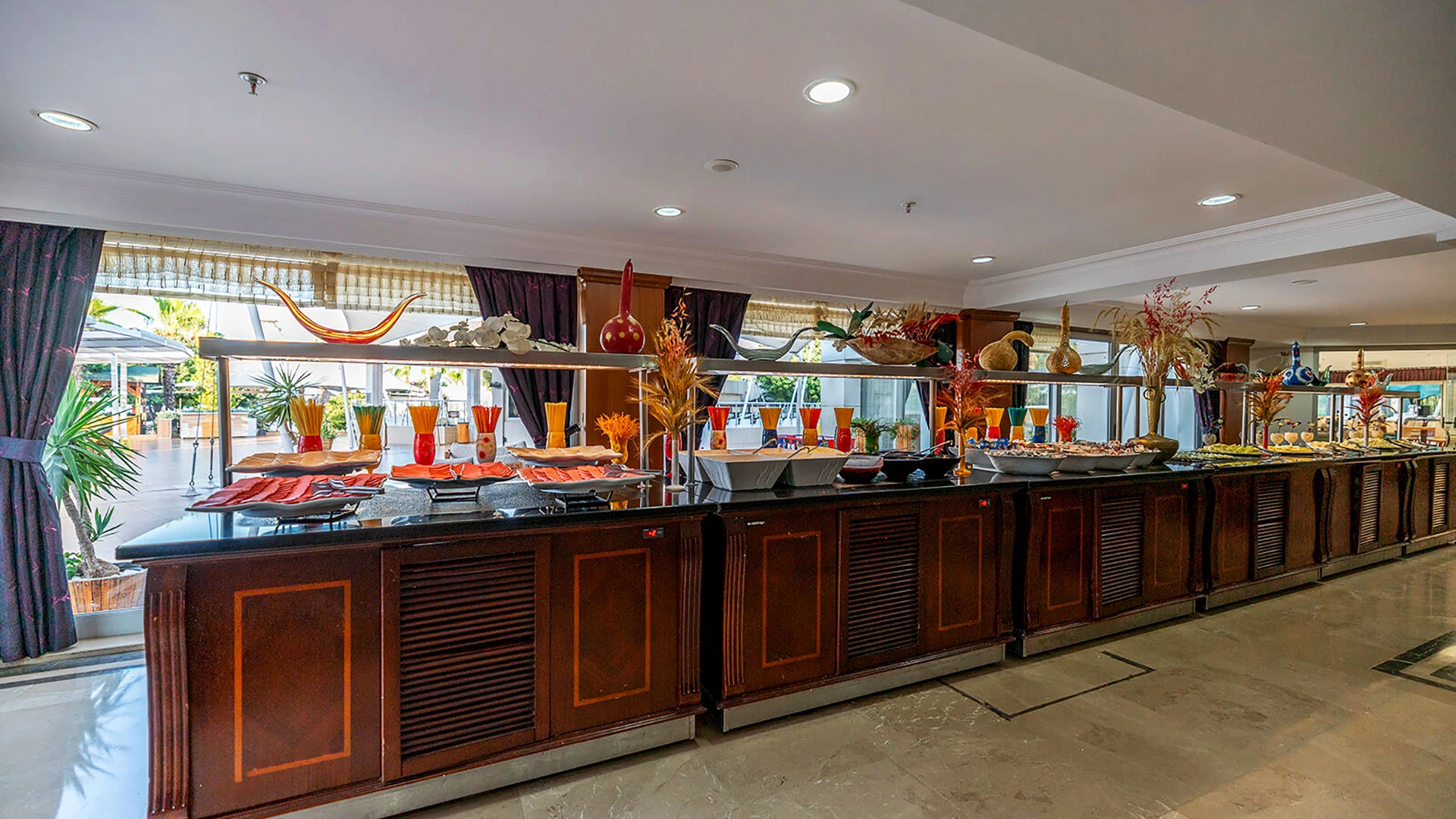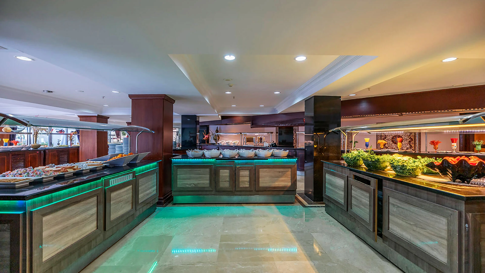 Храненето в хотела е на база all-inclusive, като основният ресторант предлага ястия на шведска маса с международни и местни специалитети. Има и няколко а-ла-карт ресторанта, където гостите могат да опитат турска, средиземноморска и италианска кухня. Баровете около басейна и плажа предлагат освежаващи напитки и леки закуски през целия ден.