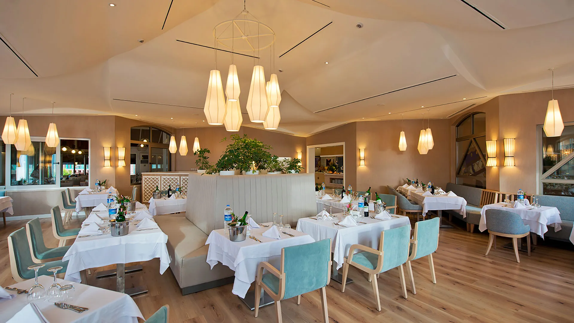 Хотелът е известен със своята изискана кулинарна сцена, включваща ресторанти като Myros, предлагащ турска и международна кухня, и специализирани ресторанти като италианския Balbura и японския Tepenyaki. Гостите могат да се насладят на вечеря с изглед към морето или в уединена обстановка с индивидуално обслужване.