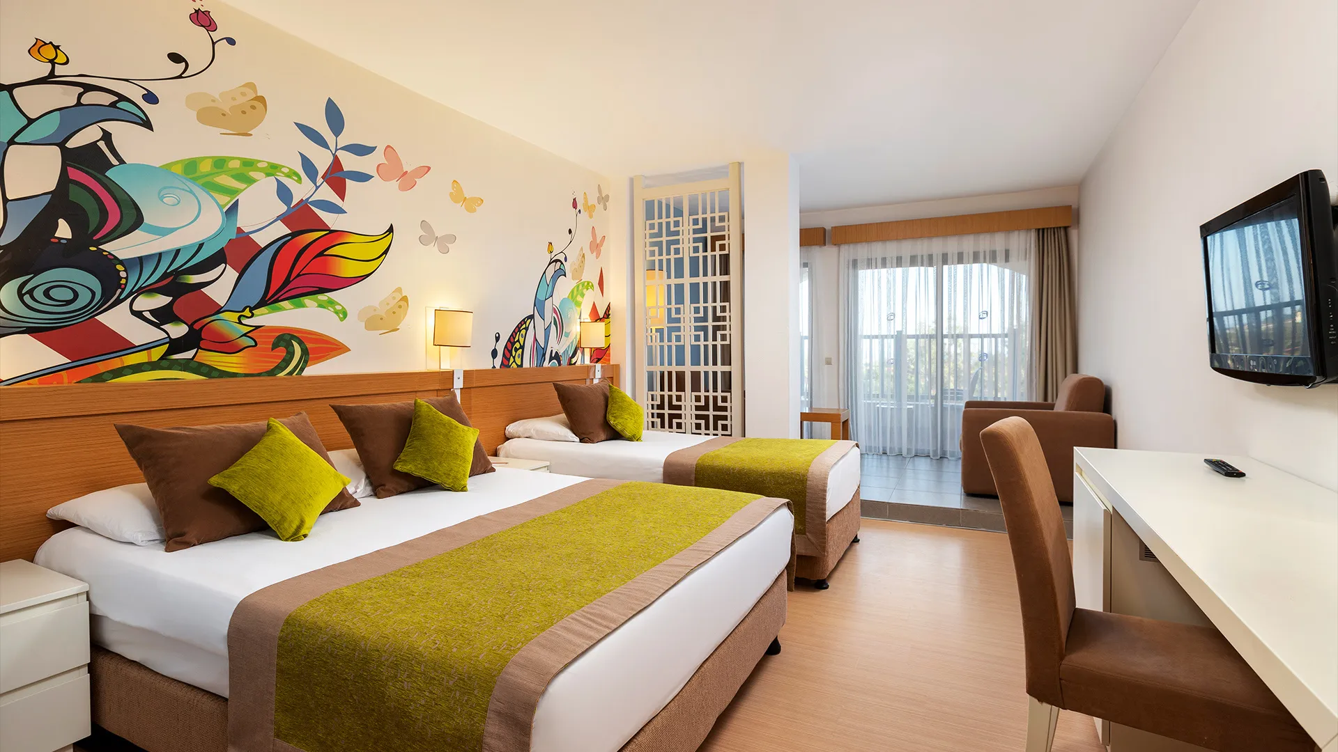 Всеки кът вLimak Arcadia Sport Resort е изпълнен с уют и стил, като стаите са обзаведени в топли и приятни цветове, оборудвани с минибар, телевизор и частна тераса. Има стаи, които предлагат невероятна гледка към блясъка на Средиземно море.