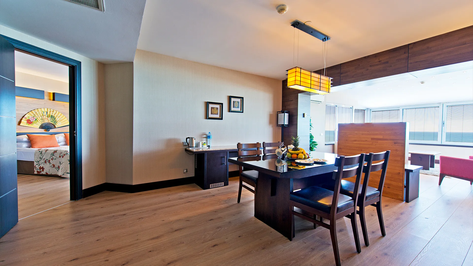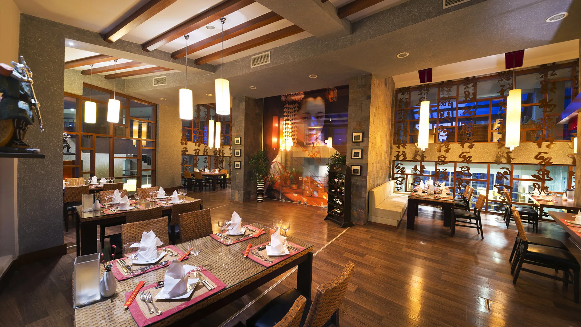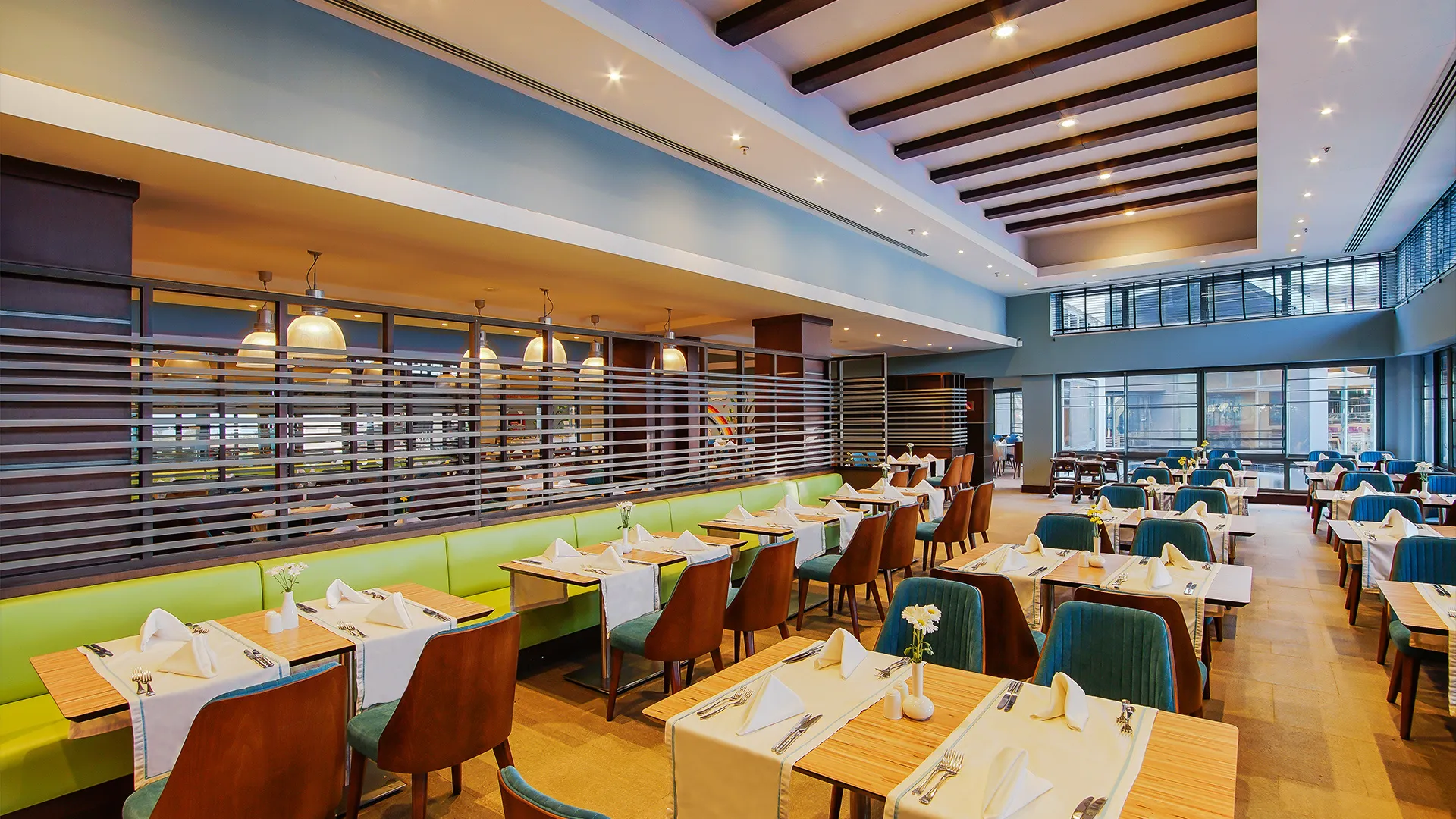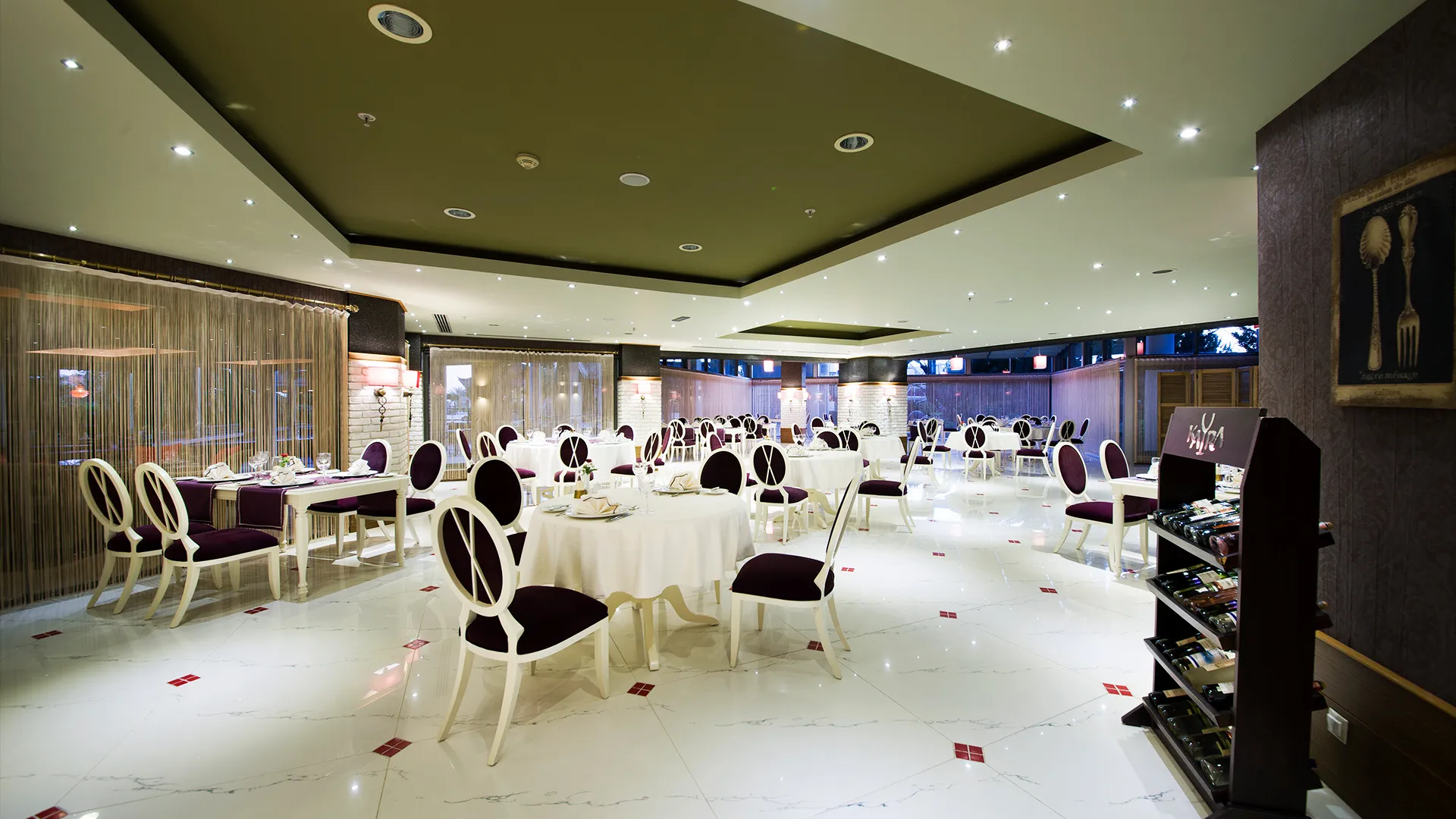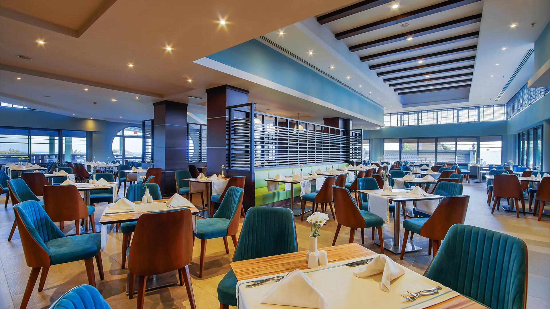 В ресторантите на място гостите могат да се насладят на разнообразие от международни кухни, включително индийска, тайландска, японска, италианска, мексиканска и турска. Ястията могат да бъдат сервирани както на закрито, така и на открито.