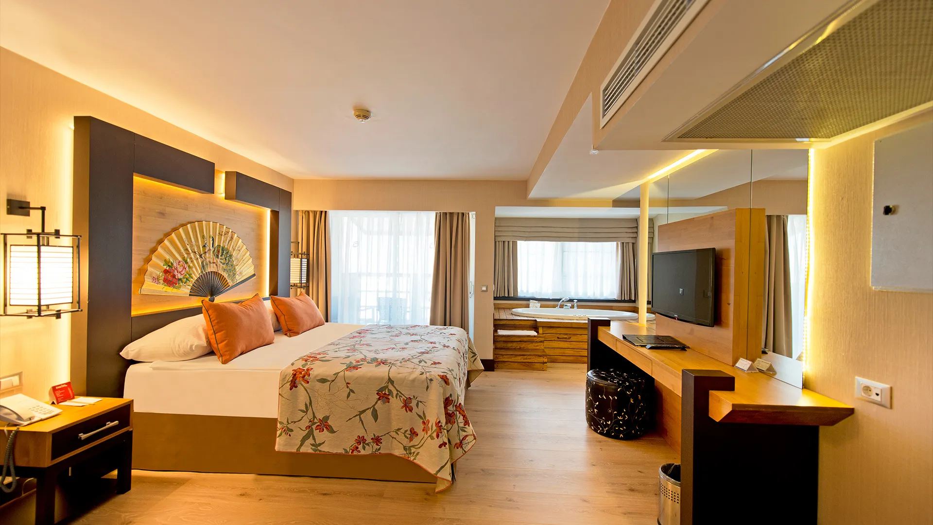 Стаите в хотел Limak Lara De Luxe са обзаведени с модерни мебели в традиционен турски стил. Всяка от тях разполага с просторна дневна зона с плосък телевизор, а някои предлагат и хидромасажна вана и тераса с изглед към морето. Гостите се посрещат с безплатна кошница с плодове в стаята си при пристигане.
