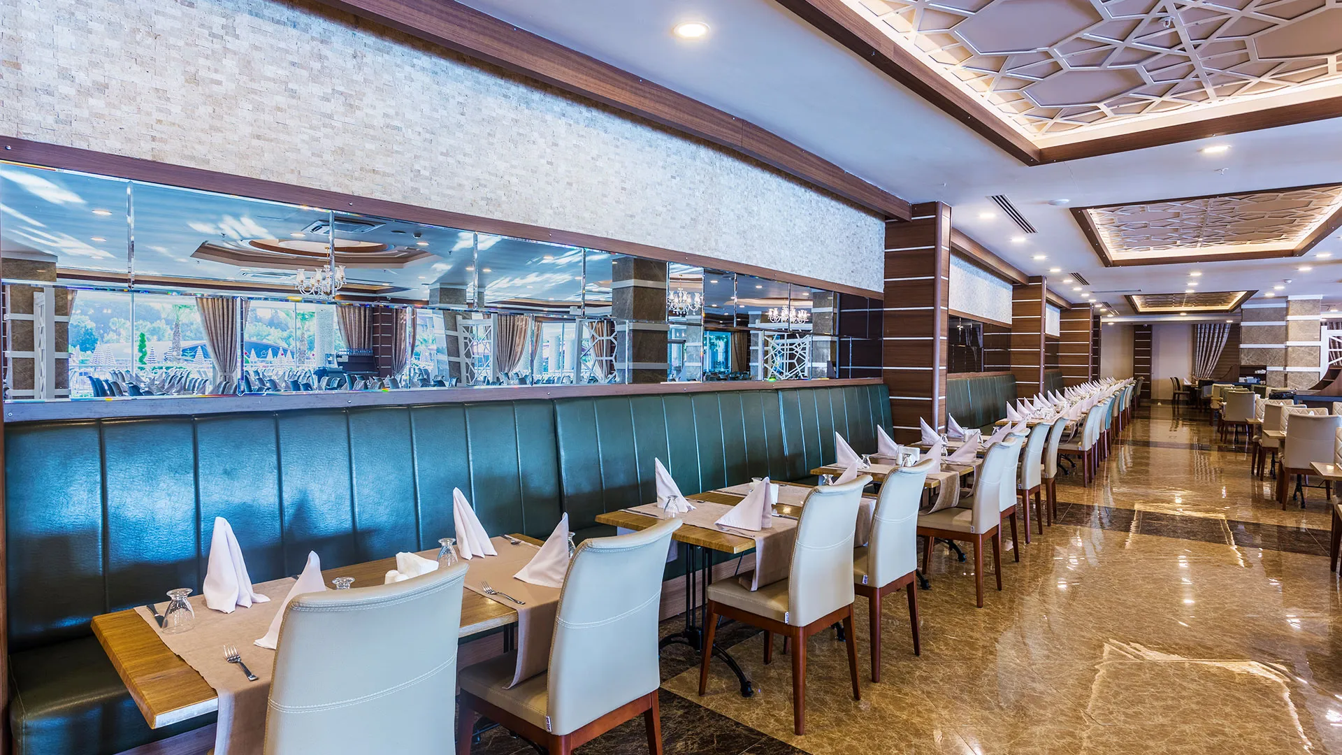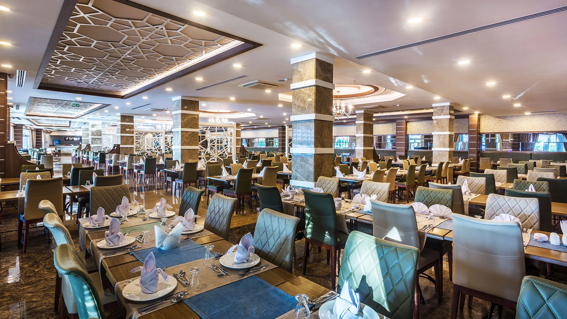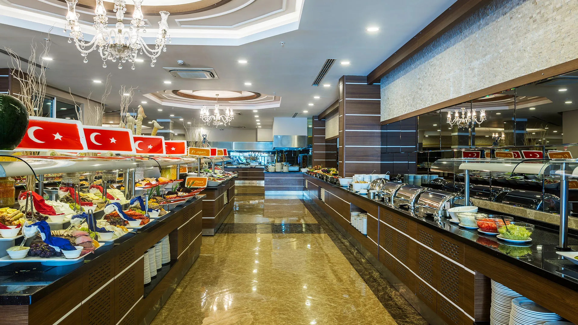 Всяка ден може да започне с изобилие от изкусни ястия, представени на шведска маса за закуска, обяд и вечеря. Гостите могат да се потопят в гастрономичната изобилие в ресторанта за морски дарове или да се насладят на изискани турски ястия в а-ла-карт ресторанта. От бързи закуски до сладки изкушения през целия ден, кафенето и плодовият бар са винаги на разположение. Барът на място предлага богат асортимент от напитки за всеки вкус.