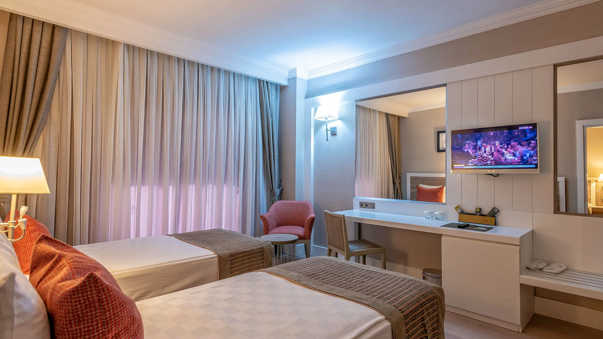 Настаняването в LRS Port River Hotel Spa включва стилно обзаведени стаи и апартаменти, които предоставят всички съвременни удобства за максимален комфорт. Всяка стая е оборудвана с централен климатик, телевизор с плосък екран и сателитни канали, телефон, минибар, сейф и безплатен Wi-Fi. Всяка стая има собствена баня с душ, сешоар и безплатни тоалетни принадлежности. Балконите предлагат красиви гледки към реката, морето, басейните или градините, създавайки атмосфера на спокойствие и релакс.