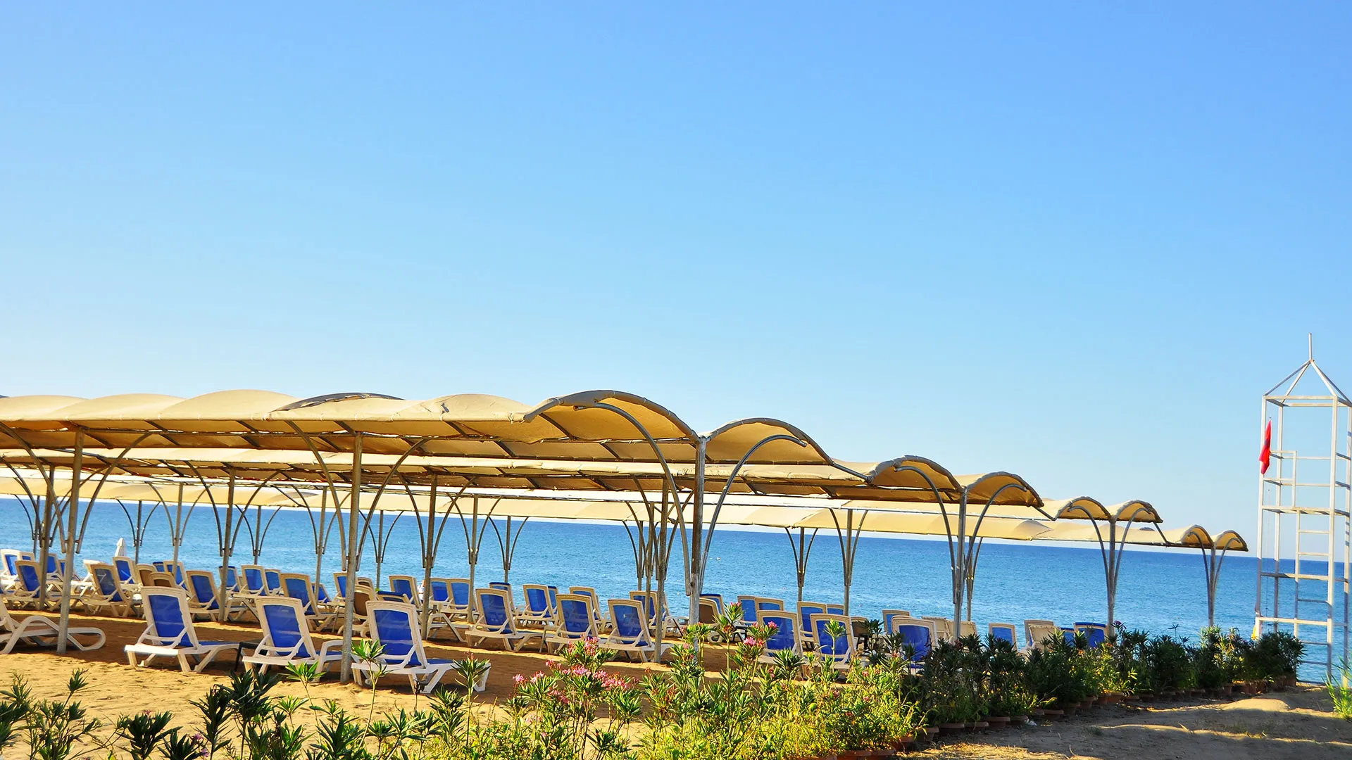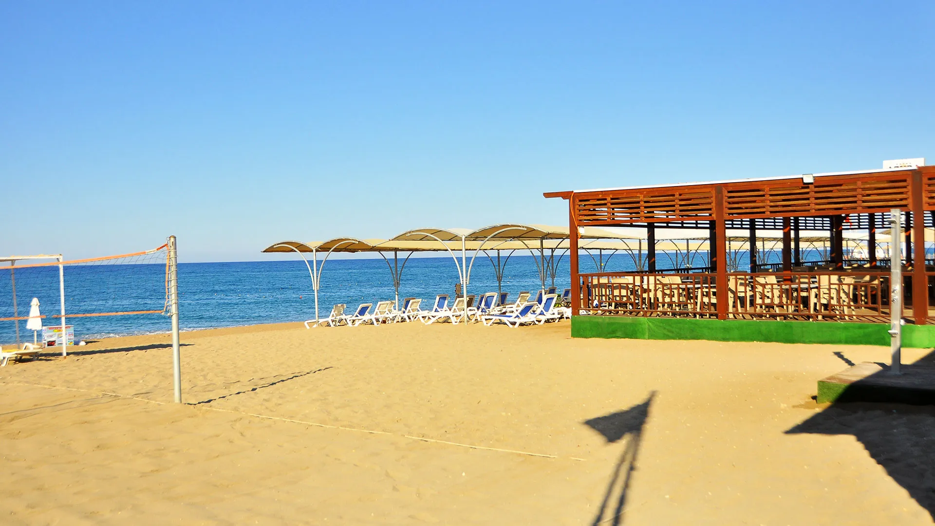 Плажът на хотела е със смес от пясък и камъчета и се намира на кратко разстояние от хотела. Шезлонги, матраци, чадъри и плажни кърпи са на разположение на гостите безплатно. На плажа има също павилион, който е срещу заплащане, и плажен бар.