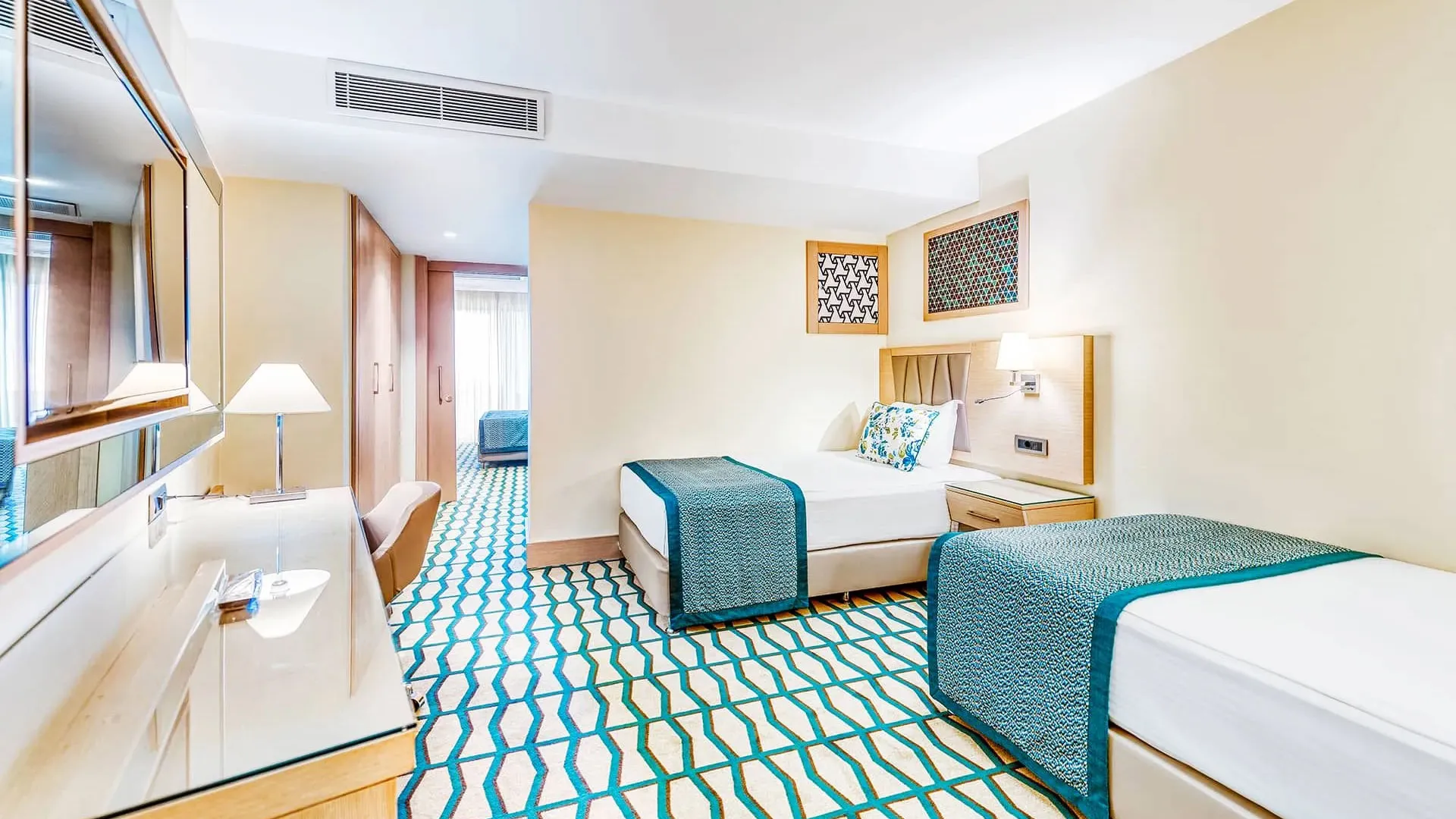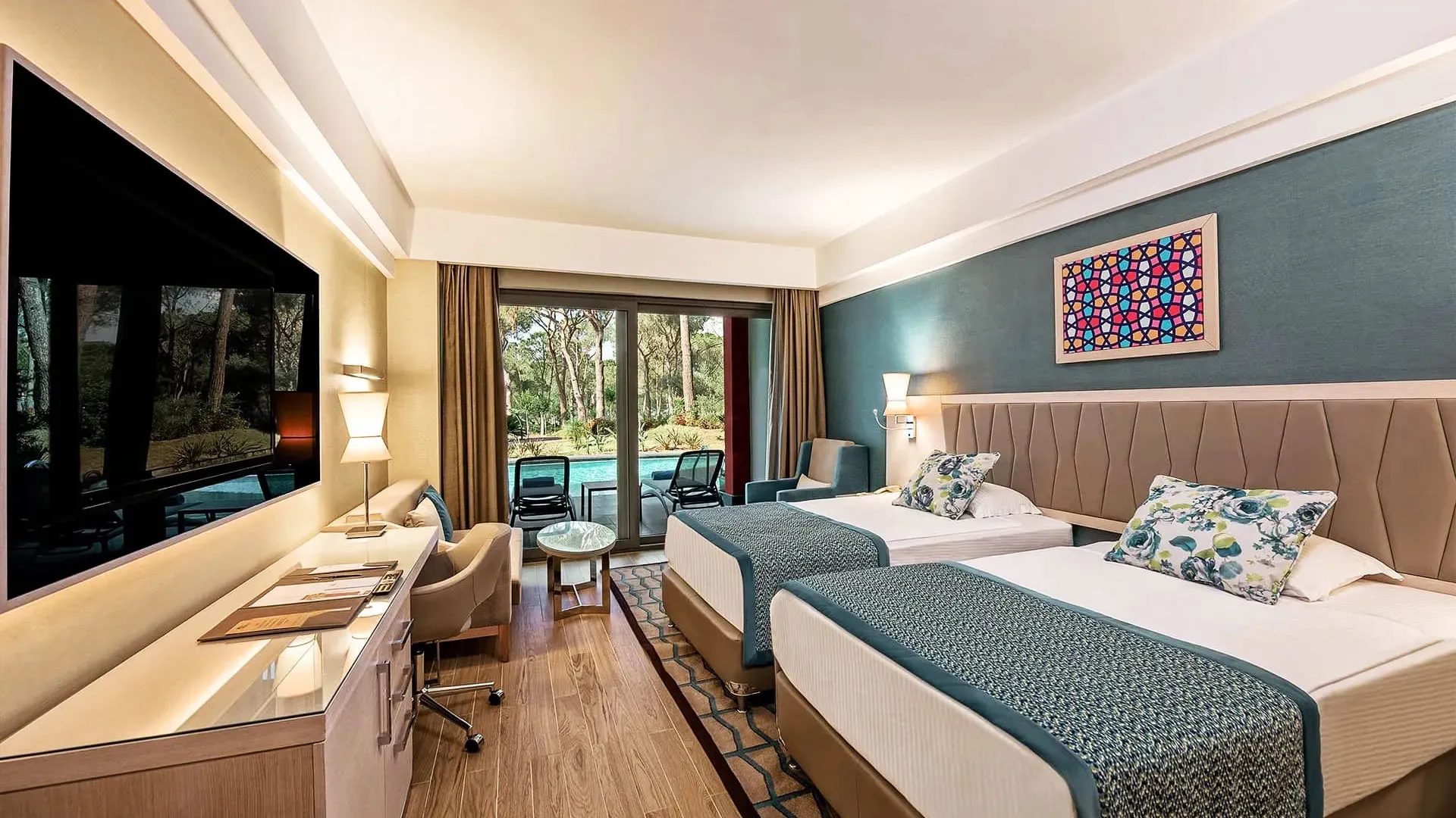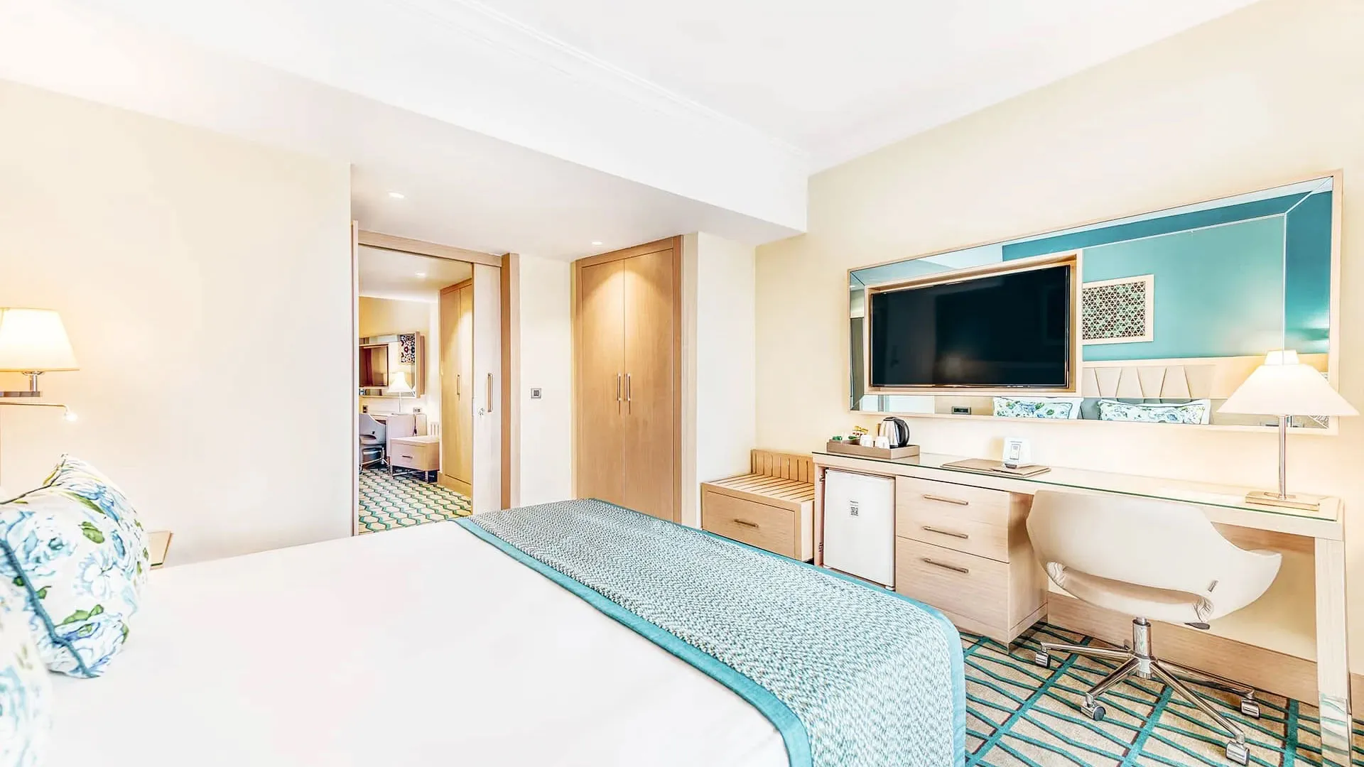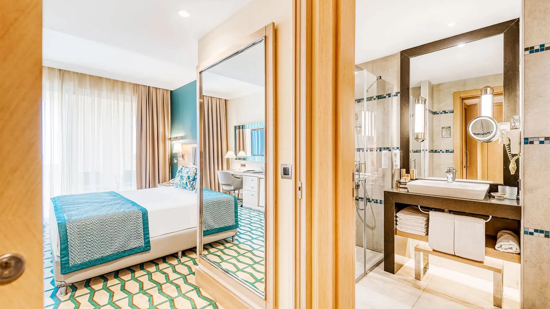 Настаняването в Megasaray Club Belek включва разнообразие от стилно обзаведени стаи и апартаменти, всяка от които е оборудвана с всички съвременни удобства, за да осигури максимален комфорт на гостите. Стаите разполагат с климатик, телевизор с плосък екран, минибар, сейф и безплатен Wi-Fi. Балконите предлагат спиращи дъха гледки към морето, басейните или градините, създавайки атмосфера на спокойствие и релакс.