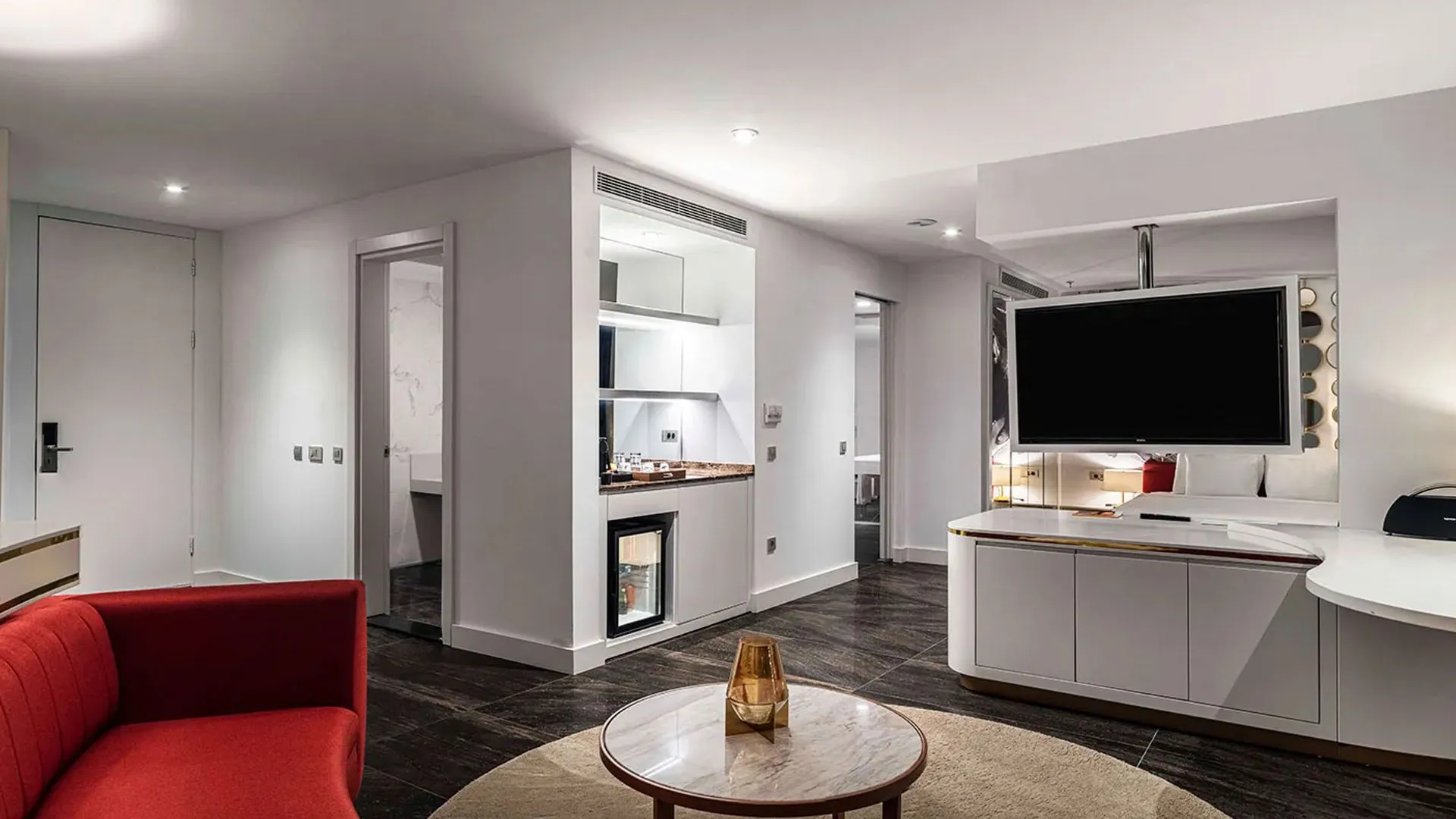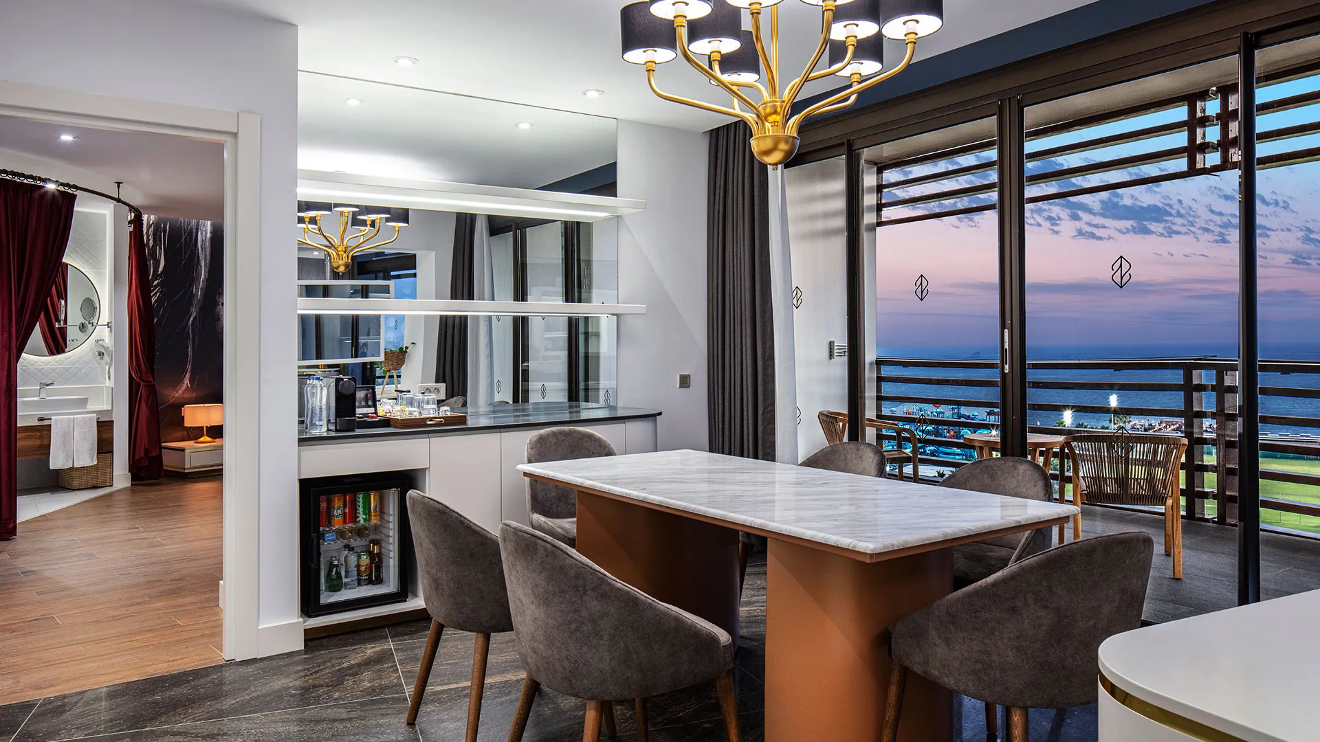 Стайте са обзаведени с модерни интериорни решения и дискретно осветление, съчетани с изискан дизайн. Всяка стая е оборудвана с удобно кожено кресло и телевизор с плосък екран и сателитни канали. Минибарът се пълни ежедневно, гарантирайки винаги свежи напитки за гостите.