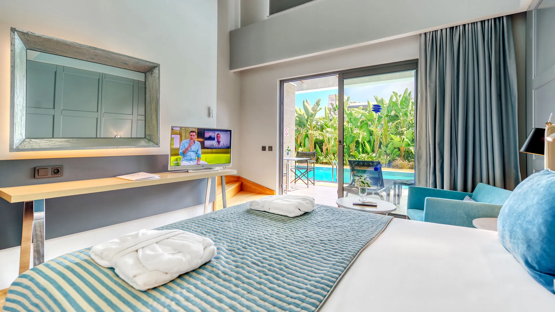 Всички стаи в този престижен хотел са оборудвани с климатик и модерни телевизори с плосък екран и сателитни канали. Някои от стаите предлагат уютно кътче за отпускане, където гостите могат да се насладят на заслужен покой след дълъг ден. Много от стаите разполагат с прекрасни гледки към басейна или градината. Всяка стая разполага със собствена баня, оборудвана с вана или душ, като за допълнително удобство на гостите се предоставят халати за баня и безплатни тоалетни принадлежности.