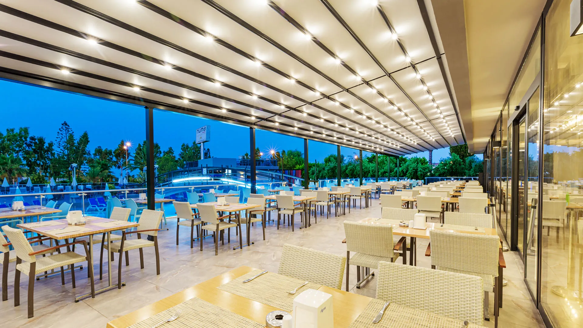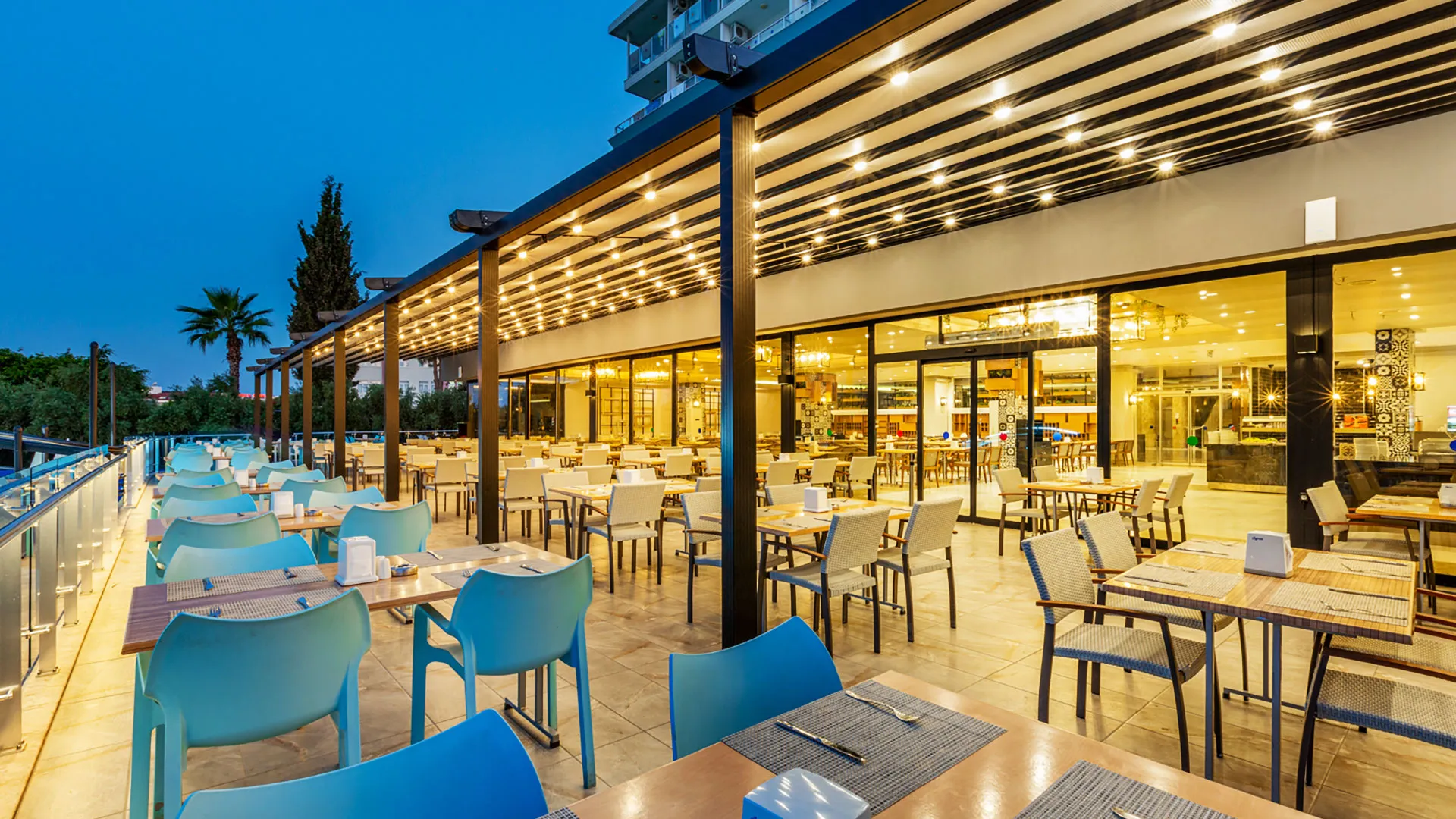 Хотелът предлага разнообразни възможности за хранене, включително закуска, обяд и вечеря на шведска маса в основния ресторант. Има също 4 бара, разположени на стратегически места - на плажа, до басейна, във фоайето и в дискотеката. През целия ден ви предлагаме разнообразие от леки закуски, а а ла карт ресторантът е на разположение за вечеря.