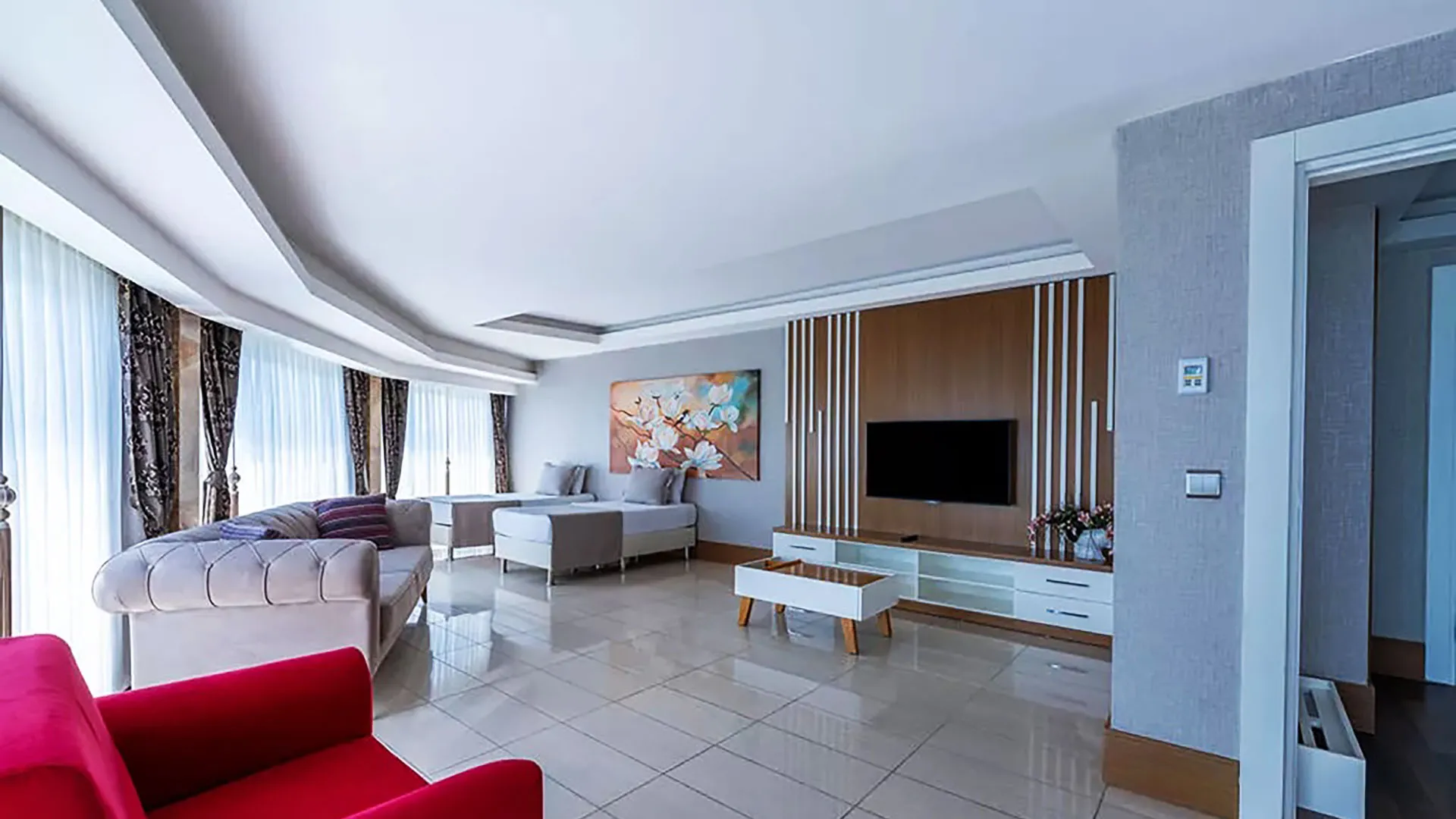 Хотелът разполага с разнообразие от стаи и апартаменти, проектирани да отговорят на нуждите на всякакъв вид посетители. Всяка стая е обзаведена с модерни мебели и оборудвана с всички необходими удобства като климатик, телевизор с плосък екран, минибар и безплатен Wi-Fi. Повечето стаи предлагат и балкони с впечатляващи изгледи към морето или красивите градини на хотела.