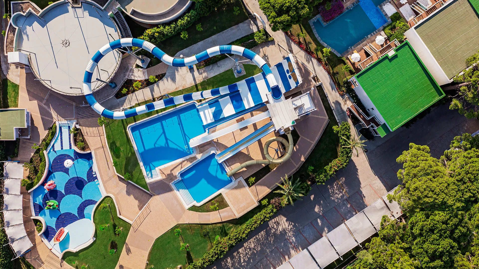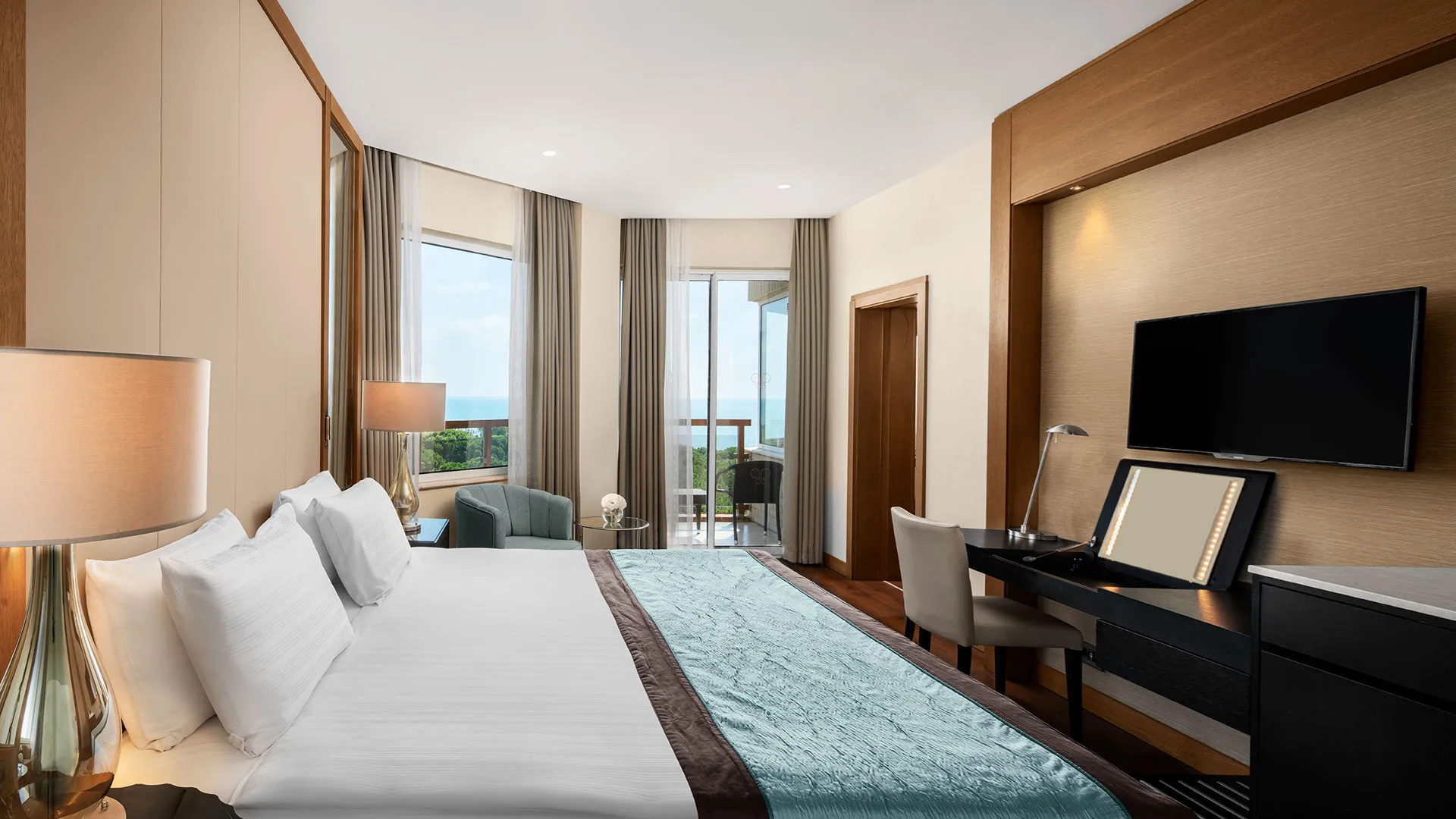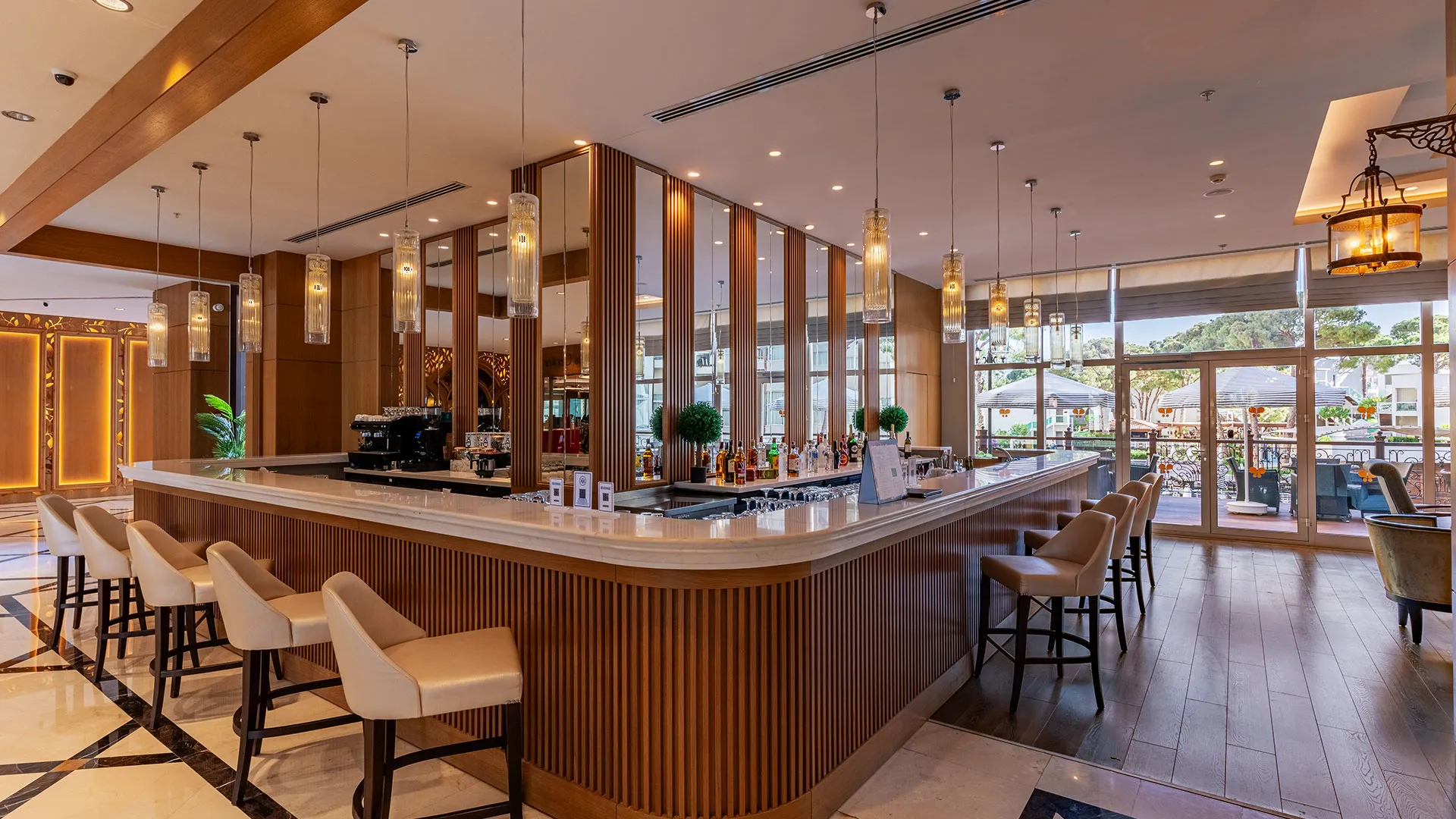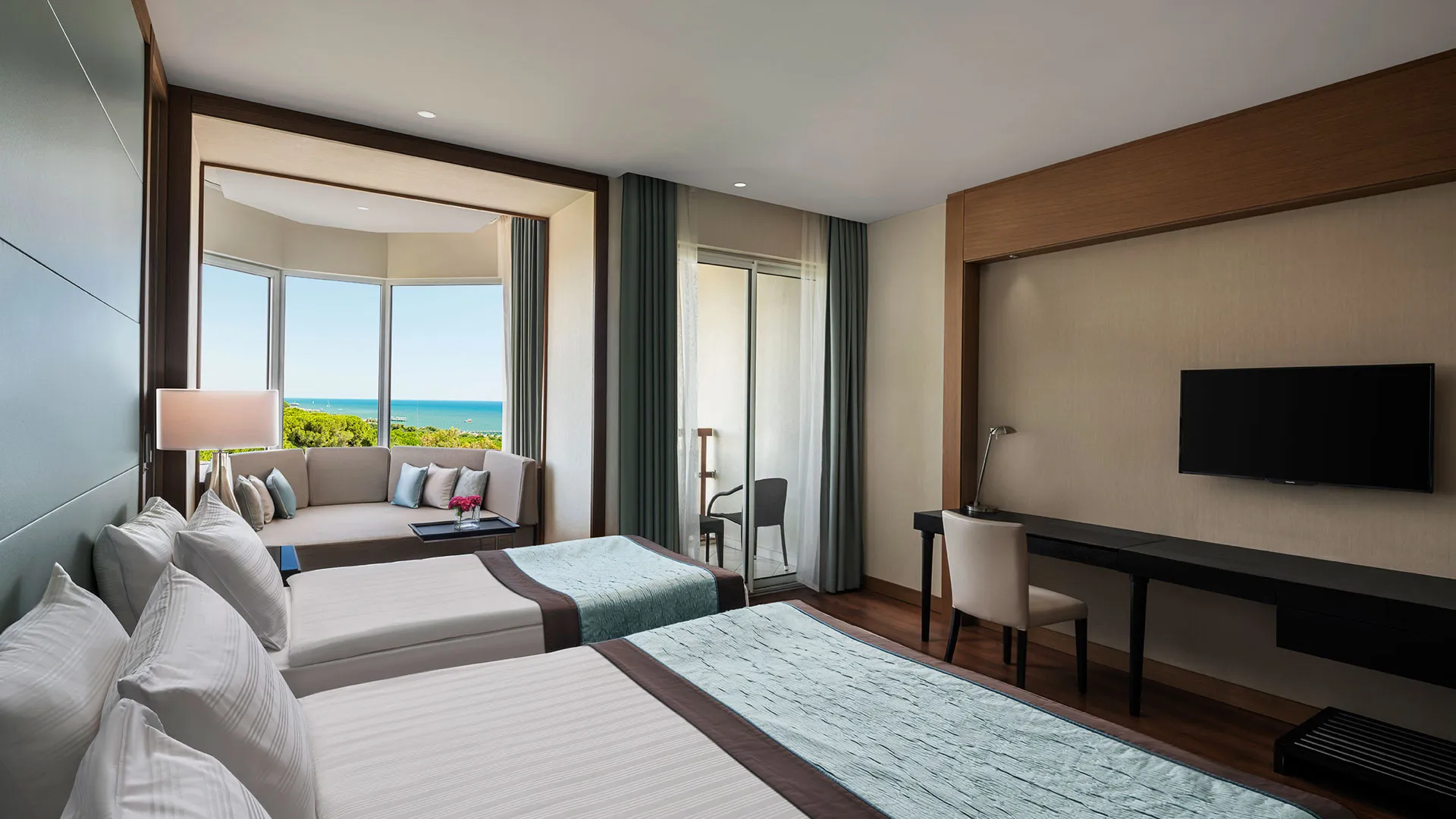 Хотелът разполага с обширна територия, оформена с внимание към детайла, която включва чудесни зелени площи, открити басейни и прекрасни плажни зони. Гостите могат да се насладят на множество удобства и забавления, включително спа център със сауна, турска баня и масажи, фитнес зала, тенисни кортове, водни спортове и детски клуб.