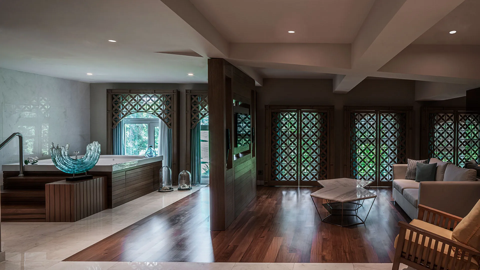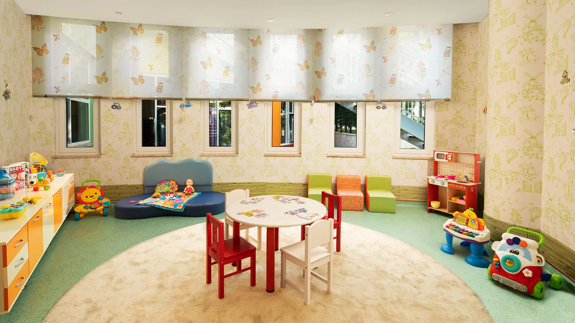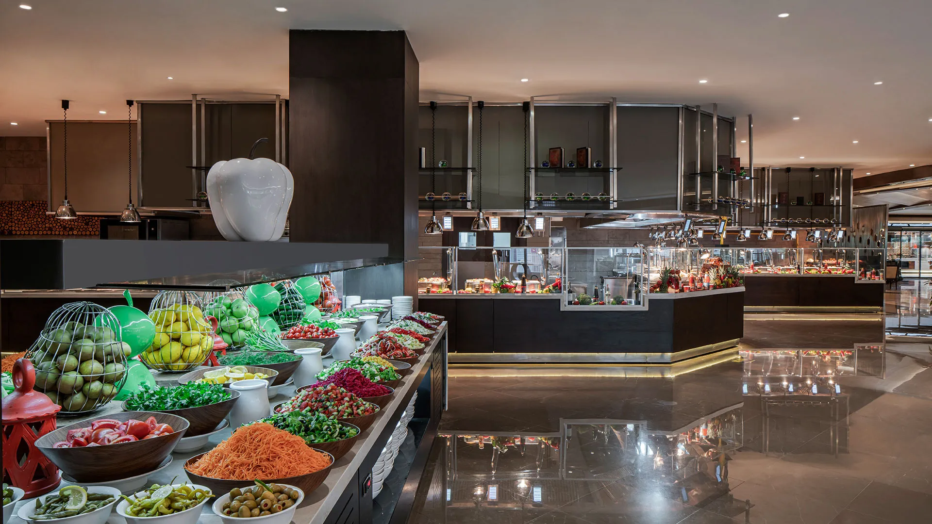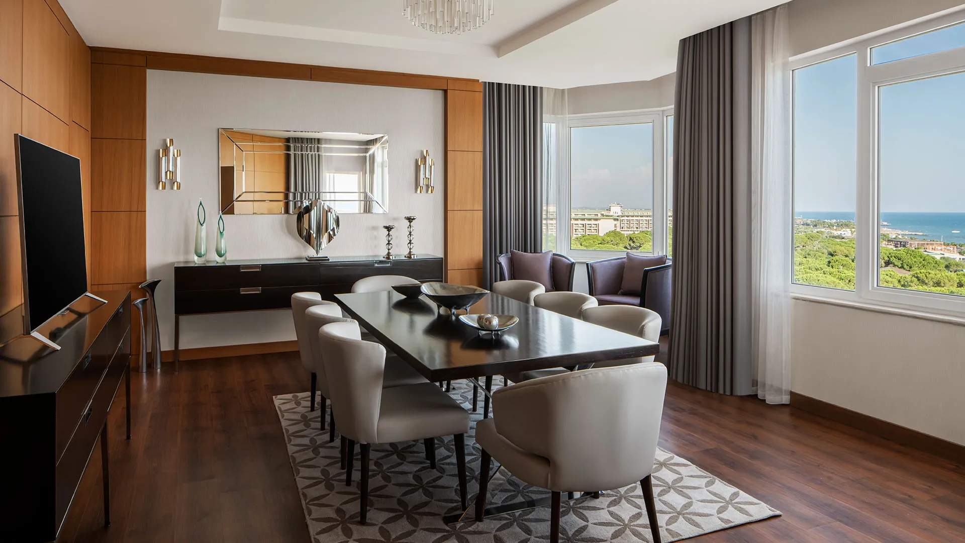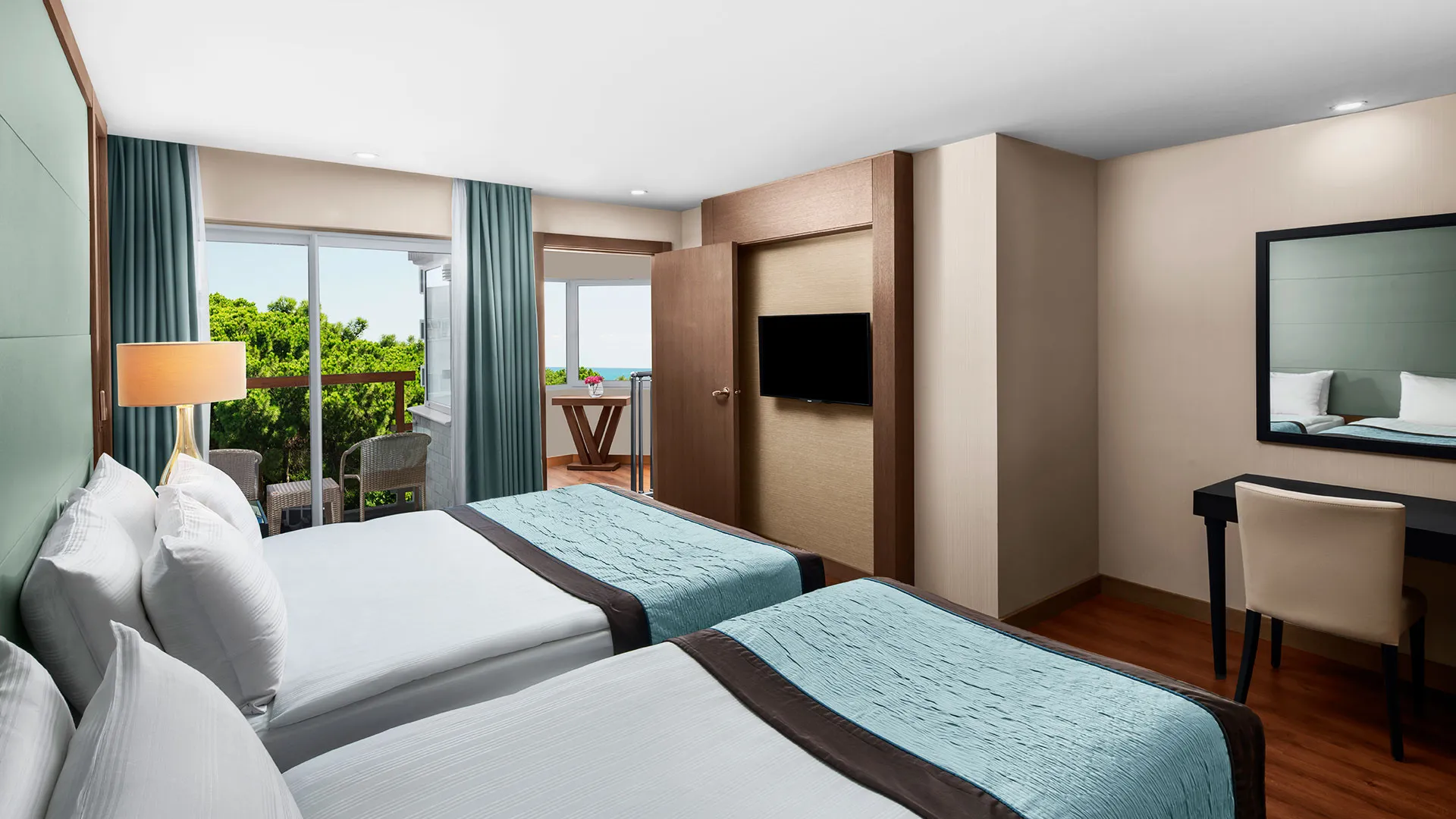 Хотелът разполага с обширна територия, оформена с внимание към детайла, която включва чудесни зелени площи, открити басейни и прекрасни плажни зони. Гостите могат да се насладят на множество удобства и забавления, включително спа център със сауна, турска баня и масажи, фитнес зала, тенисни кортове, водни спортове и детски клуб.