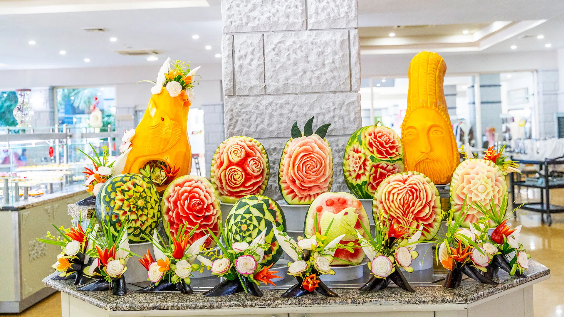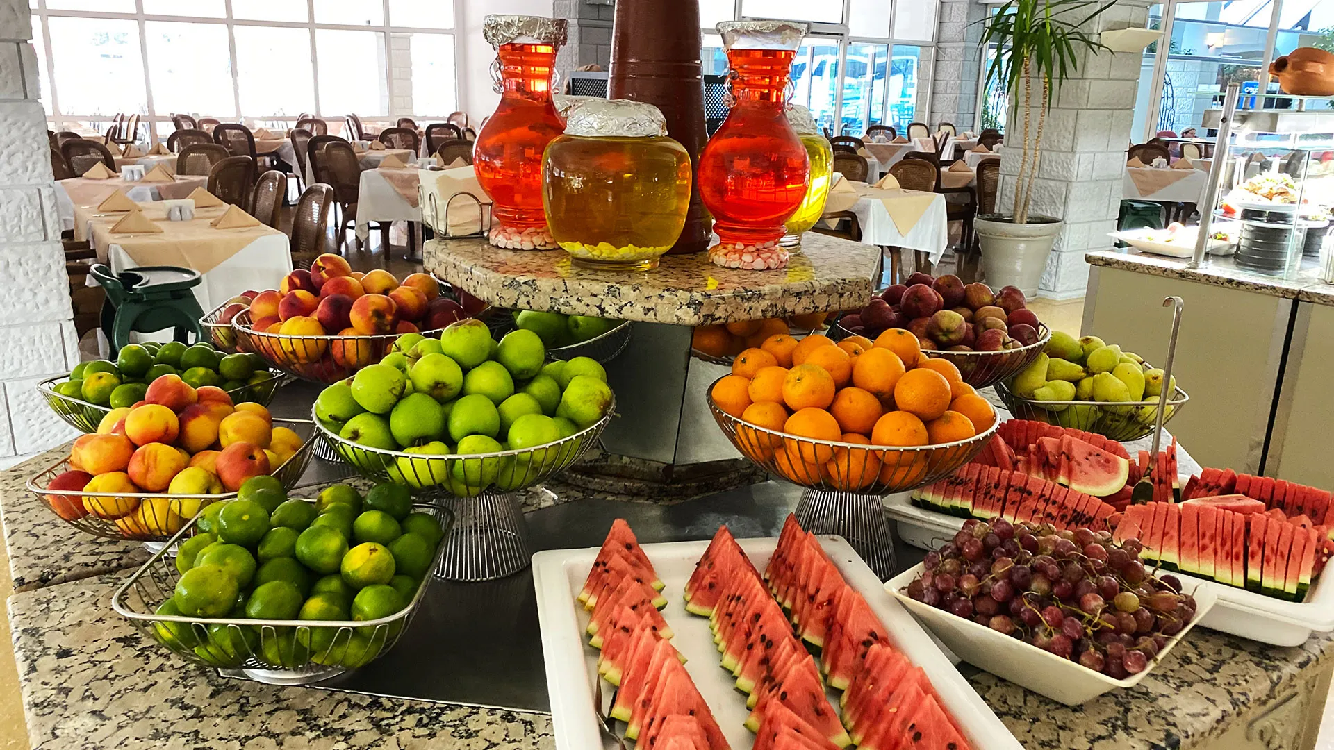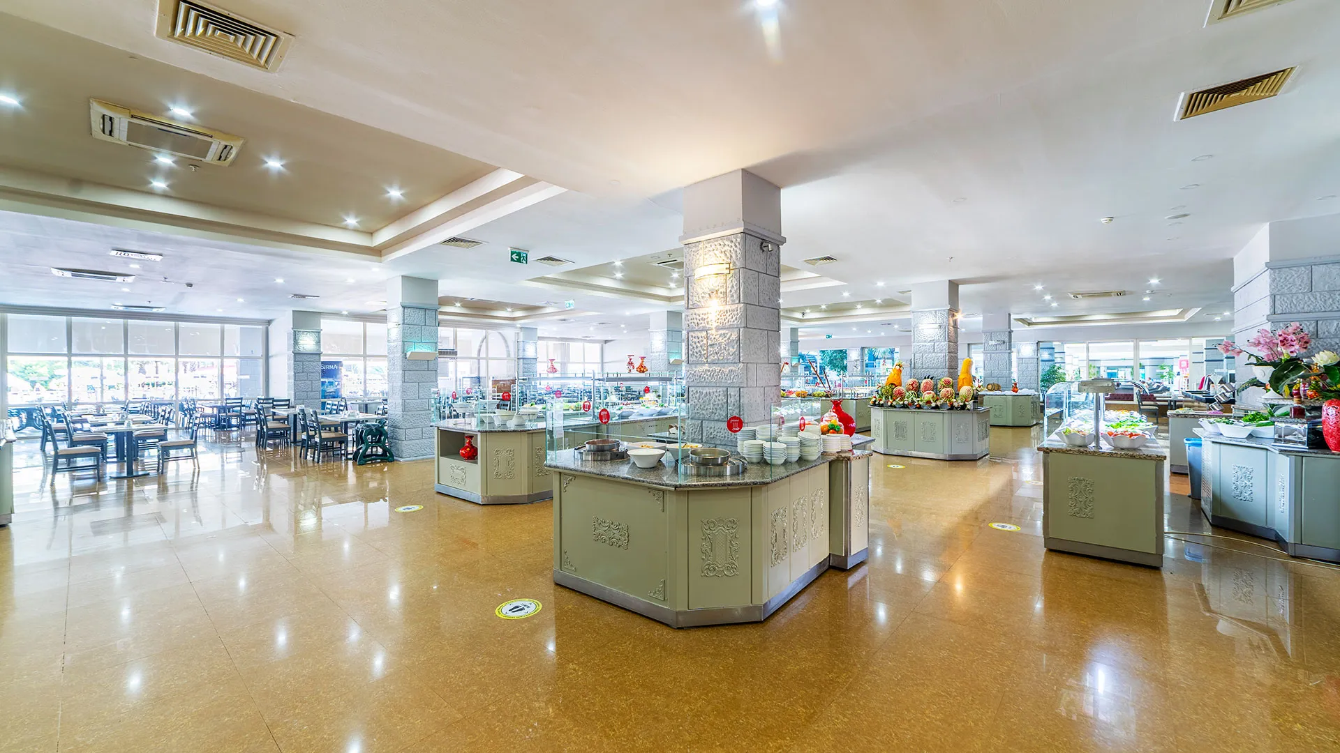 Основният ресторант предлага разнообразни ястия на шведска маса. Допълнително на място има 2 а-ла-карт ресторанта и 4 бара.