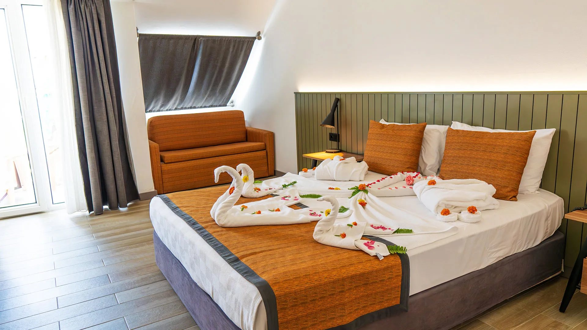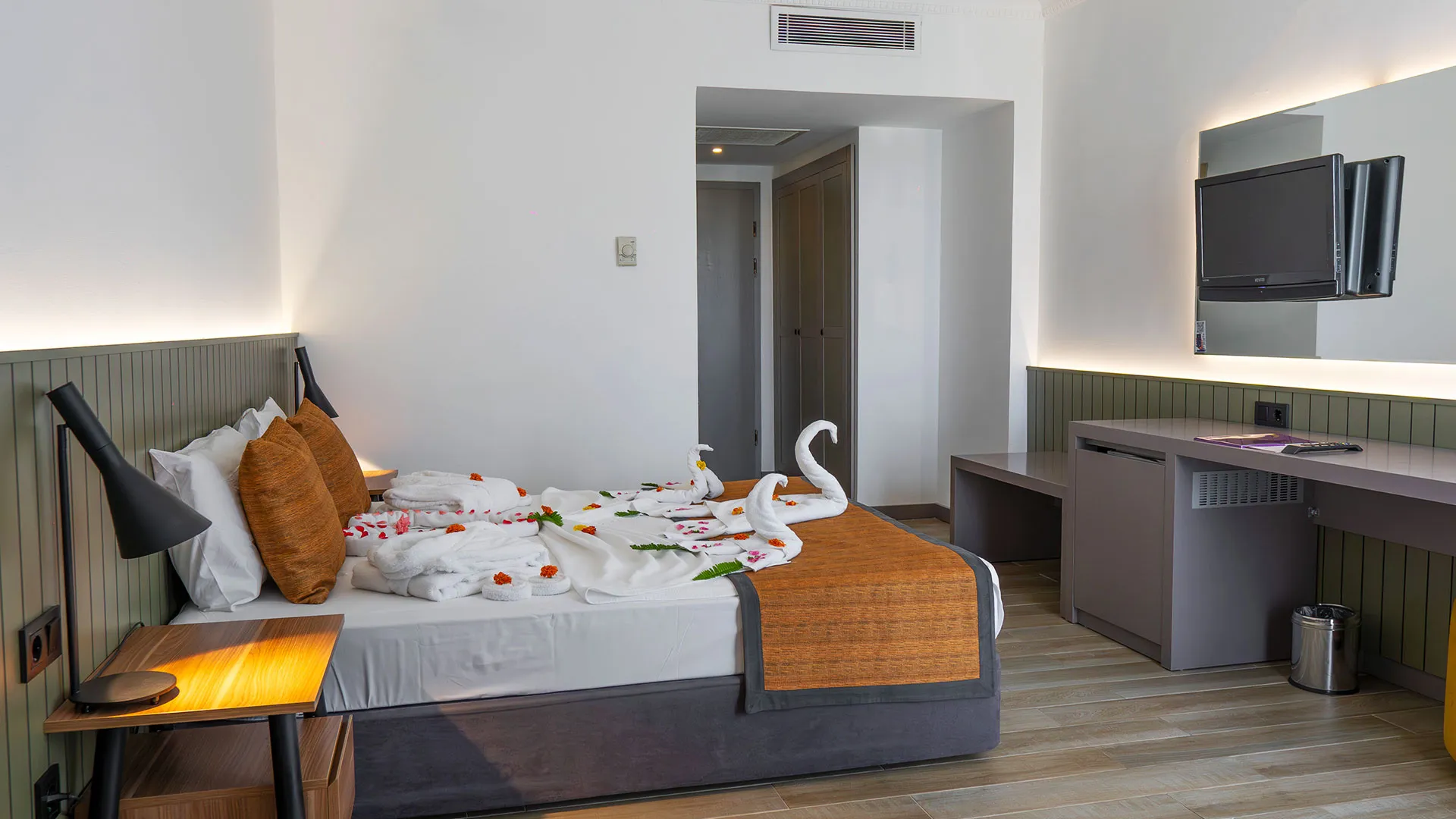 Стайте в хотел Queen's Park Goynuk са модерно обзаведени и предлагат телевизор с плосък екран, климатик, минибар и балкон. Всяка стая разполага със собствена баня с вана или душ.