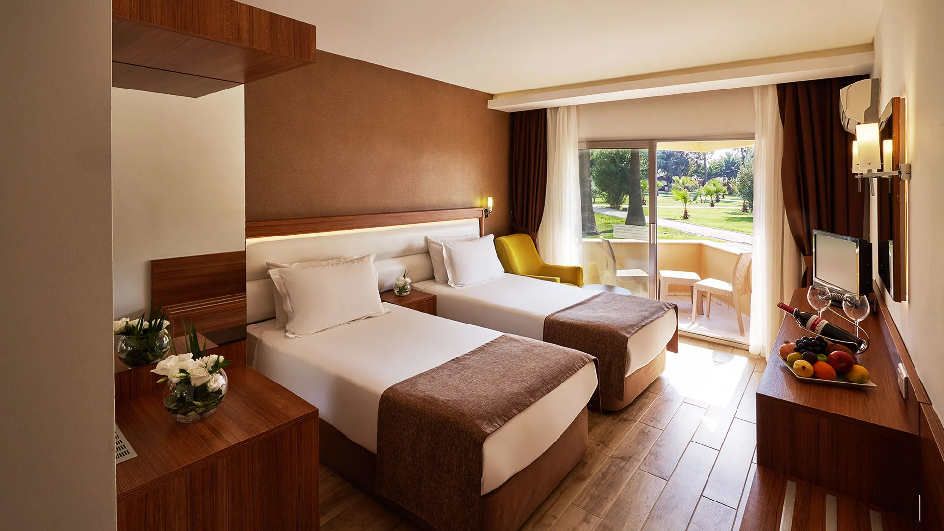 Стайте в Richmond Ephesus Resort - All Inclusive разполагат с изискан интериор, като всеки ъгъл е мислен и създаден с максимално внимание към вашата удобство. Всички стаи предлагат прекрасен изглед към морето или към уютната градина. Подсигурени са с удобства като климатик, плосък телевизор със сателитни канали, минибар и сейф, за да се уверите, че вашето престой ще бъде комфортен и спокоен. Допълнително, всеки край на стаята разкрива модерна баня със сешоар и безплатни козметични продукти, за да се почувствате като у дома си.