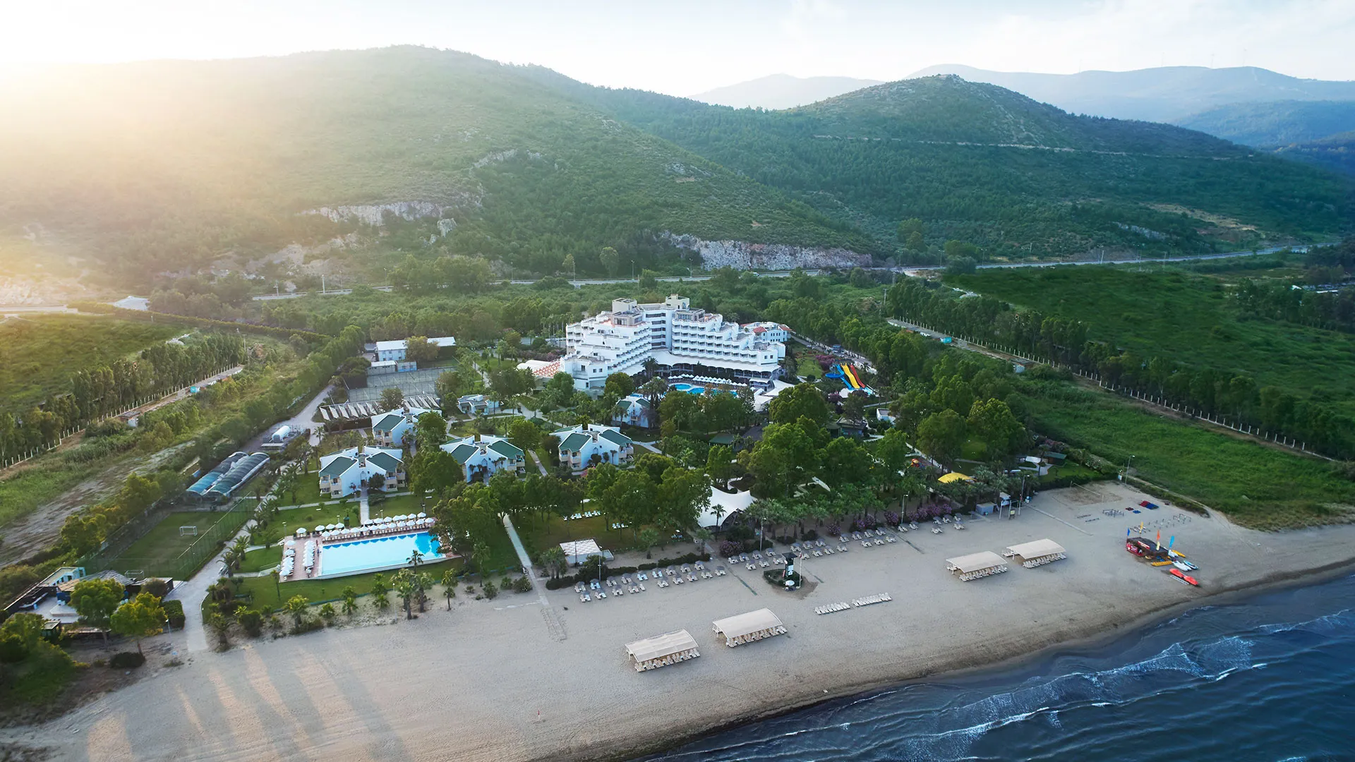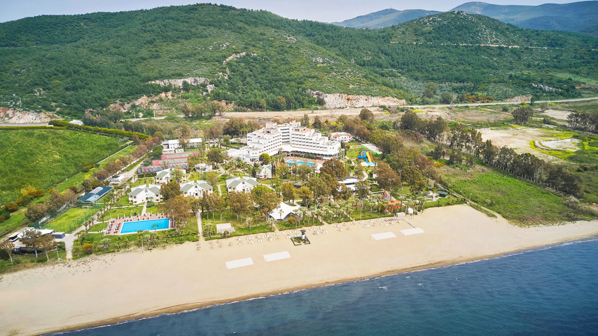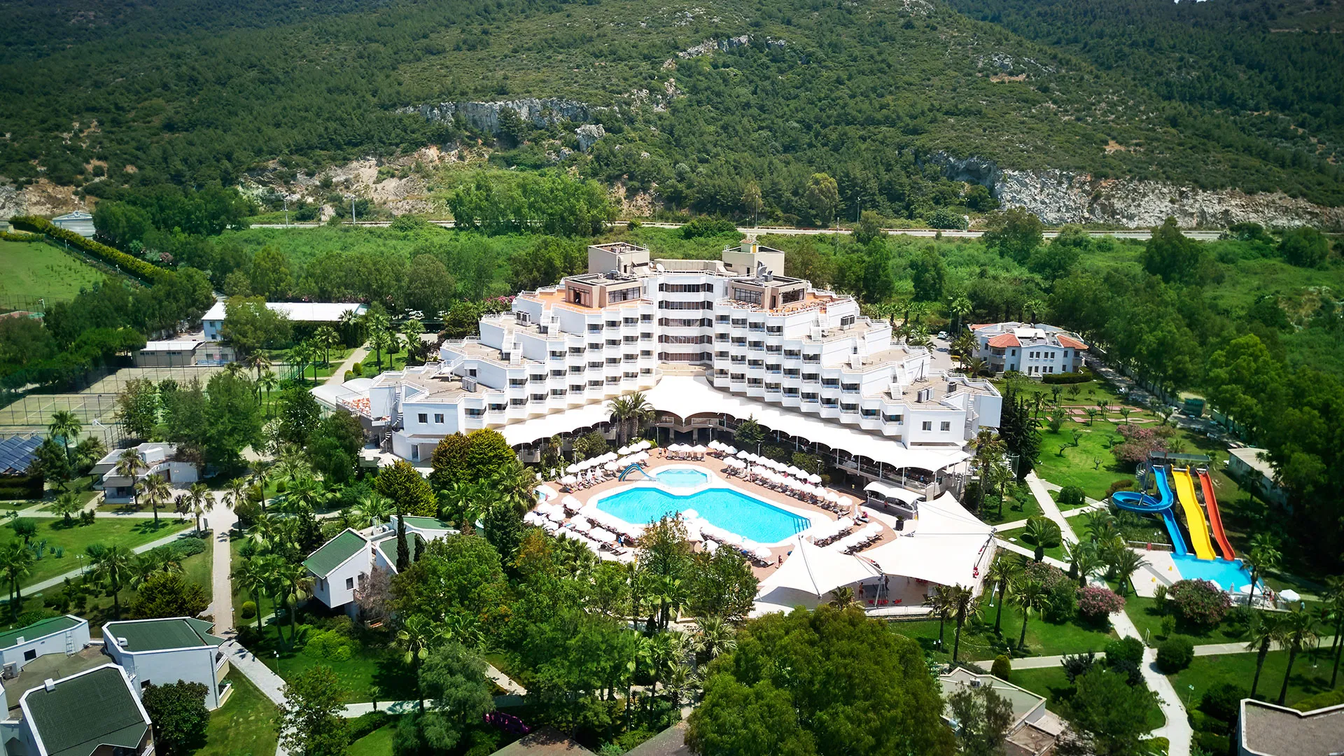 Също така, за вашето удобство, е осигурен безплатен собствен паркинг, а близостта до центъра на град Кушадасъ и древния град Ефес прави хотела перфектното място за изследване на околните забележителности. Летище Измир „Аднан Мендерес“ се намира само на кратко разстояние, предлагайки ви удобство и лесен достъп до вашата уелнес ваканция.