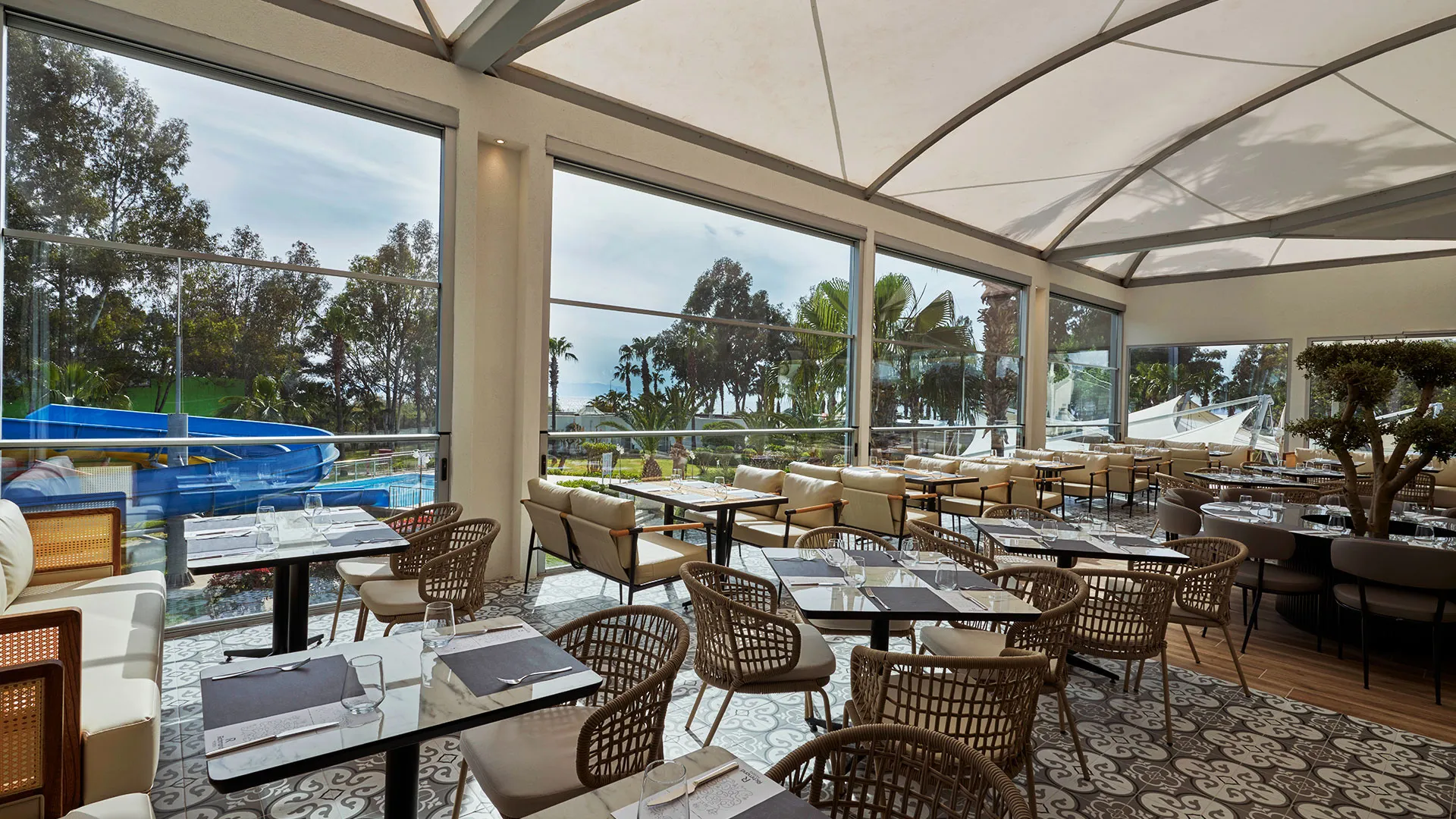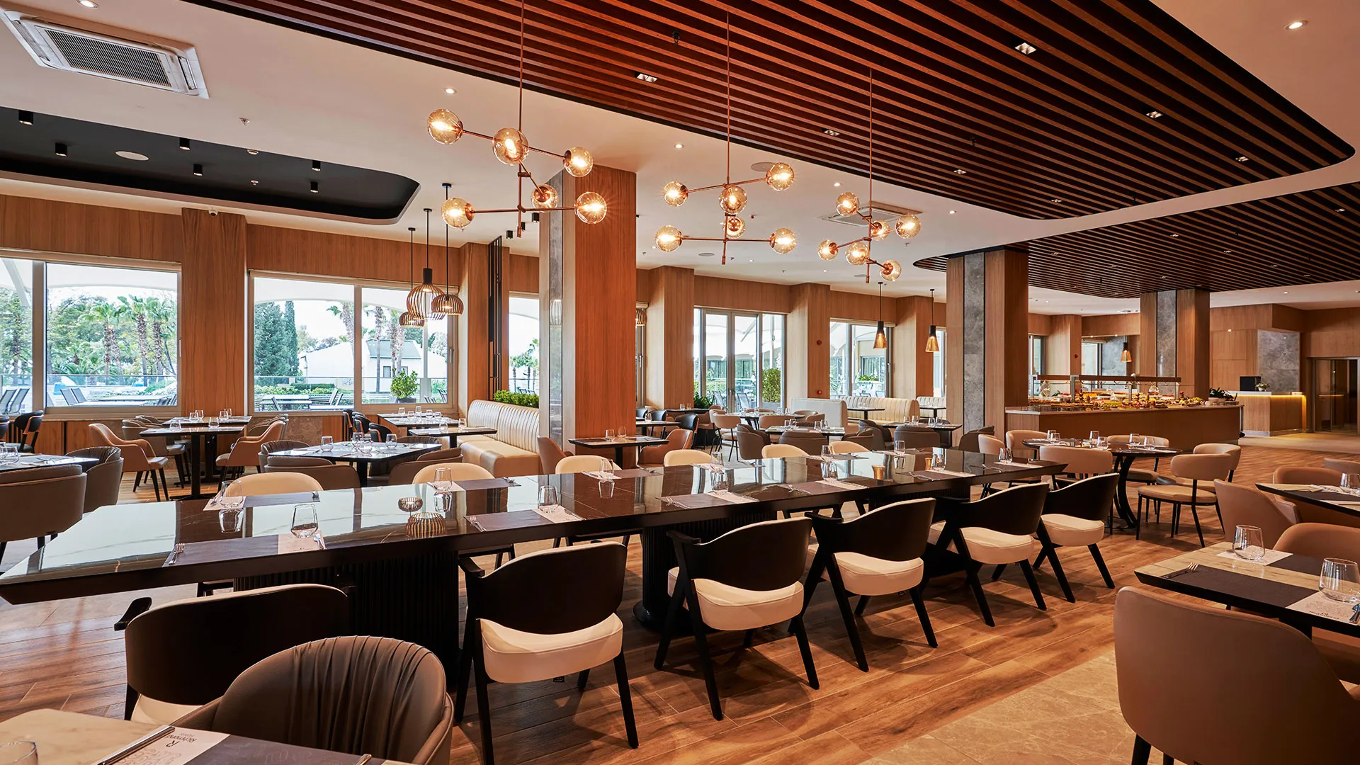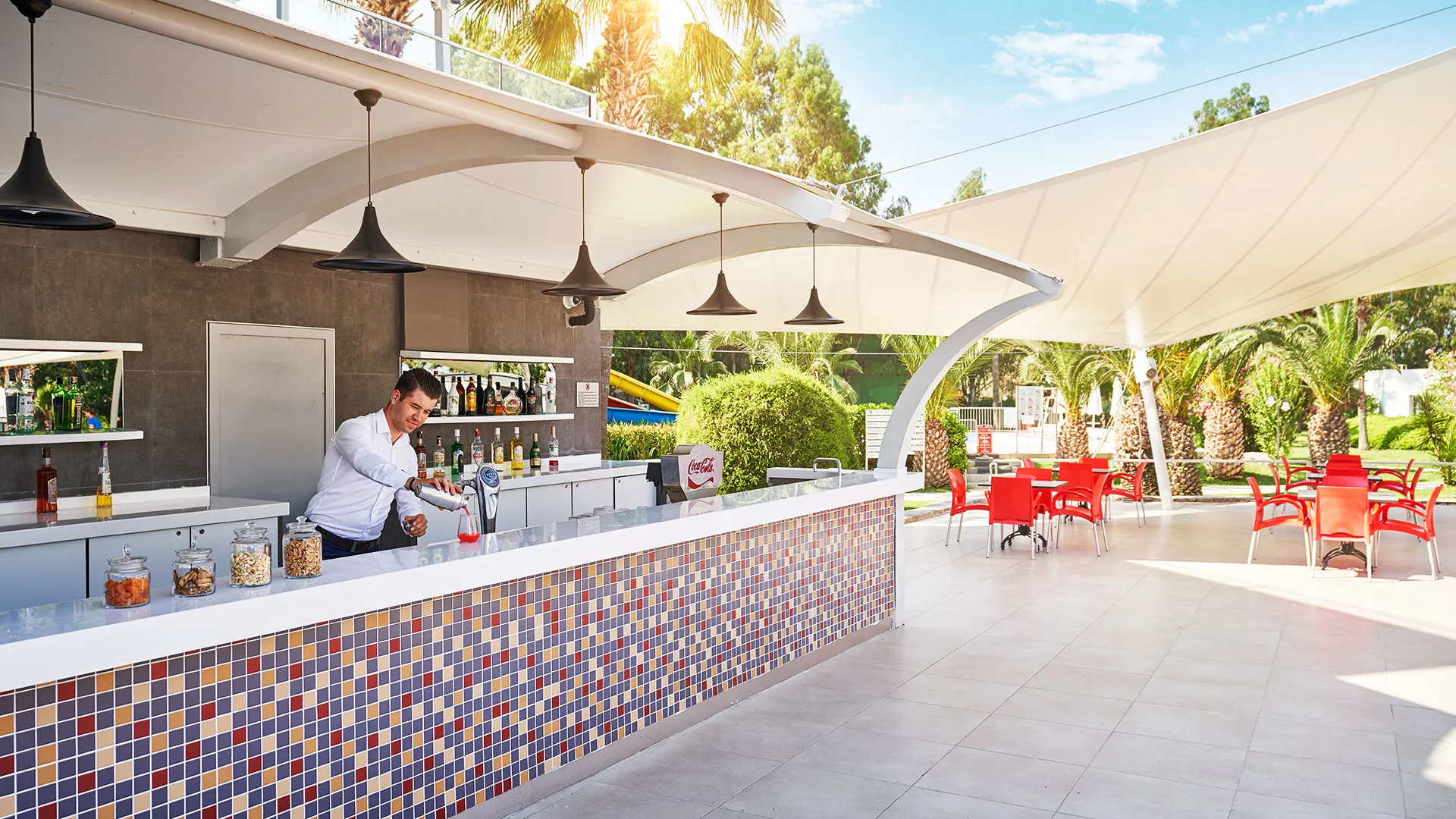 За вашето удоволствие и наслада, хотелът предлага разнообразни възможности за хранене и развлечения. Ресторант Efes ще ви поглези с разнообразие от изискани ястия от фиксирано меню, докато в Beach Bar, Sunset Bar и Amfi Tiyatro Bar ще можете да се насладите на различни освежаващи напитки през целия ден, вдъхновени от атмосферата на брега на морето.