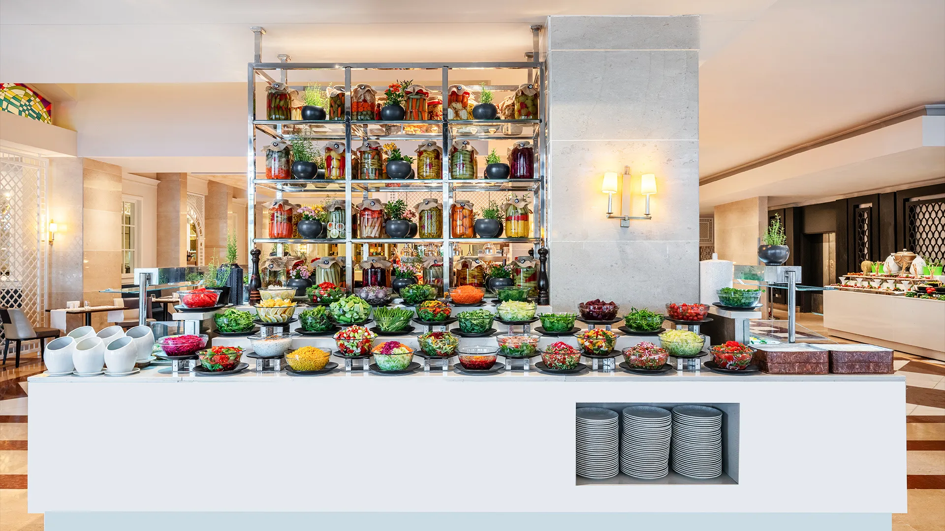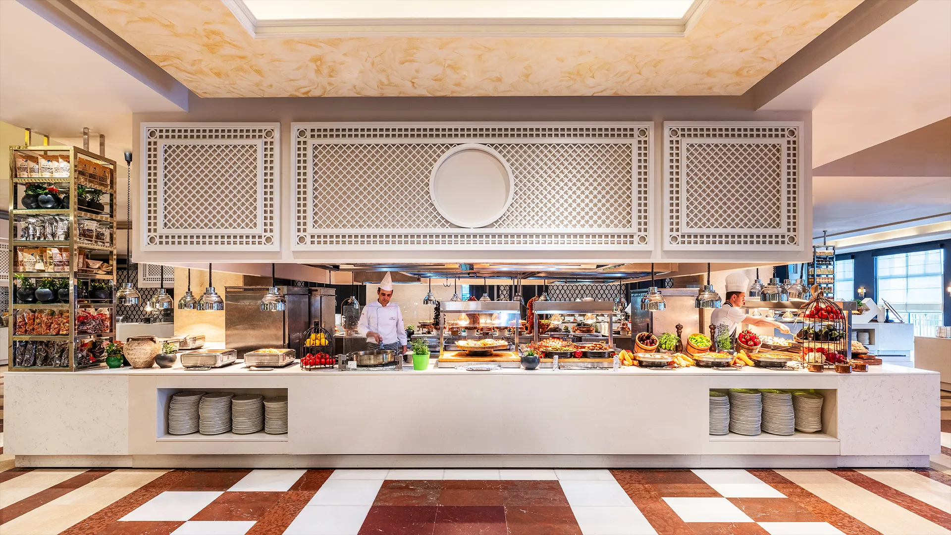 Ресторантът Turquoise в Rixos Premium Tekirova - The Land of Legends Access предлага разнообразие от изискани ястия, сервирани на шведска маса. В хотела има и други ресторанти, като тези, които предлагат турска и италианска кухня. Освен това, в основния бюфет-ресторант се поднасят разнообразни международни ястия. Гостите могат да се насладят на американски и международни деликатеси, както и на свежи морски специалитети, срещу допълнително заплащане.