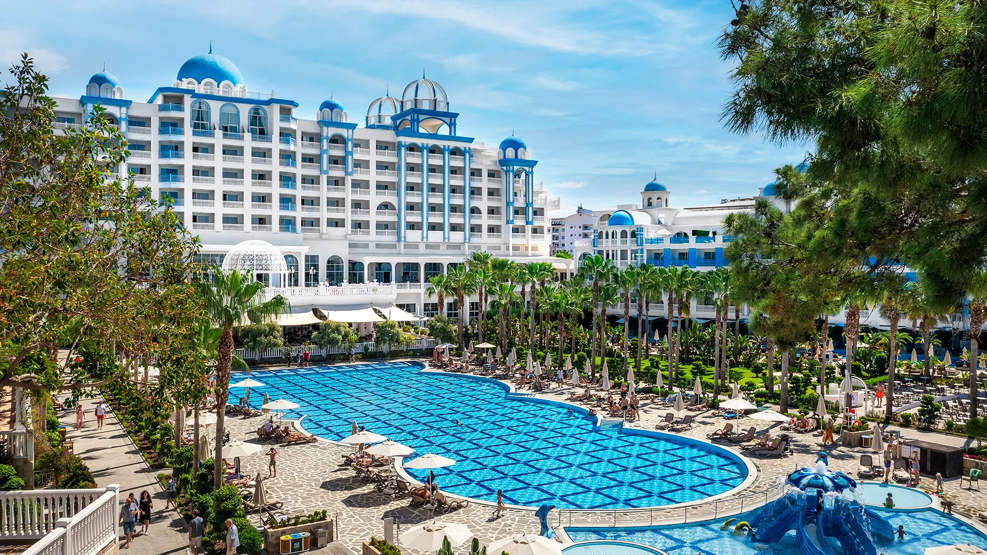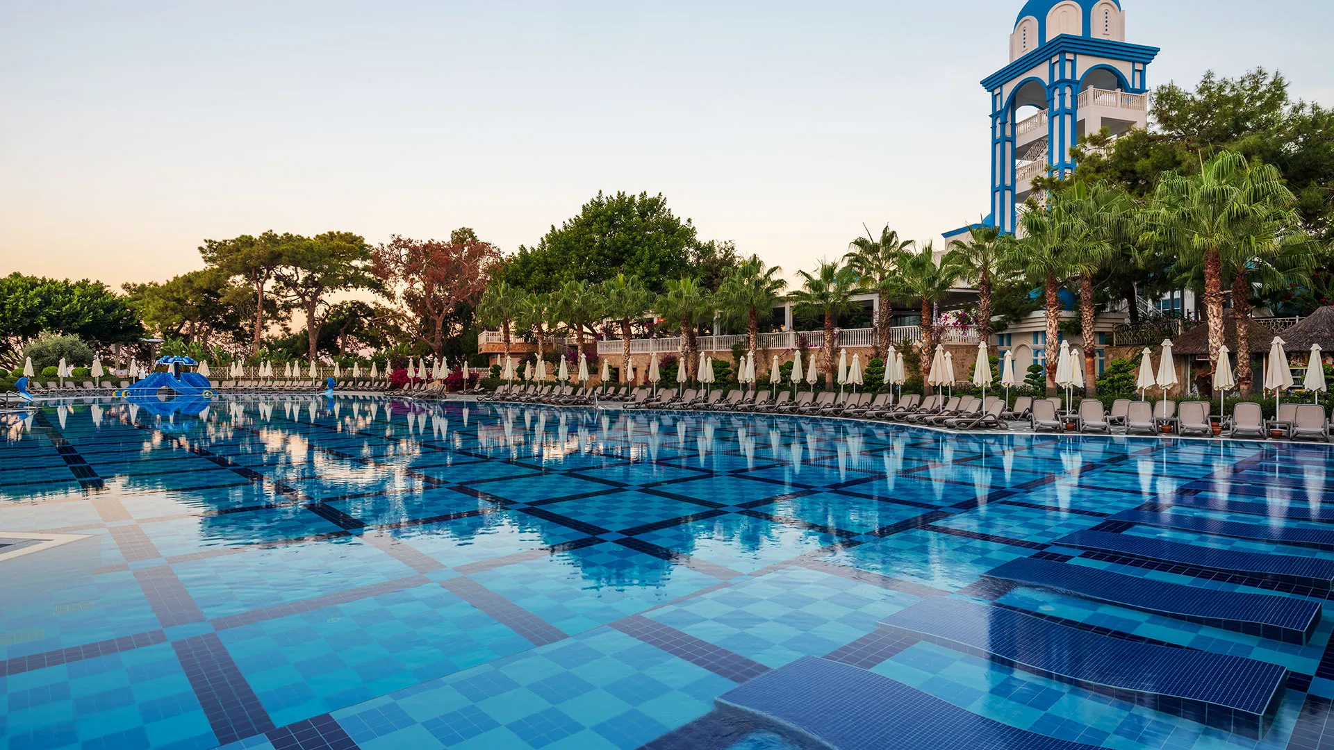 Хотелът предлага множество съоръжения, включително няколко открити басейна с водни пързалки, закрит басейн и модерен фитнес център, в който се провеждат пилатес и фитнес класове. За спортните ентусиасти има два външни тенис корта и възможности за плажен волейбол и баскетбол. СПА центърът Regius предлага разнообразие от терапии като обвивания, ексфолиращи процедури и масажи, създавайки спокойна и релаксираща обстановка.