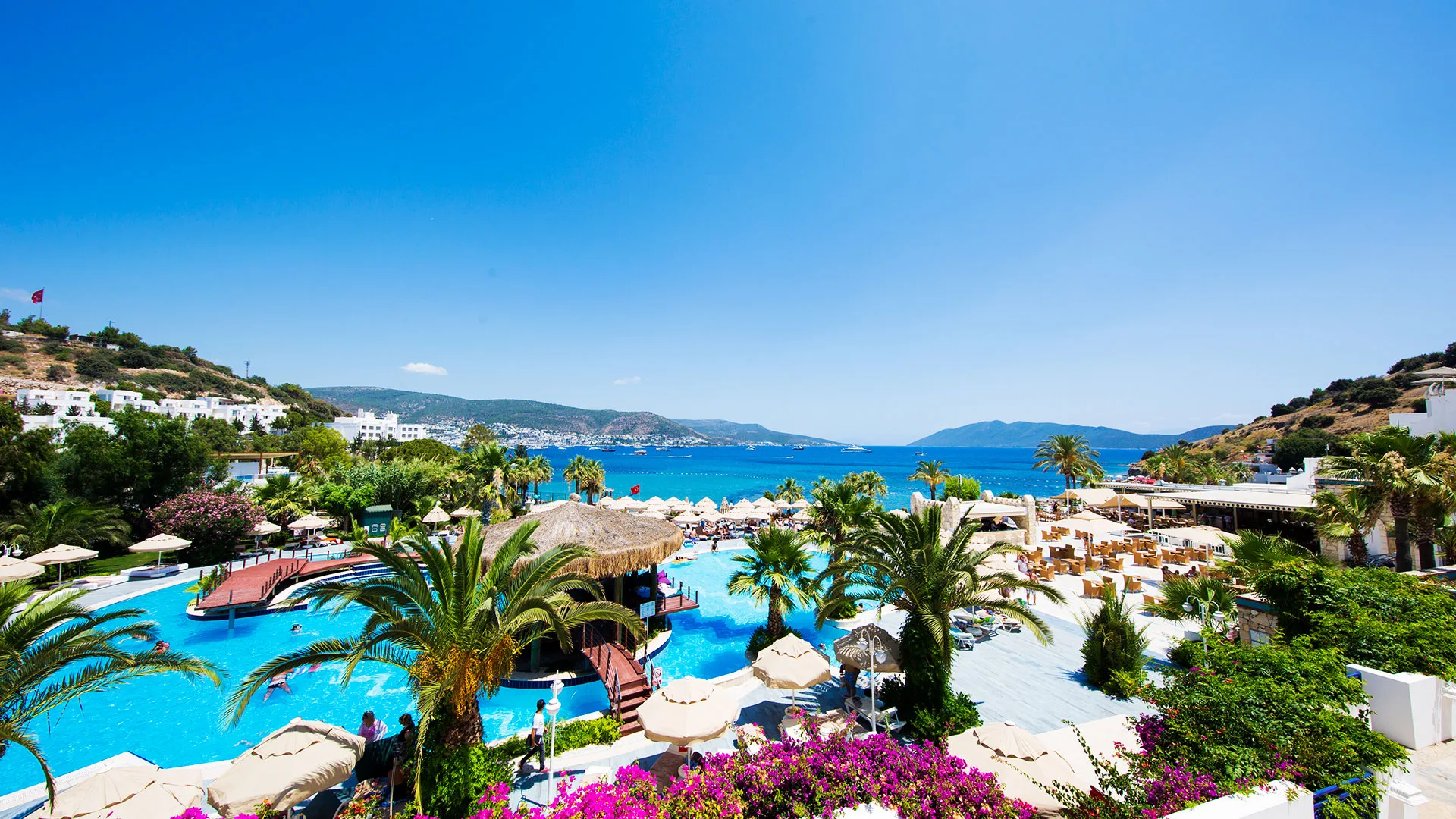 Този хотел в средиземноморски стил представлява просторен курортен комплекс с басейн и панорамен изглед към залива на Бодрум, разположен точно до плажа.
