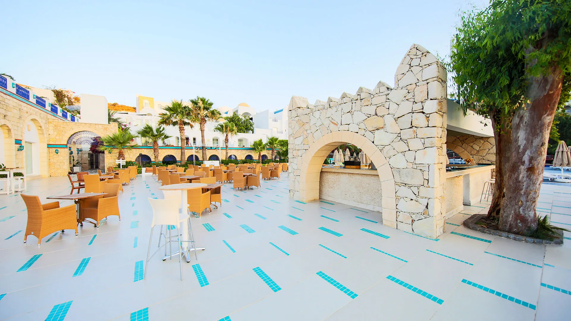 Ресторантът Ottoman в хотелския комплекс Salmakis Resort предлага мезета и традиционни кебапи. Има също средиземноморски ресторант, специализиран в морски деликатеси. Гостите могат да се насладят на напитки в някой от 5-те бара, включително бар на плажа и витаминен бар.