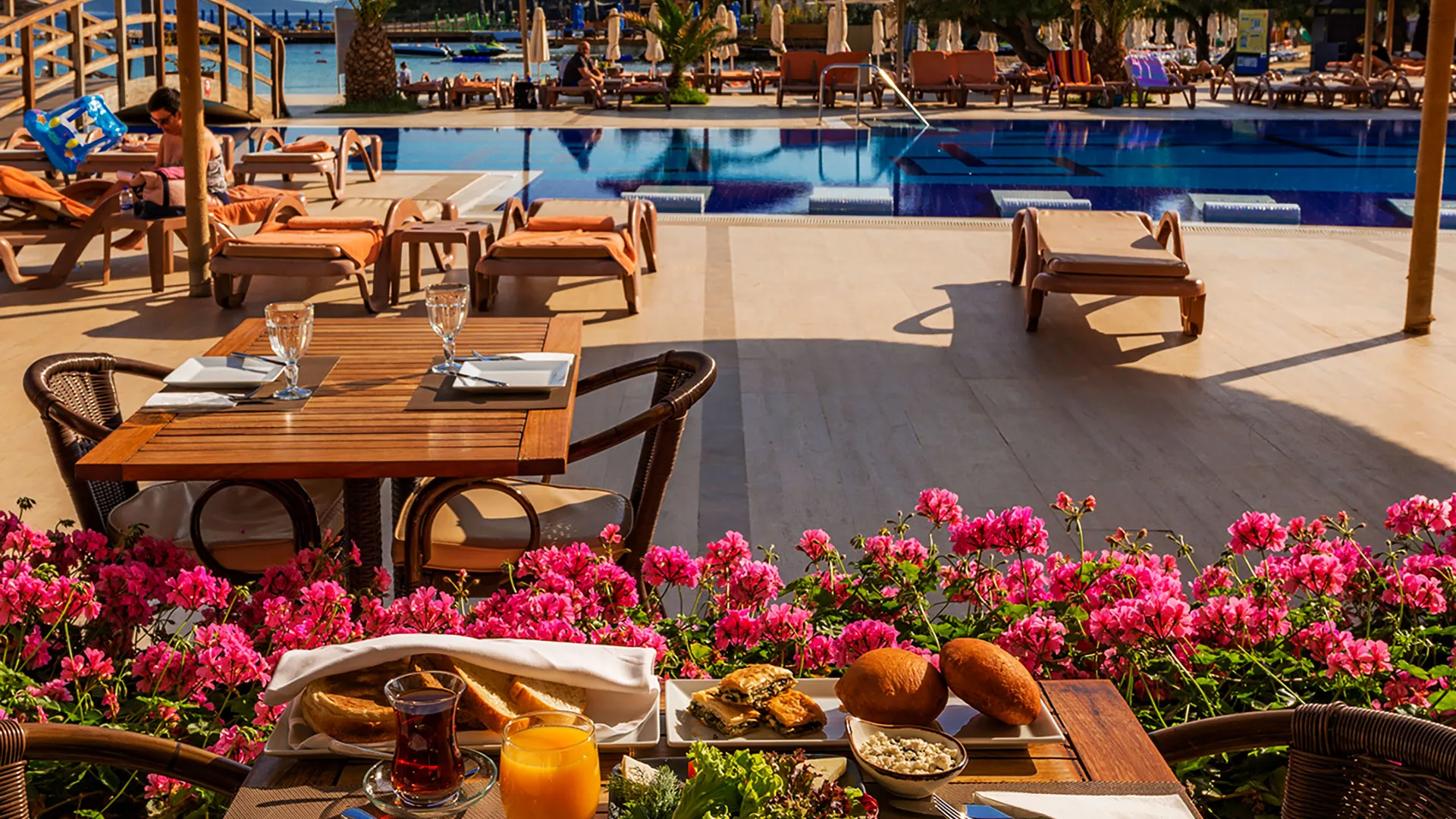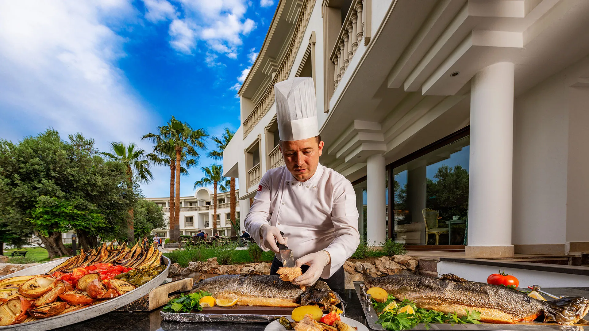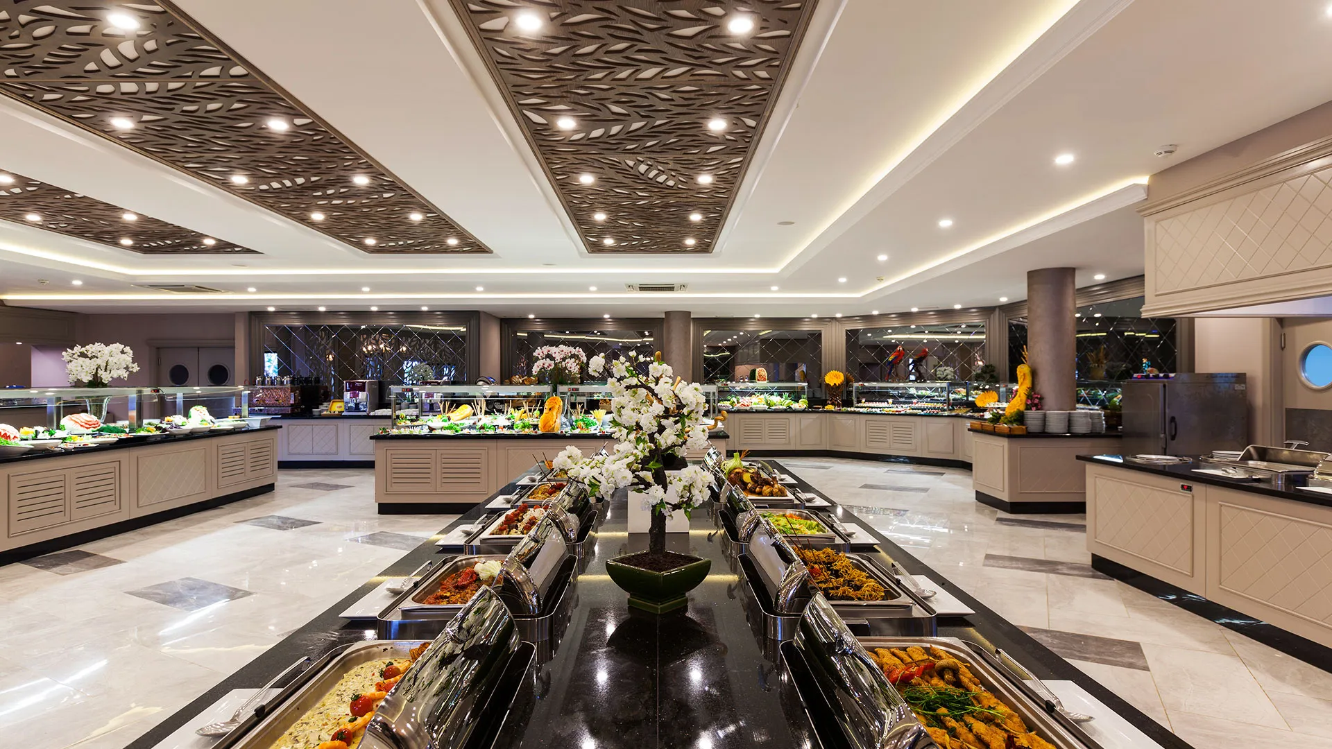 Гостите могат да се насладят на закуска, обяд и вечеря на шведска маса всеки ден. Хотелът предлага и а ла карт ресторанти със специалитети от морската и турска кухня. За освежаващи напитки и коктейли гостите могат да се обърнат към баровете край басейна, на плажа или в лобито.