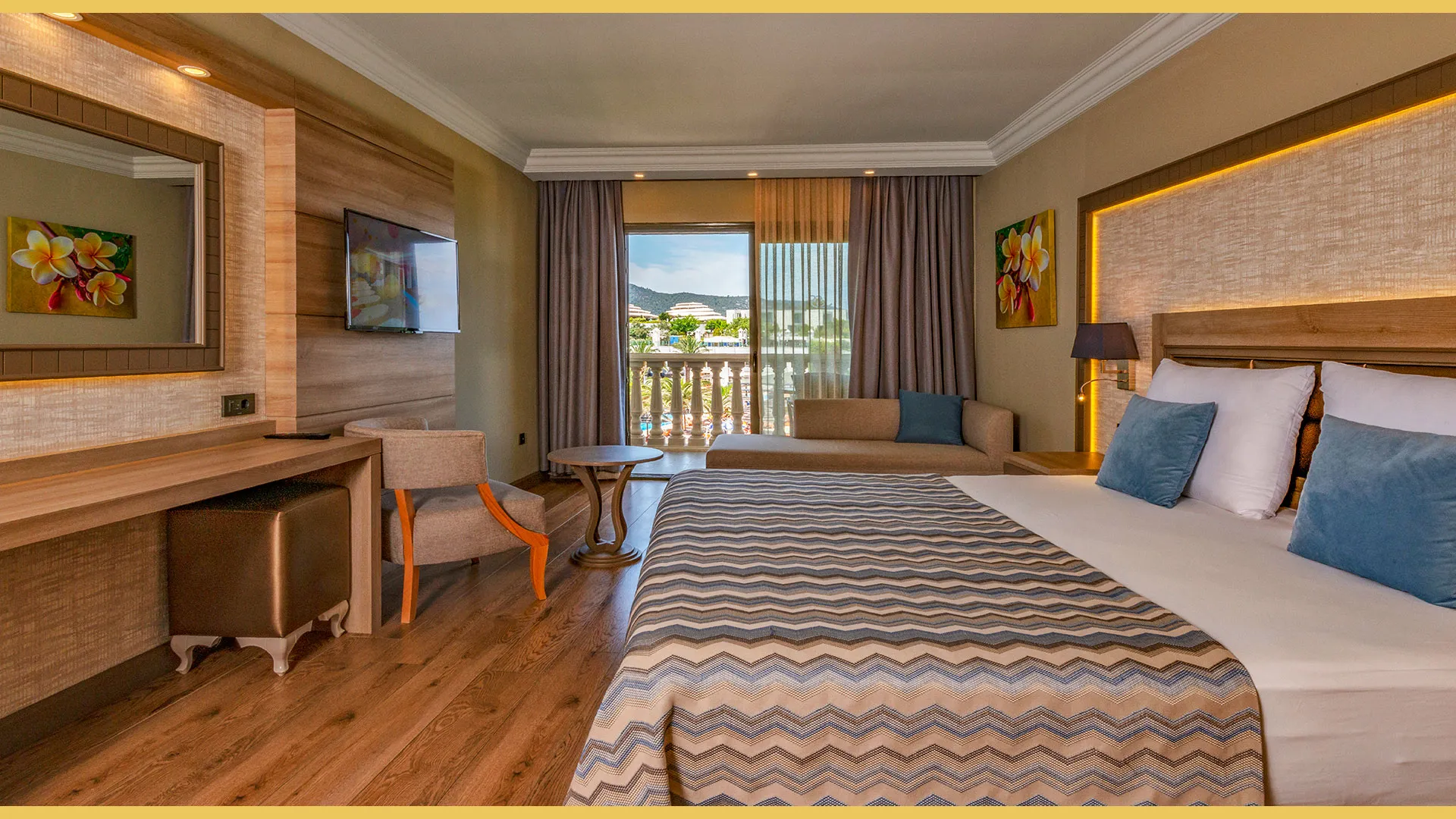 Samara Hotel се намира в квартал Торба на Бодрум и предлага разнообразие от удобства, включително закрит и открит басейн, детски басейн, СПА център и частен плаж с шезлонги и чадъри. Всички помещения за настаняване са климатизирани и разполагат със сателитна телевизия и балкон.