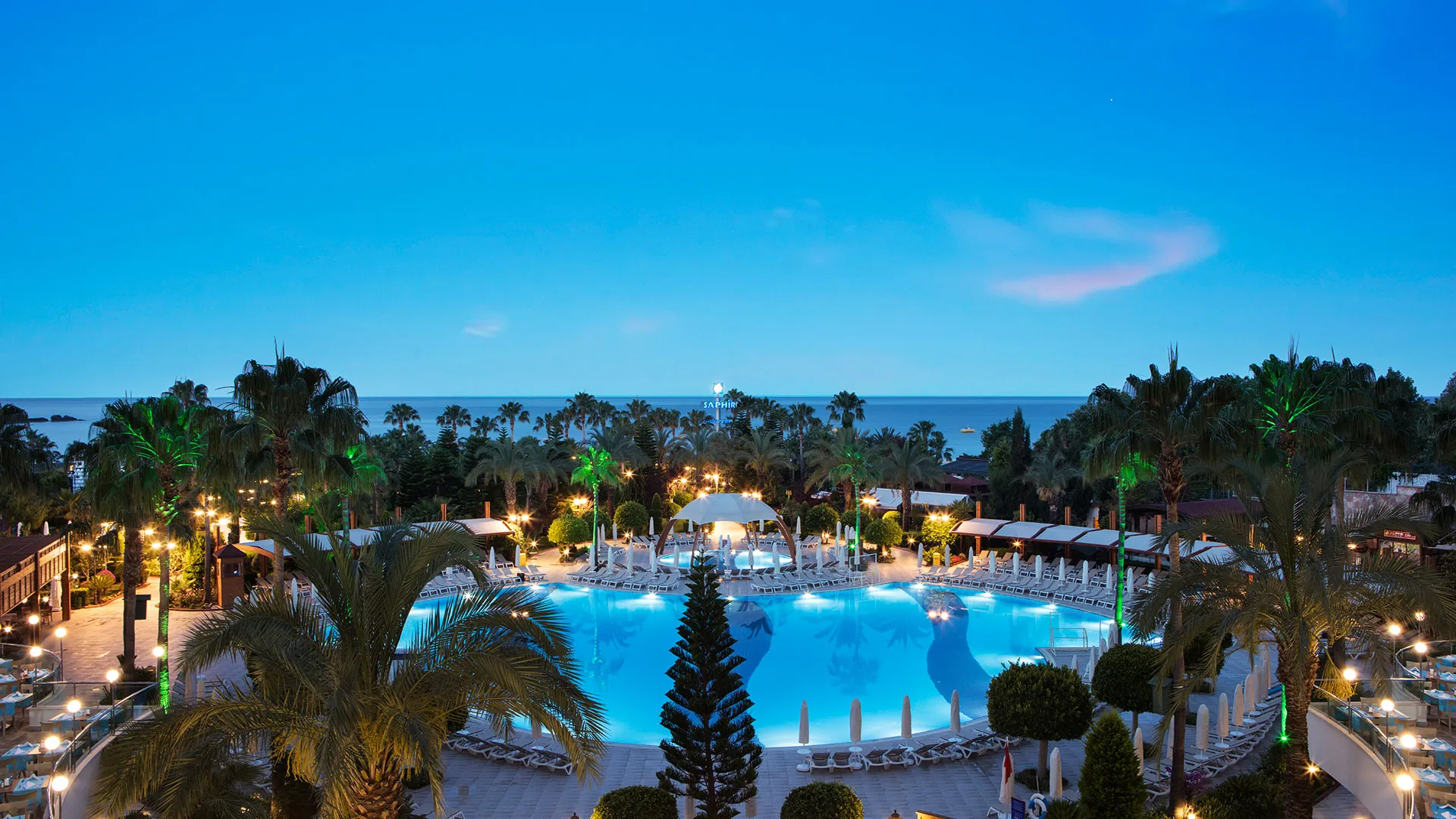 Saphir Resort & Spa в Алания е луксозен хотел, разположен на брега на Средиземно море, предлагащ разнообразие от удобства и забавления.