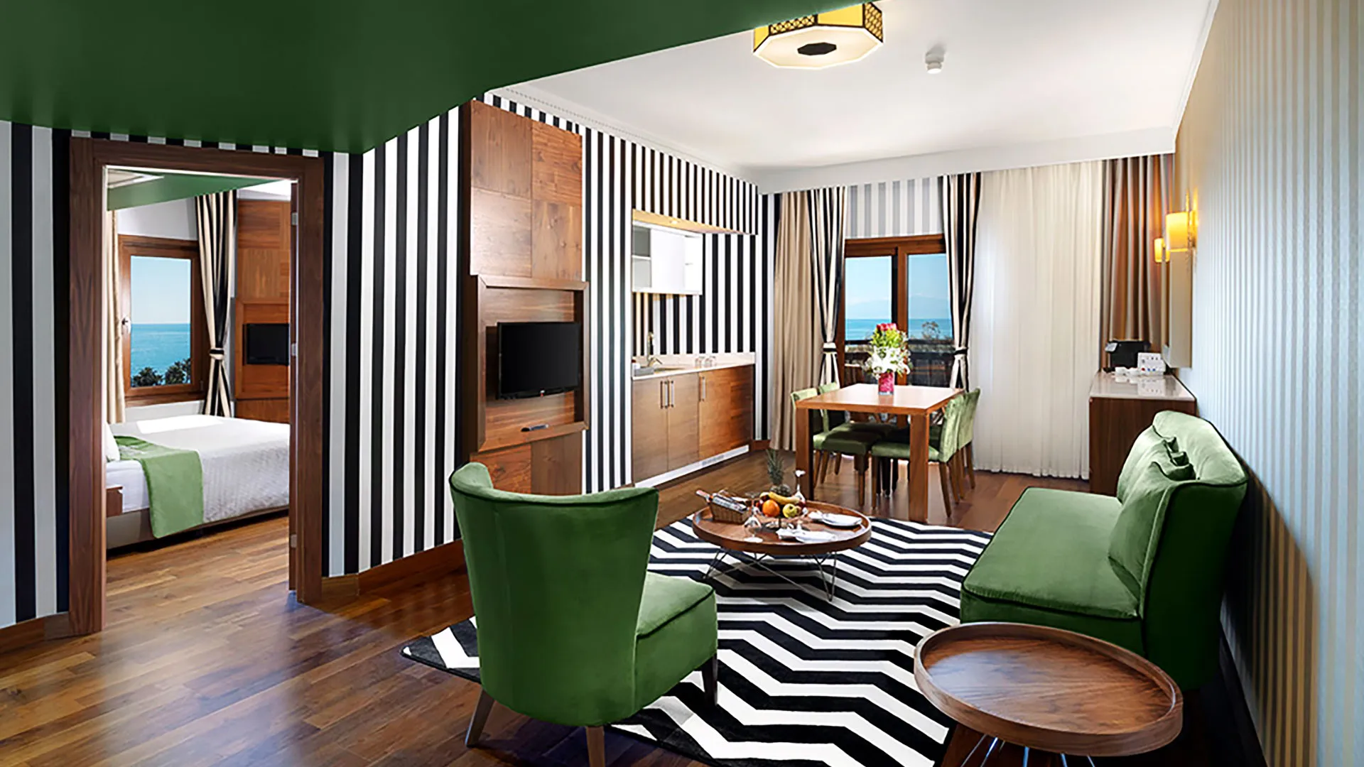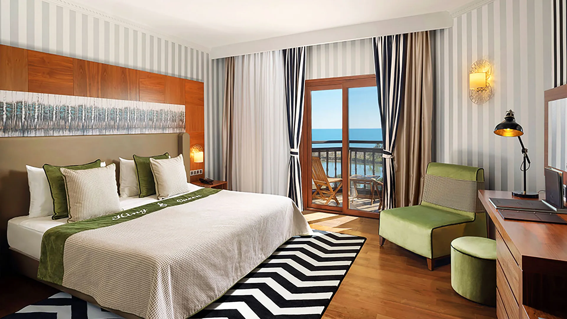 Хотелът разполага с 455 стаи, 278 в основната сграда, с изглед към морето, басейна и градината.