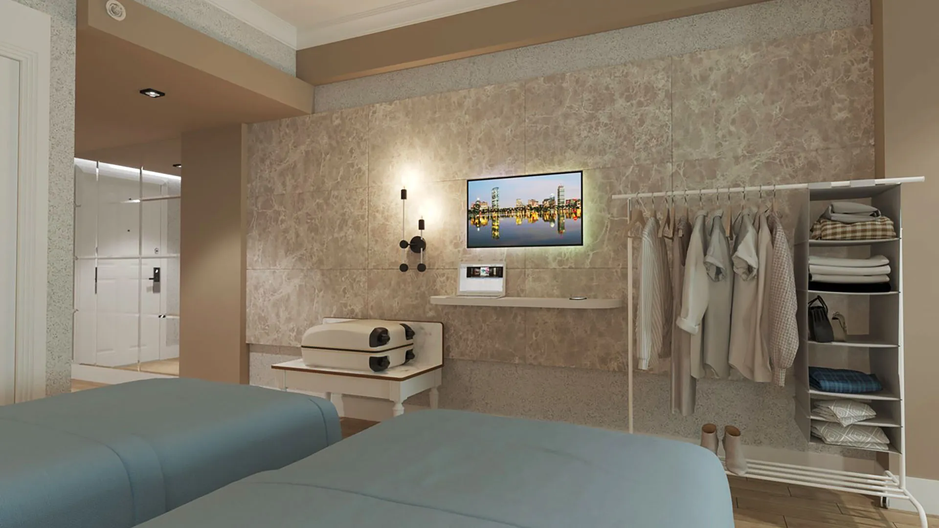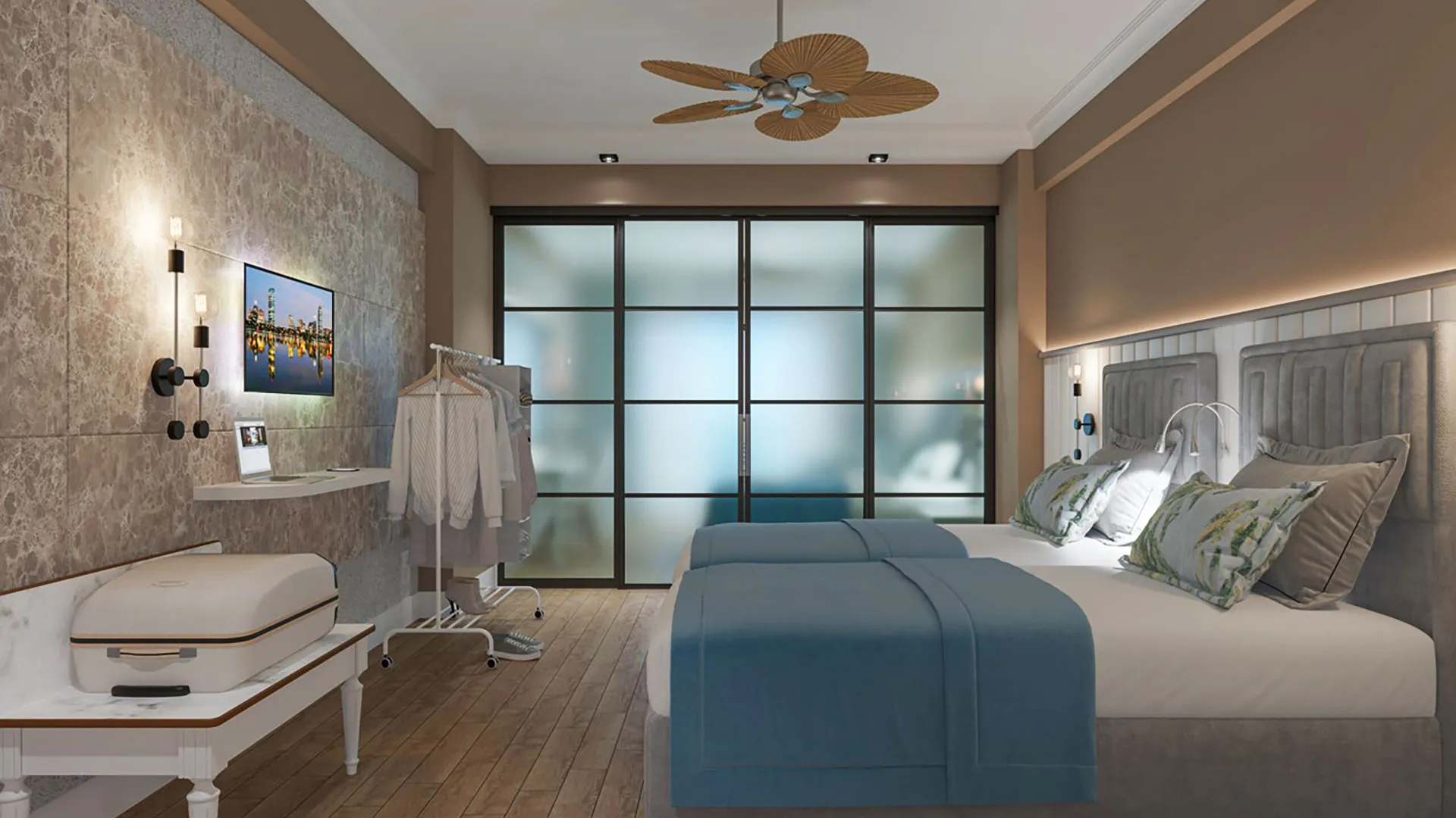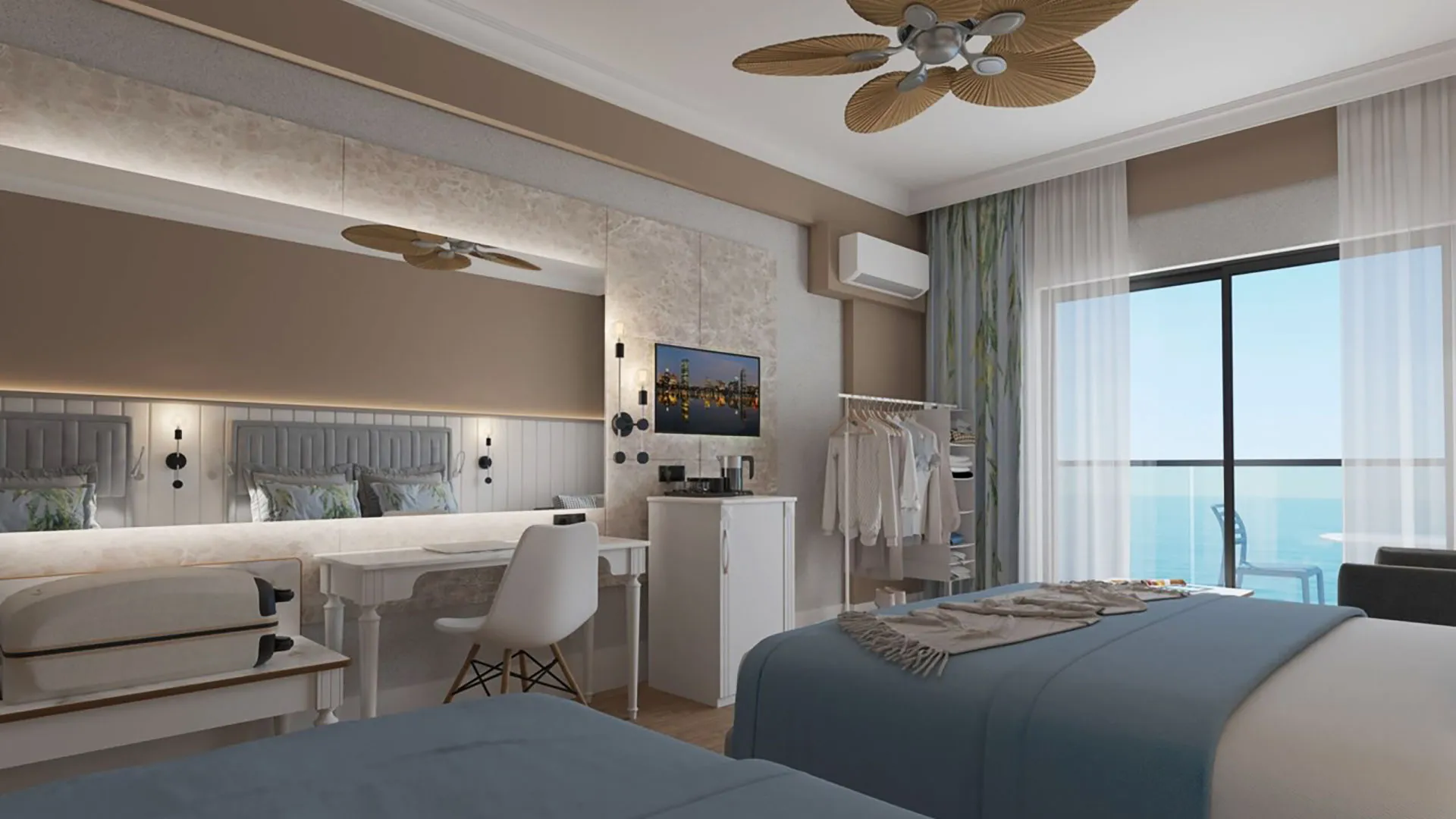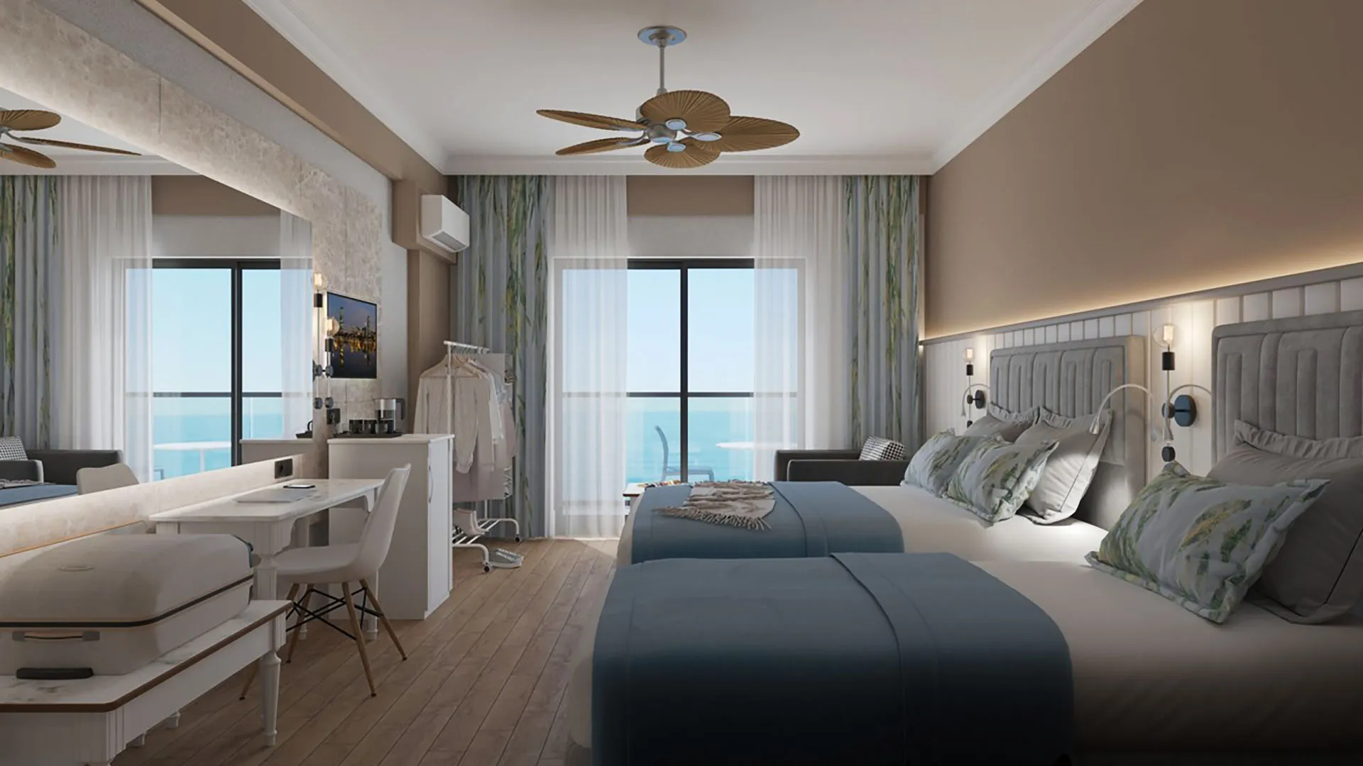 Настаняването в Seven Seas Palmeras Bay Hotel включва разнообразие от стаи и апартаменти, създадени с внимание към детайлите и обзаведени с всички съвременни удобства. Всяка стая разполага с климатик, телевизор с плосък екран, минибар и безплатен Wi-Fi, което осигурява максимален комфорт и удобство на гостите. От балконите на стаите се откриват спиращи дъха гледки към морето или към богатата зеленина на хотелските градини, създавайки усещане за спокойствие и хармония.