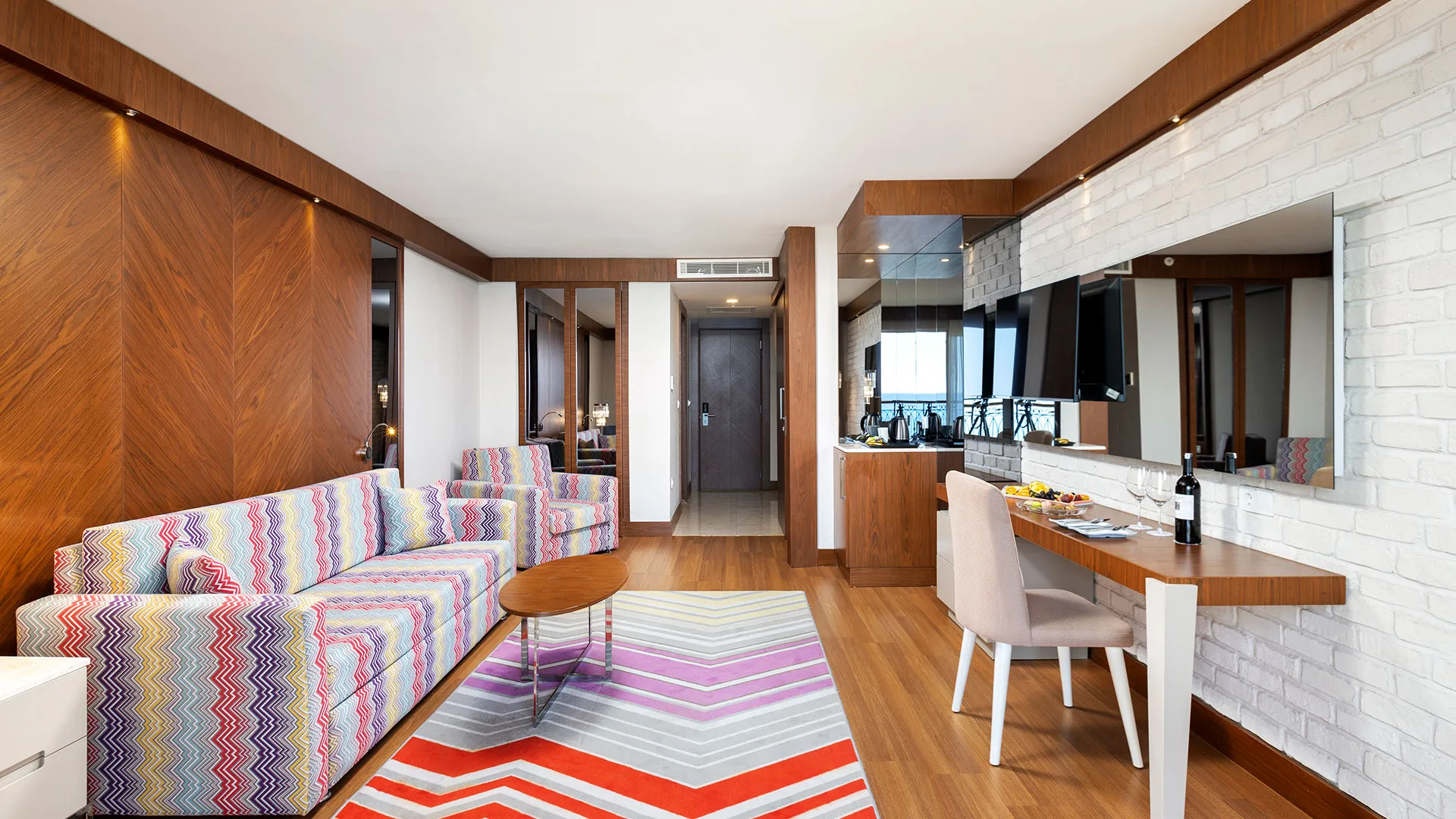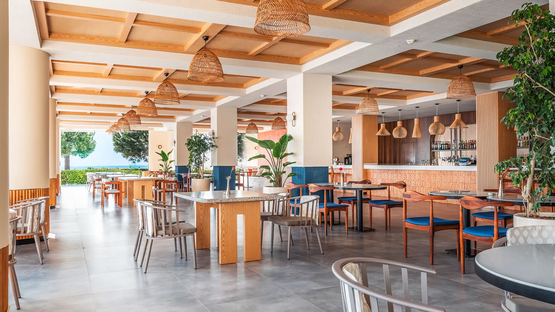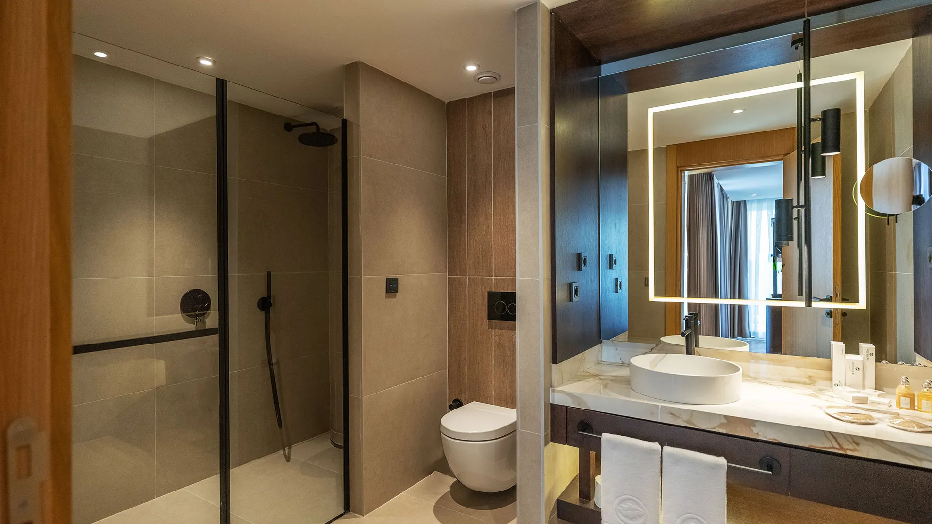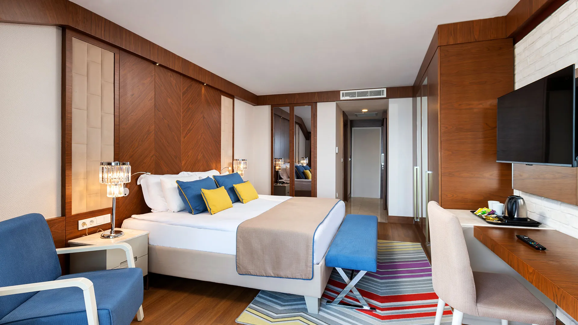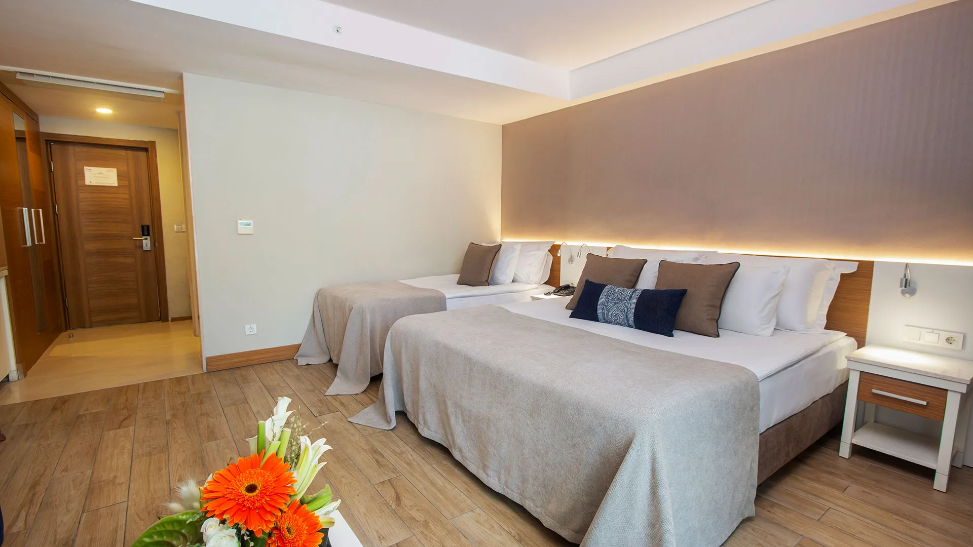 Хотелът разполага с изискани стаи и суити, обзаведени с висок клас на комфорт и елегантност. Всяка стая предлага уютна обстановка, модерни удобства и невероятна гледка към морето или градините на хотела.