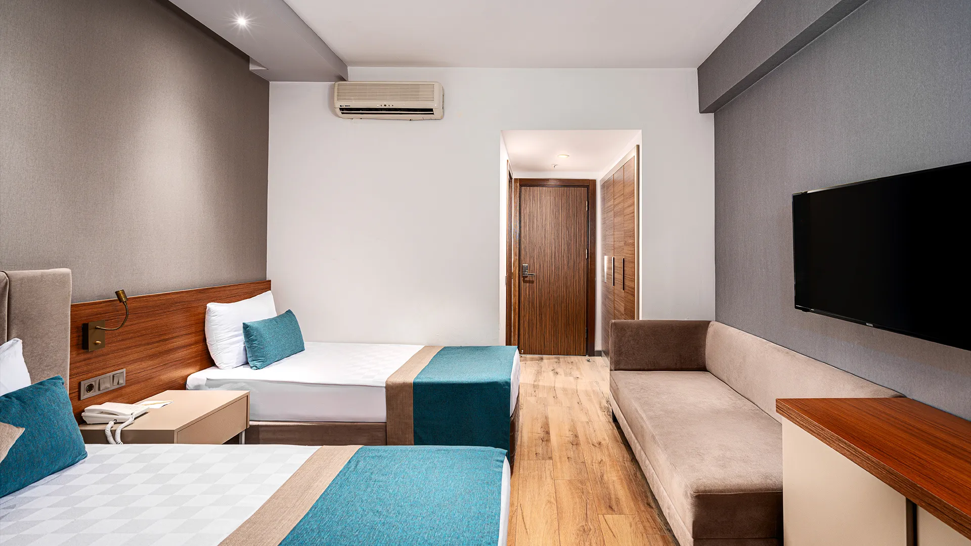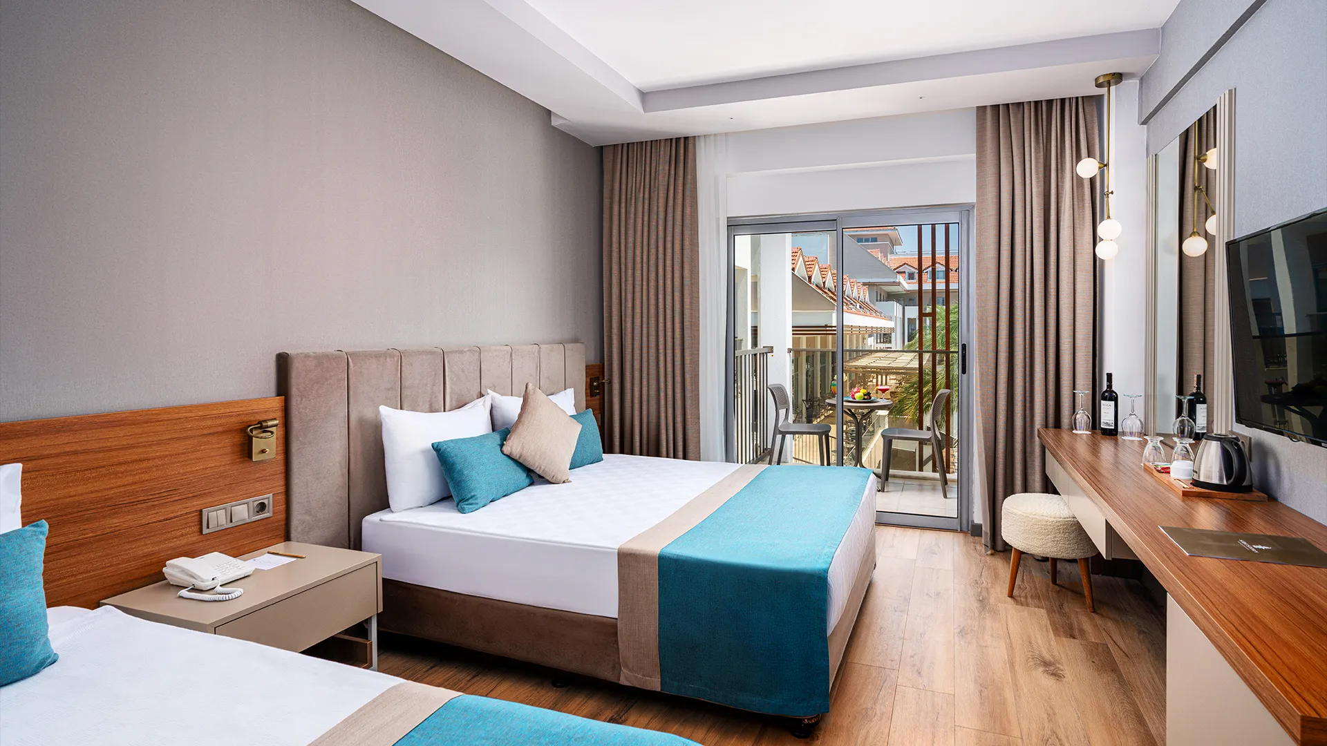 Всеки отделен номер в хотела е обзаведен с удобства като климатик, уютно бюро и балкон с изглед към града, създавайки уютна атмосфера за почивка. За допълнително удобство, гостите могат да се възползват от кафемашината в стаята си и да се насладят на напитка по всяко време. Всяка сутрин започва с разнообразна закуска на шведска маса или континентален тип.
